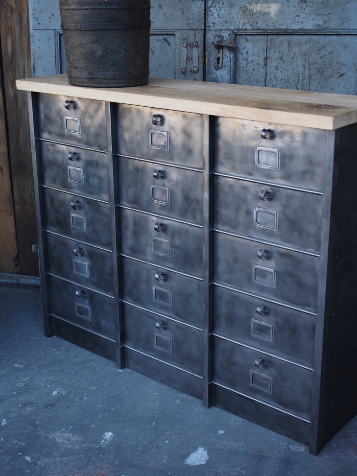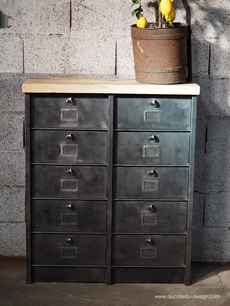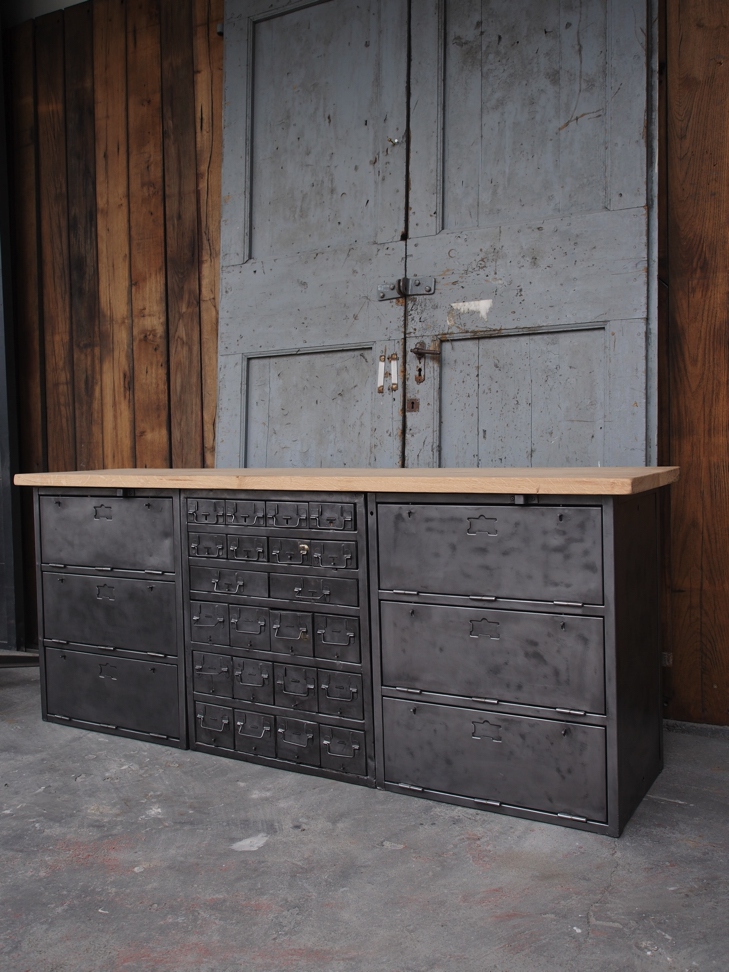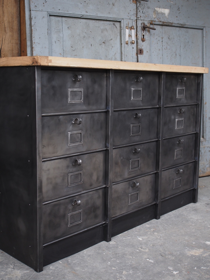 Ajouterenfilade industrielle 6 compartiments 18 tiroirs atelier militaire plateau vieux chene massif1650€Indisponible -
