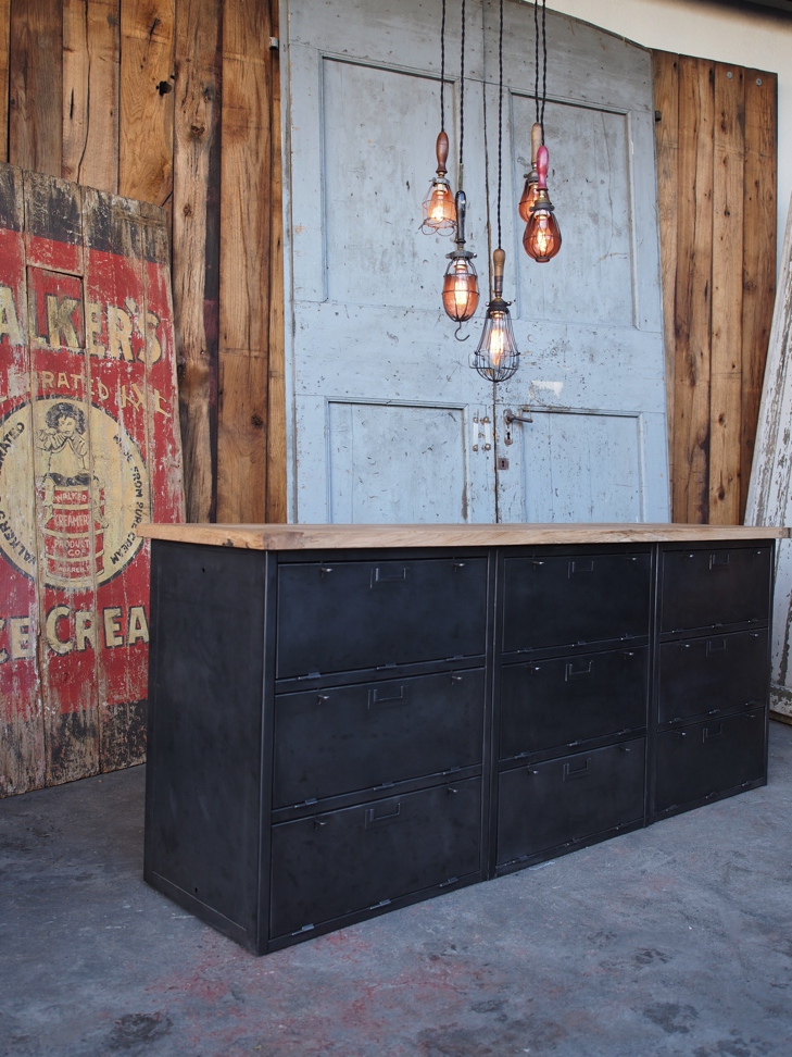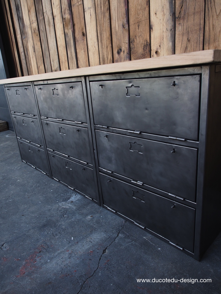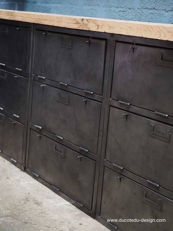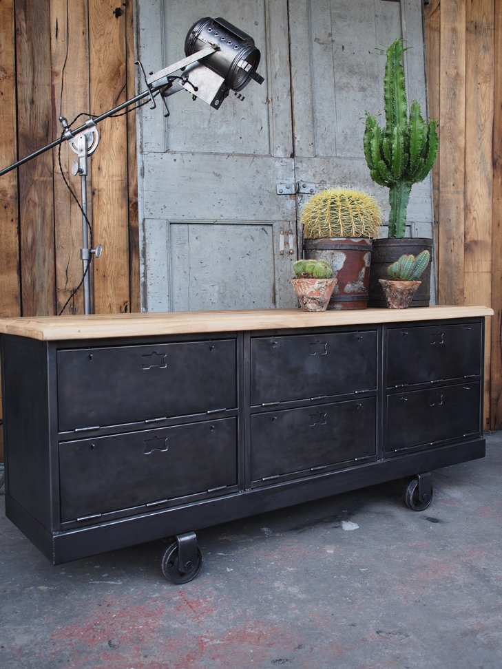 Ajouterenfilade industrielle 6 compartiments vieux chene massif roulettes fonte1480€Indisponible -