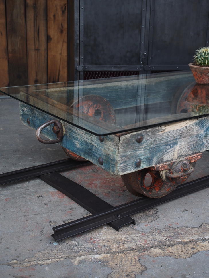 AjouterTable basse metal et bois industrielle wagon de mine sur rail plateau de verre1495€Indisponible -