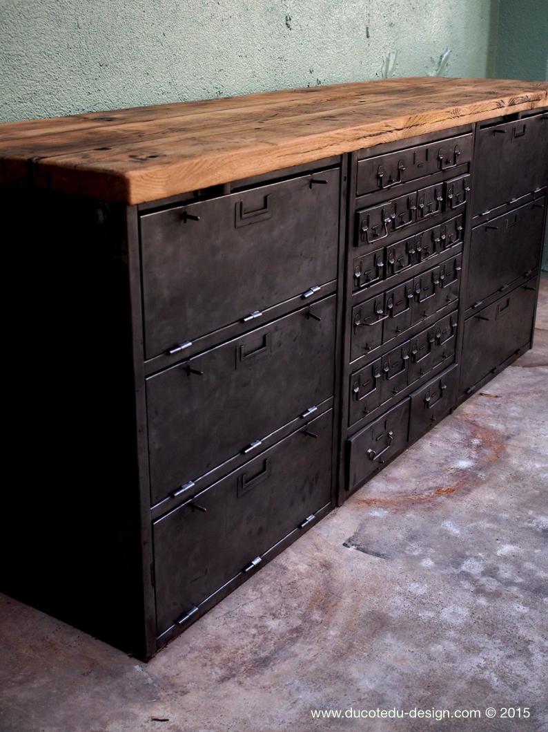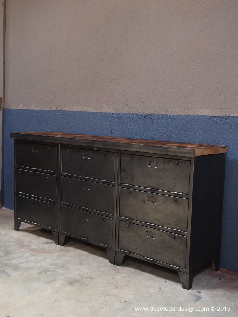 Ajoutermeuble console 8 casiers industriel clapet Roneo plateau chene massif685€Indisponible -