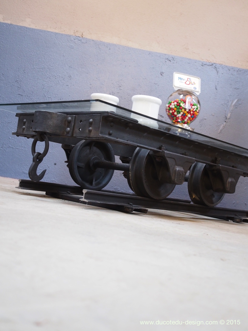 AjouterTable basse metal industrielle wagon de mine sur rail plateau de verre1395€Indisponible -