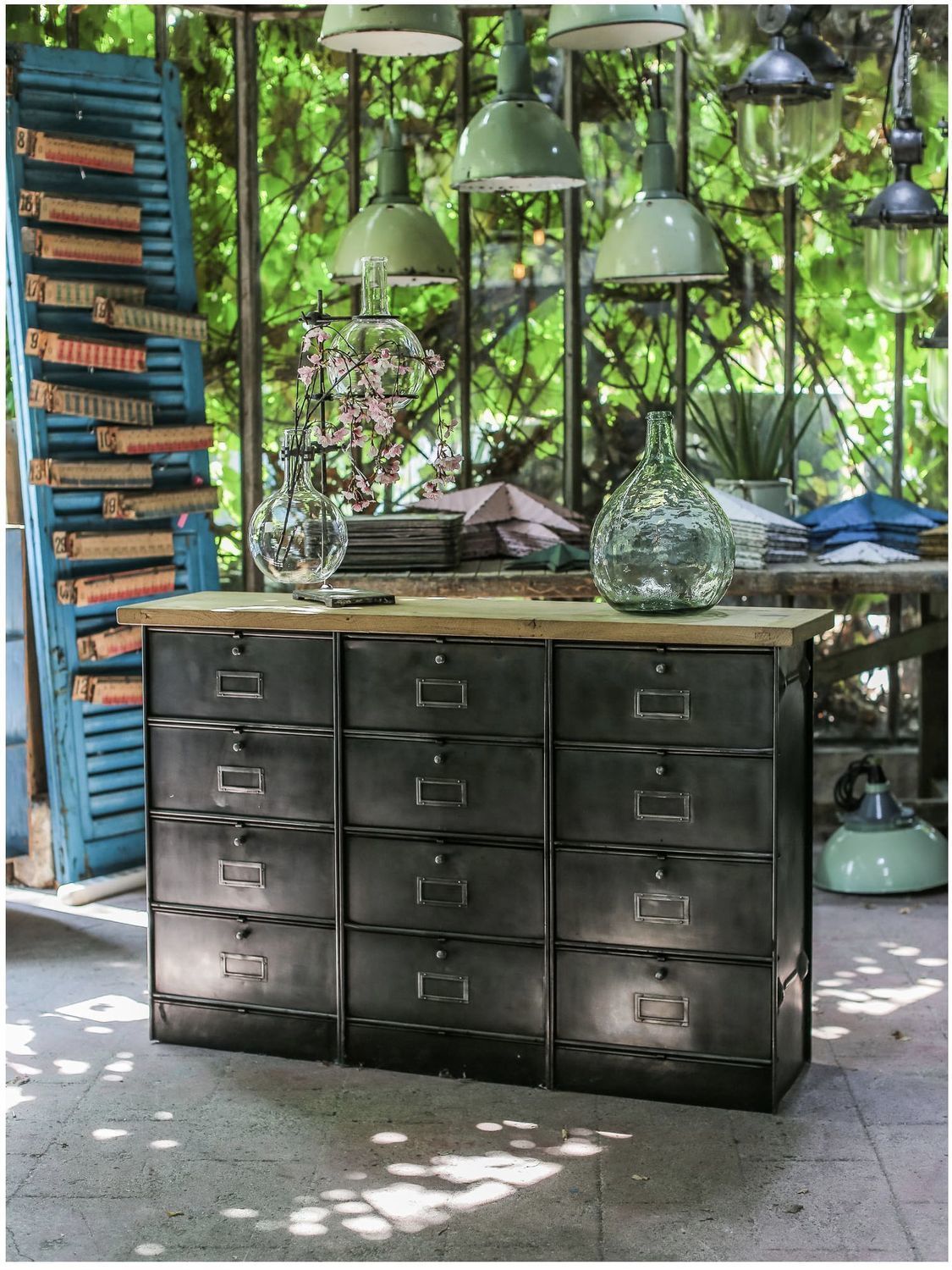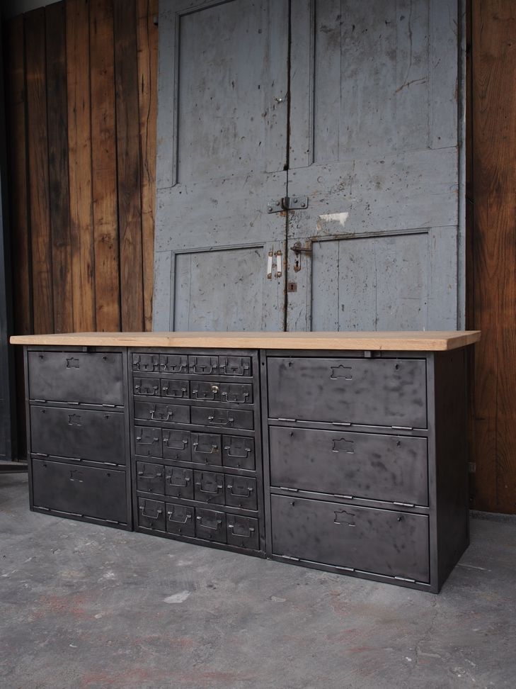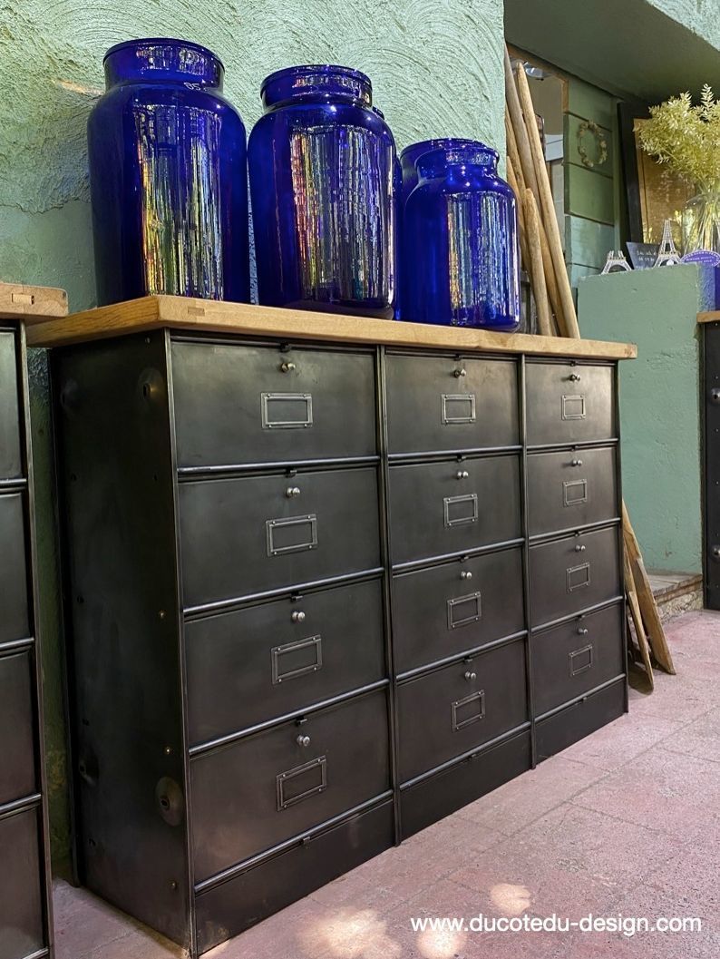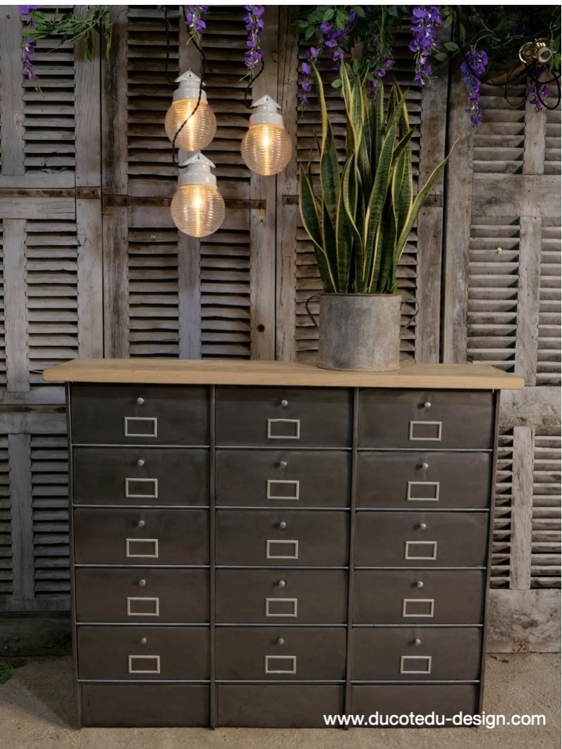 Ajouterenfilade industrielle 12 compartiments atelier militaire plateau massif bois brulé1350€Indisponible -