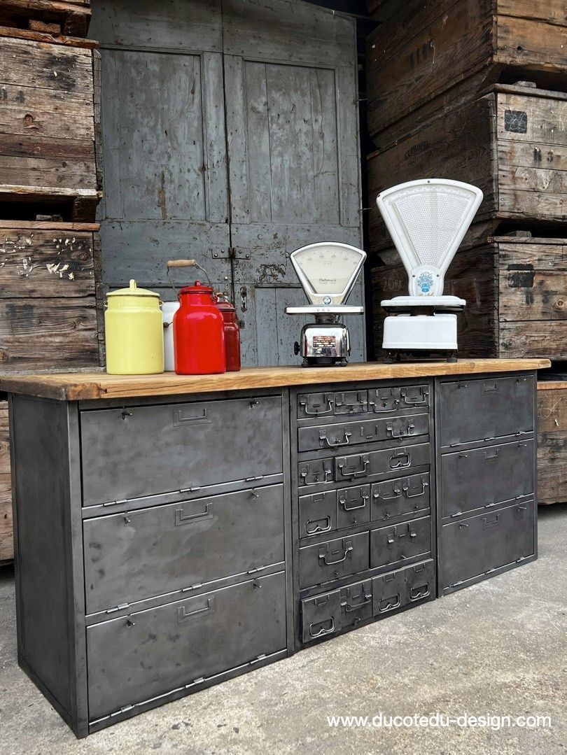 Ajoutermeuble militaire console métal plateau bois 6 tiroirs1200€Indisponible -
