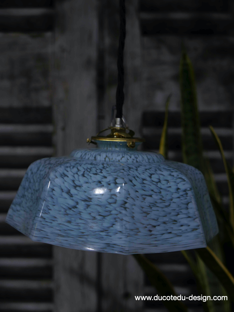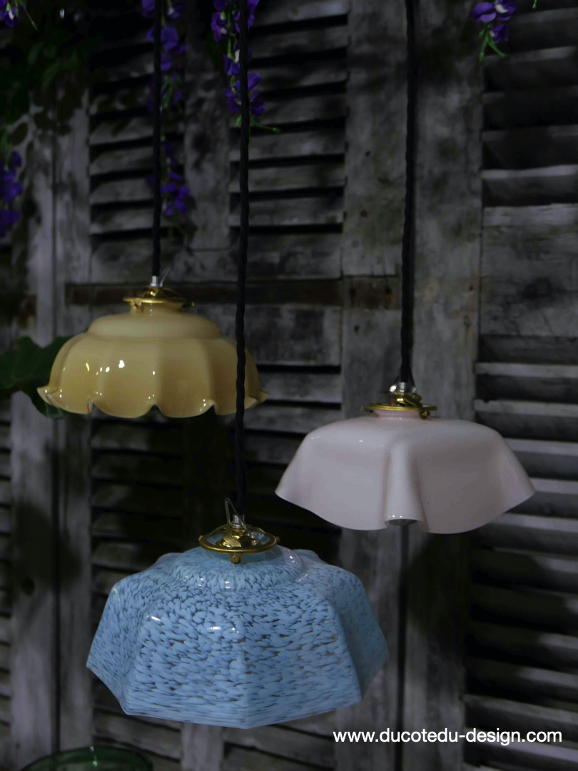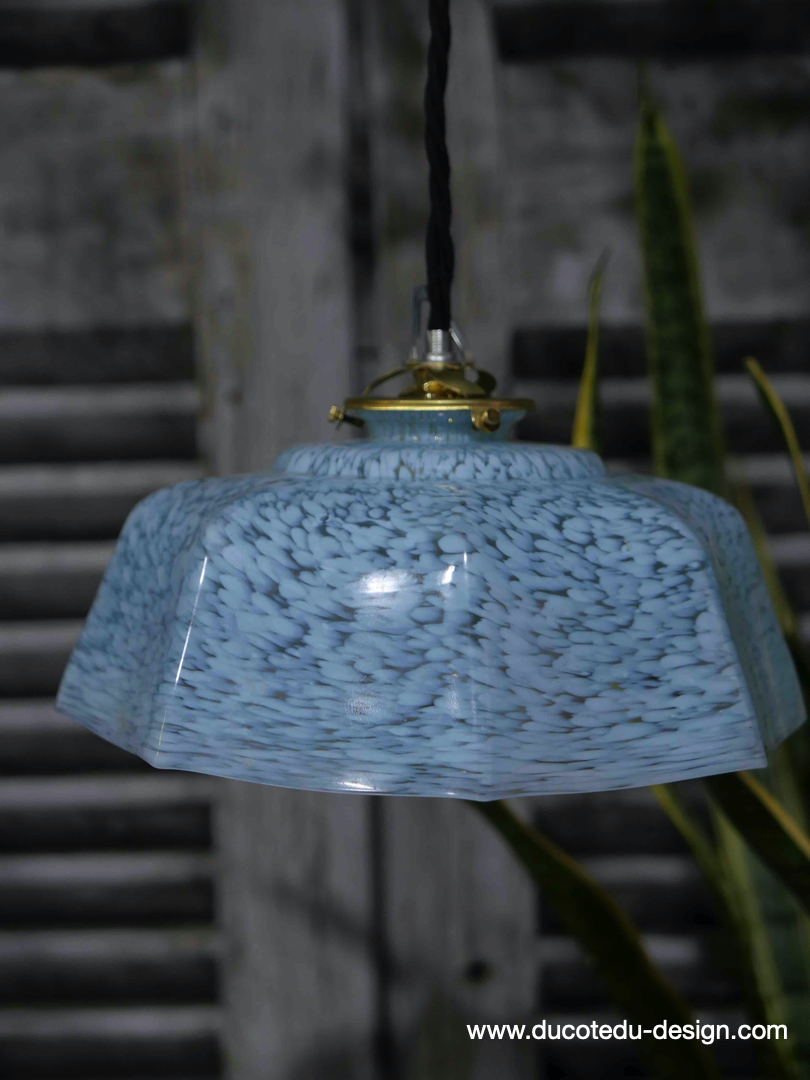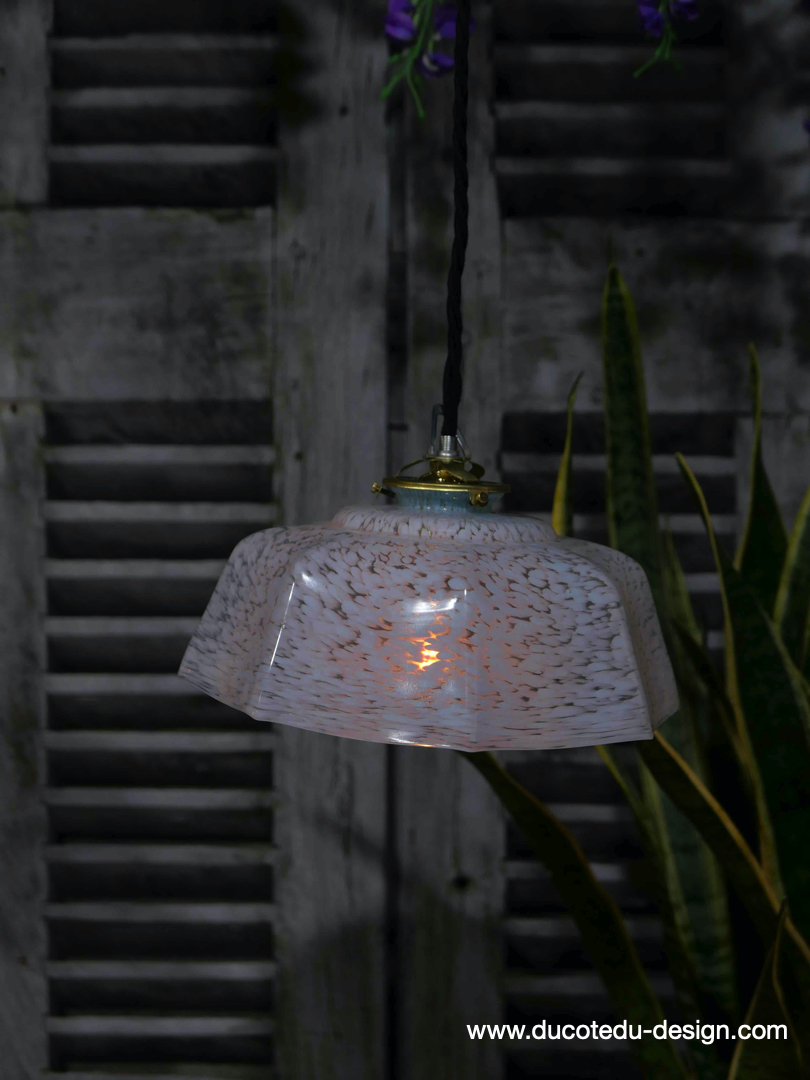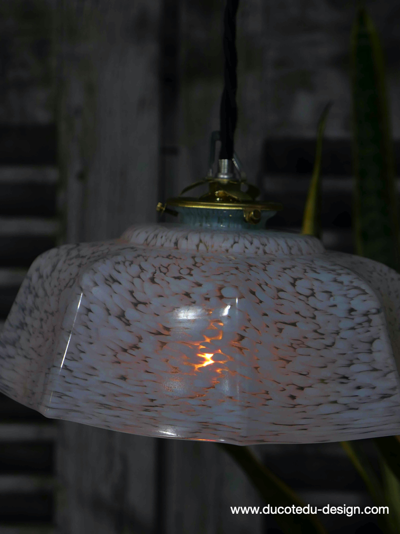 abat jour suspention so chic opaline lampe vintage des annees 50 cable 2 metres douille e27 a vis standard avec terre