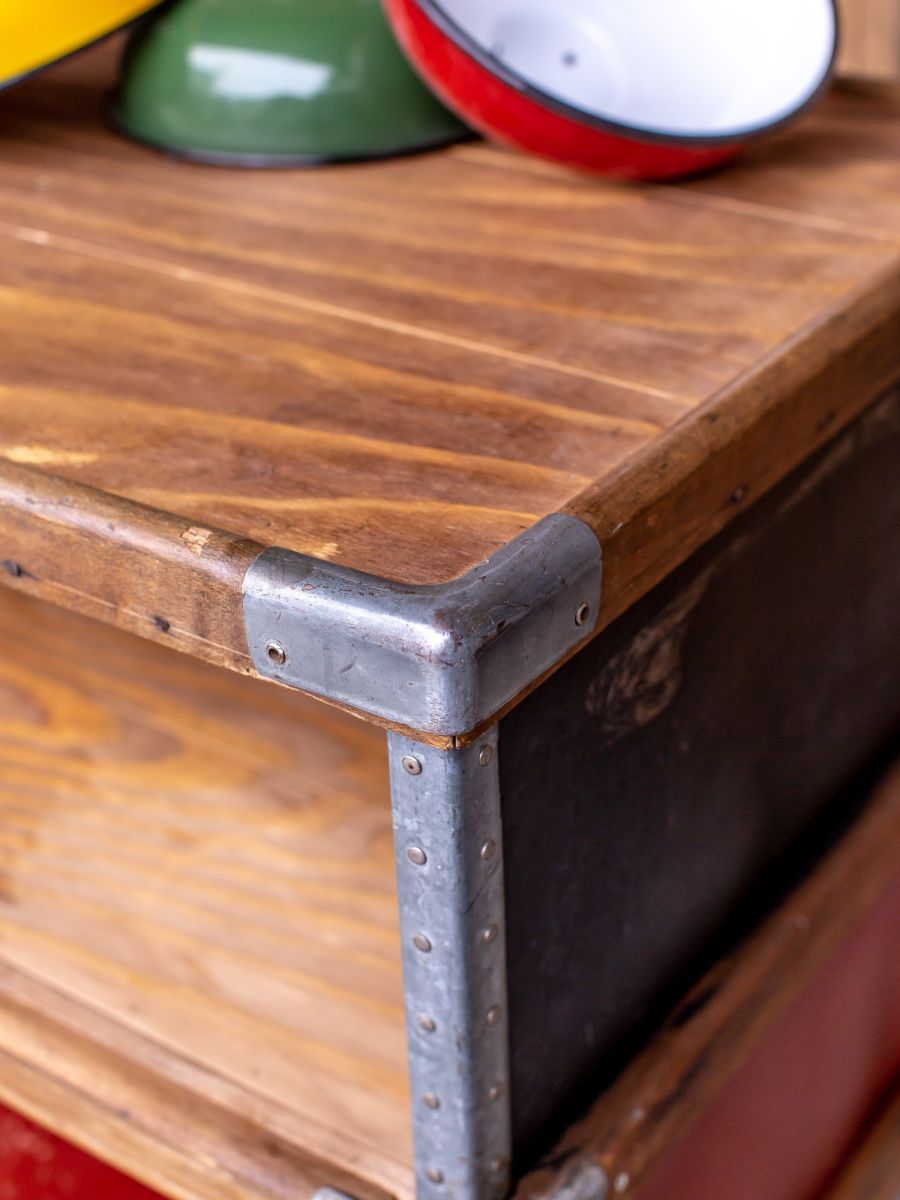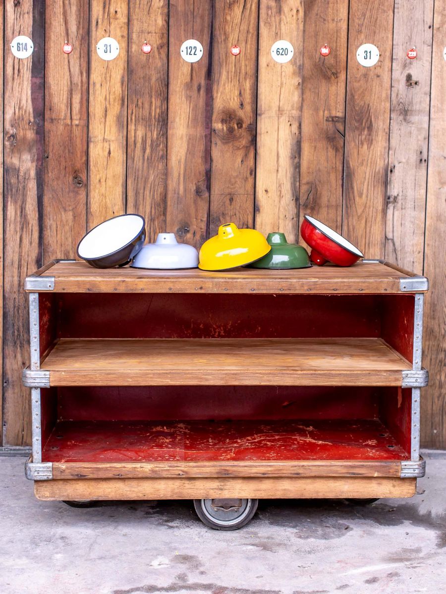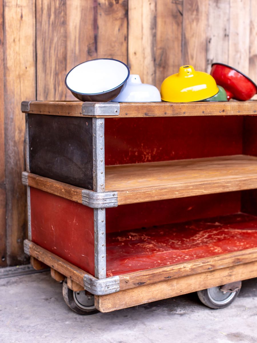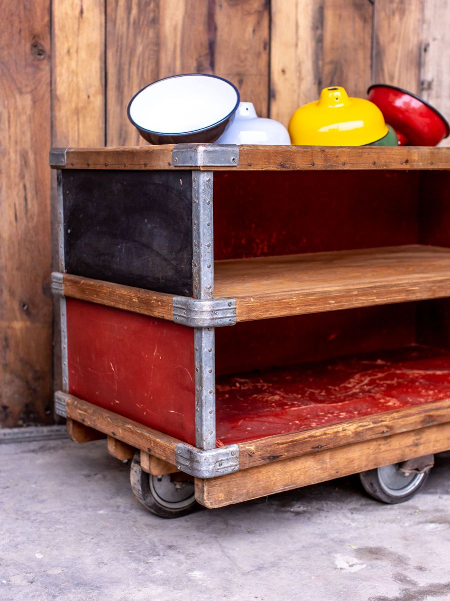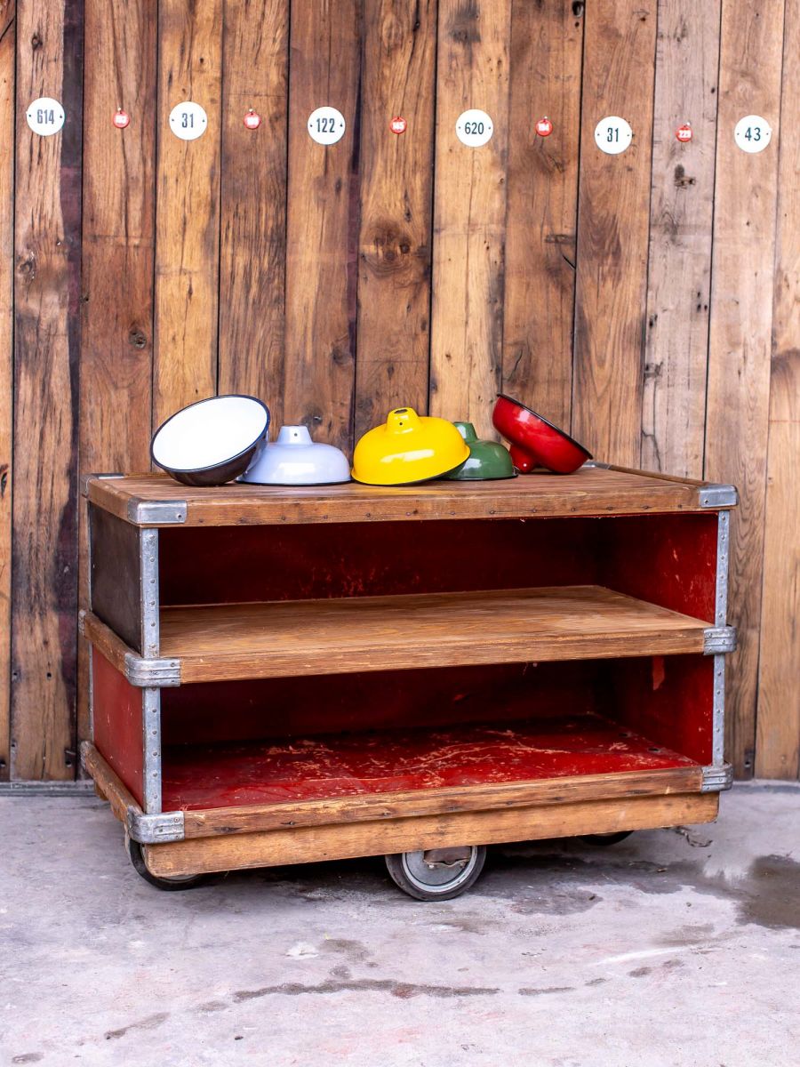 ancien bac Suroy caisse a roulettes d’usine textile couleur d’origine