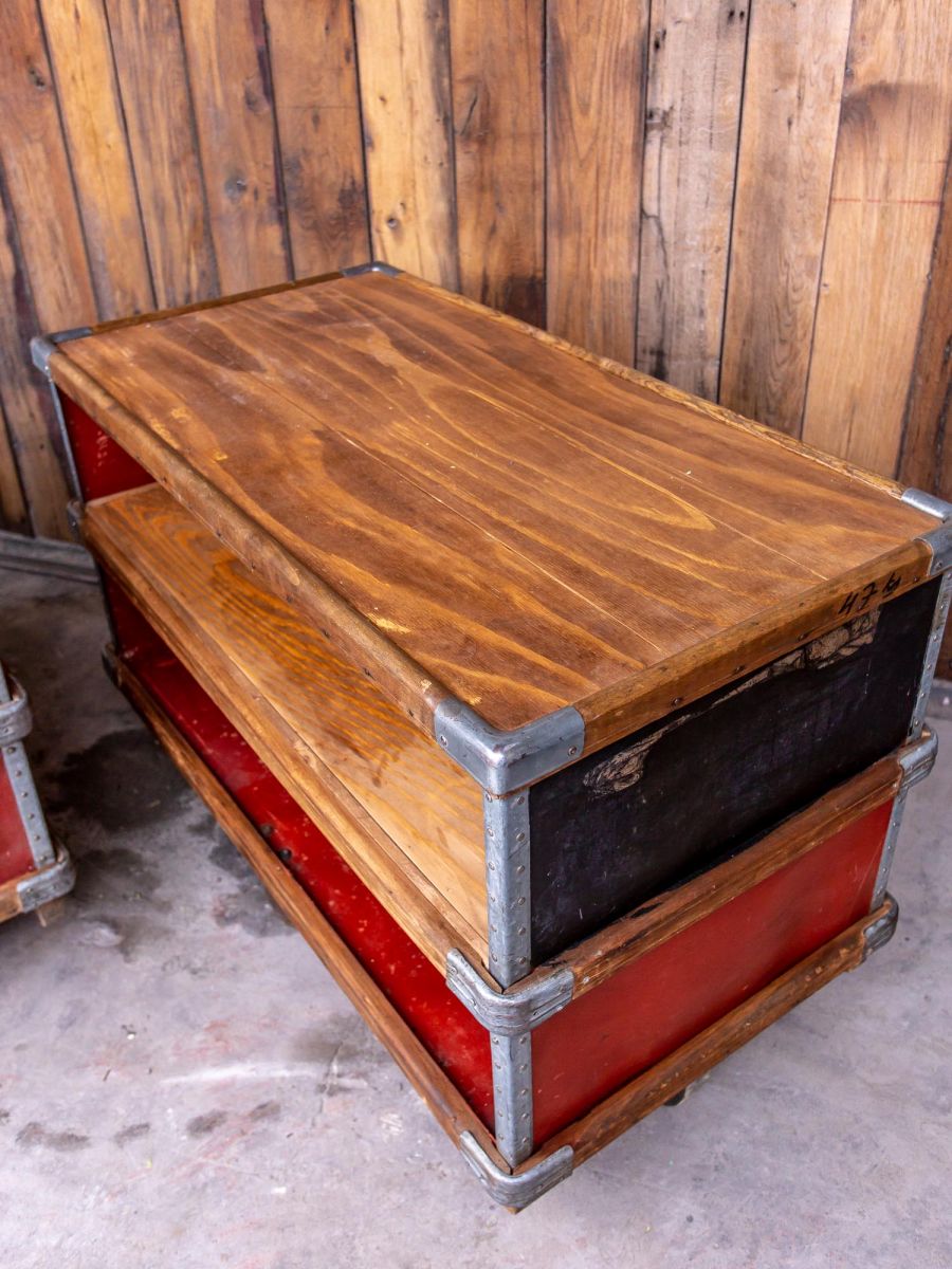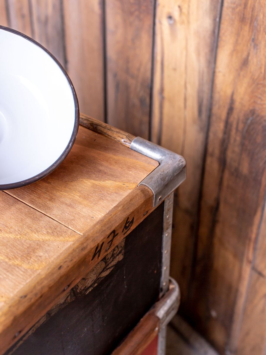 ancien bac Suroy caisse a roulettes d'usine textile couleur d'origine