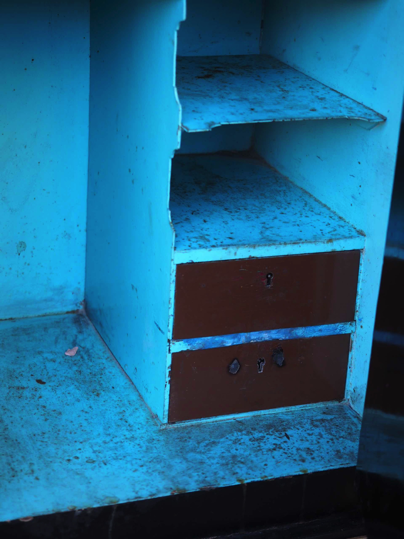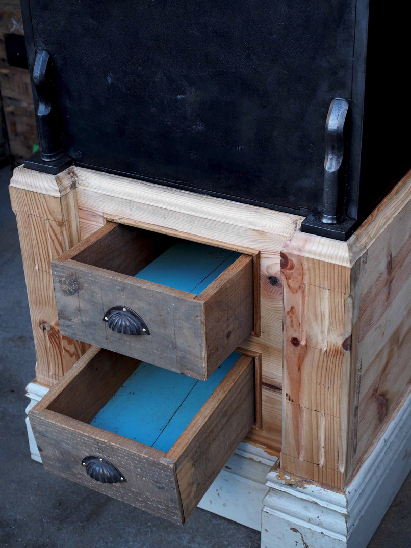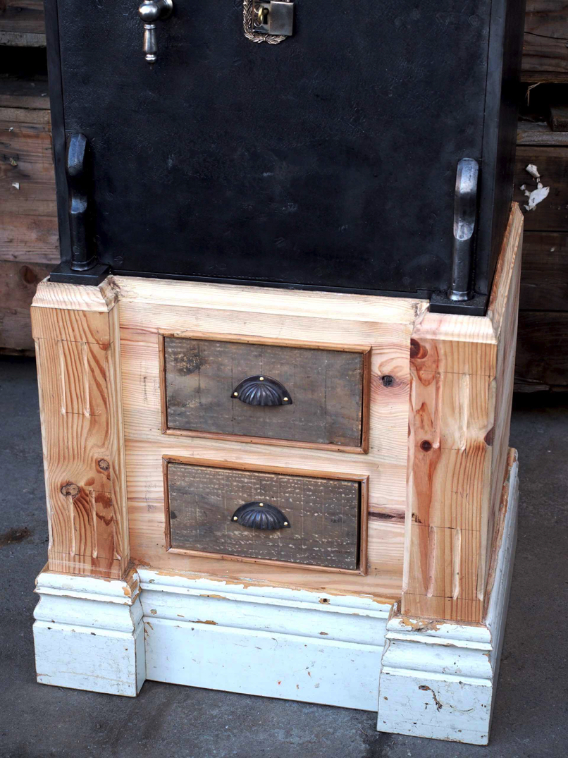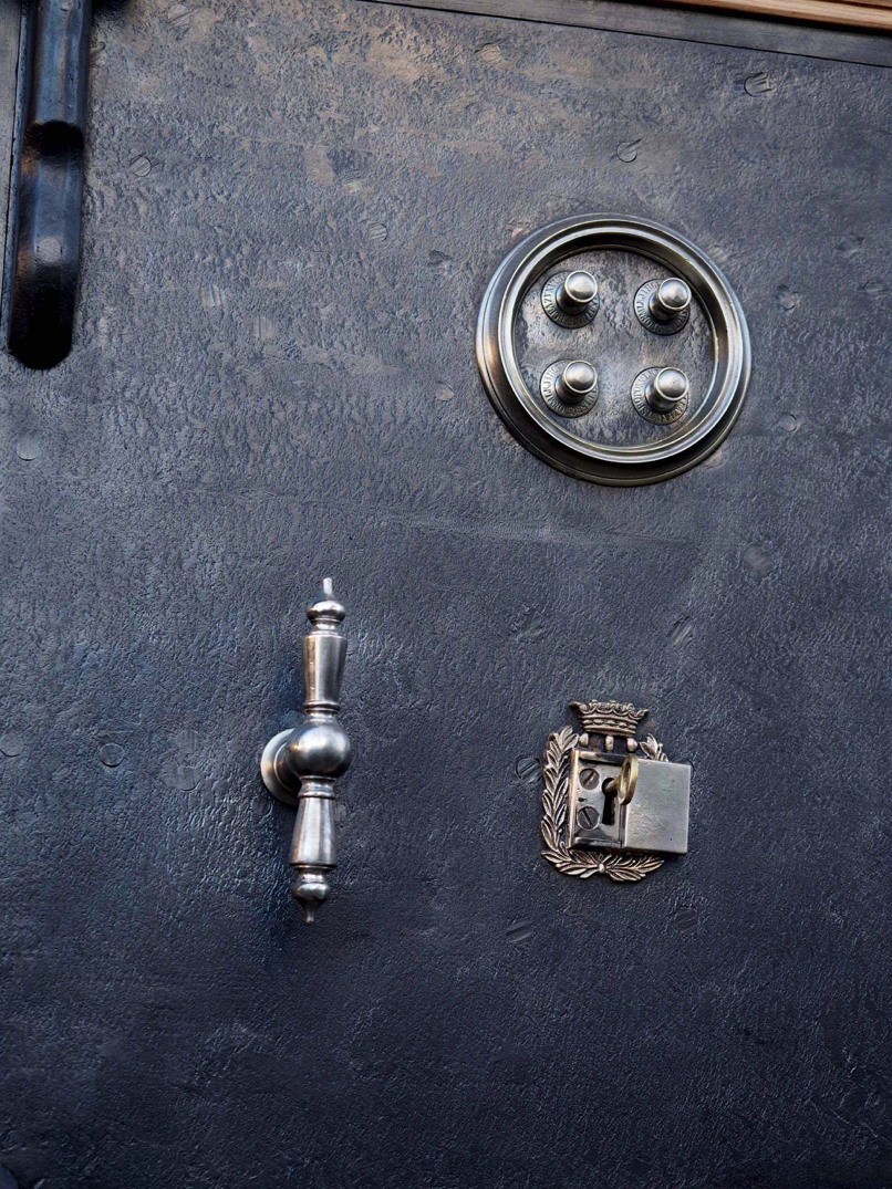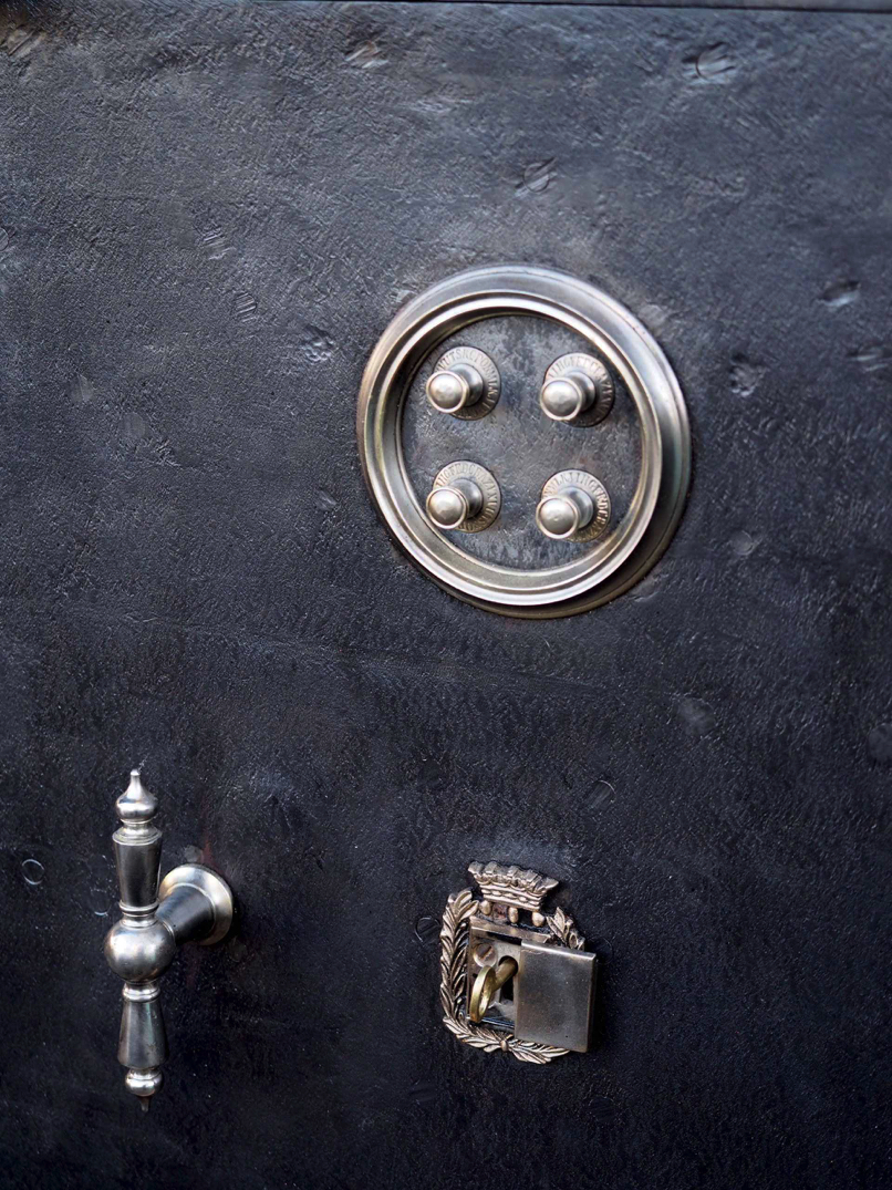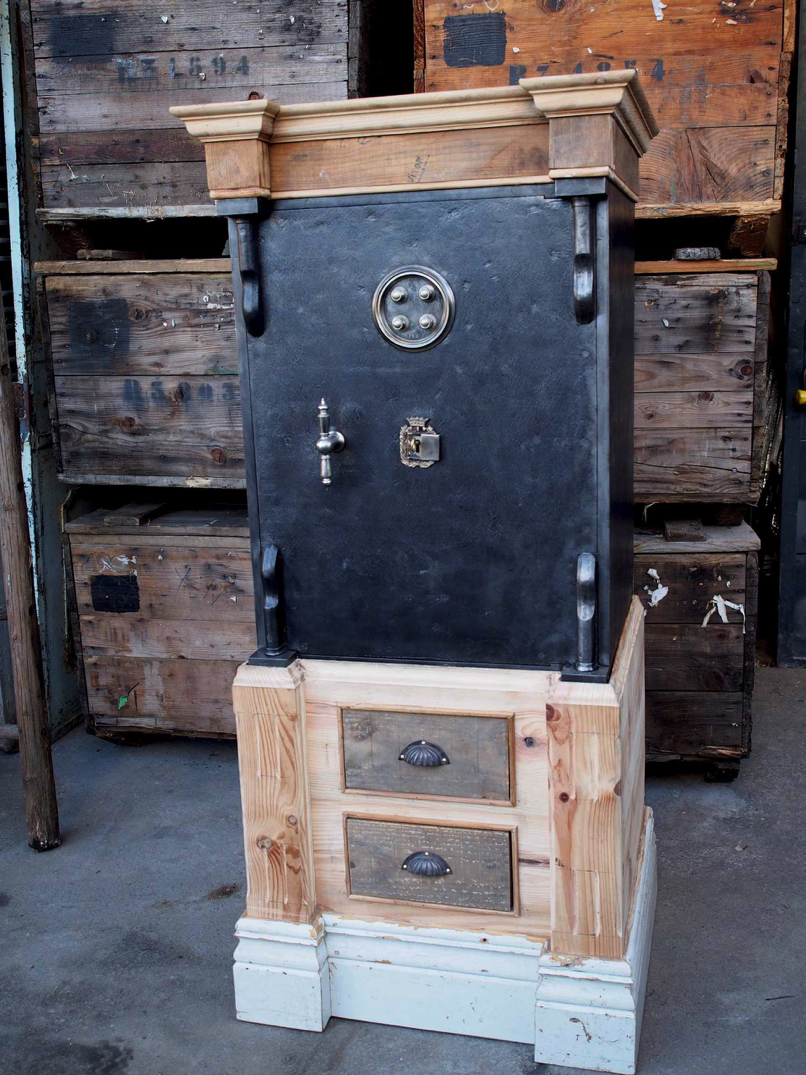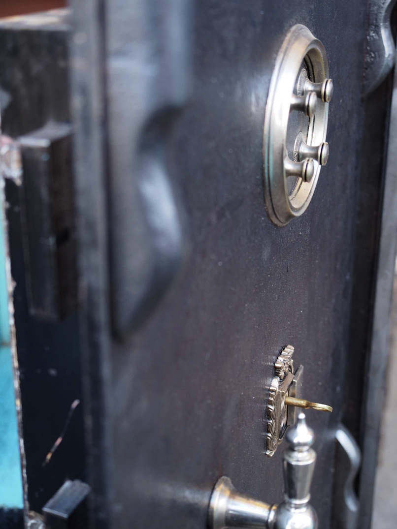 Ancien coffre fort des annees 30 metal / bois jeu de clés pour ouvrir serrure principale et petits compartiments avec code Toutes ces serrures fonctionnent parfaitement haut 152 cm. largeur 68 profondeur 52 cm tres grand tres lourd Forfait livraison sur palette par transporteur