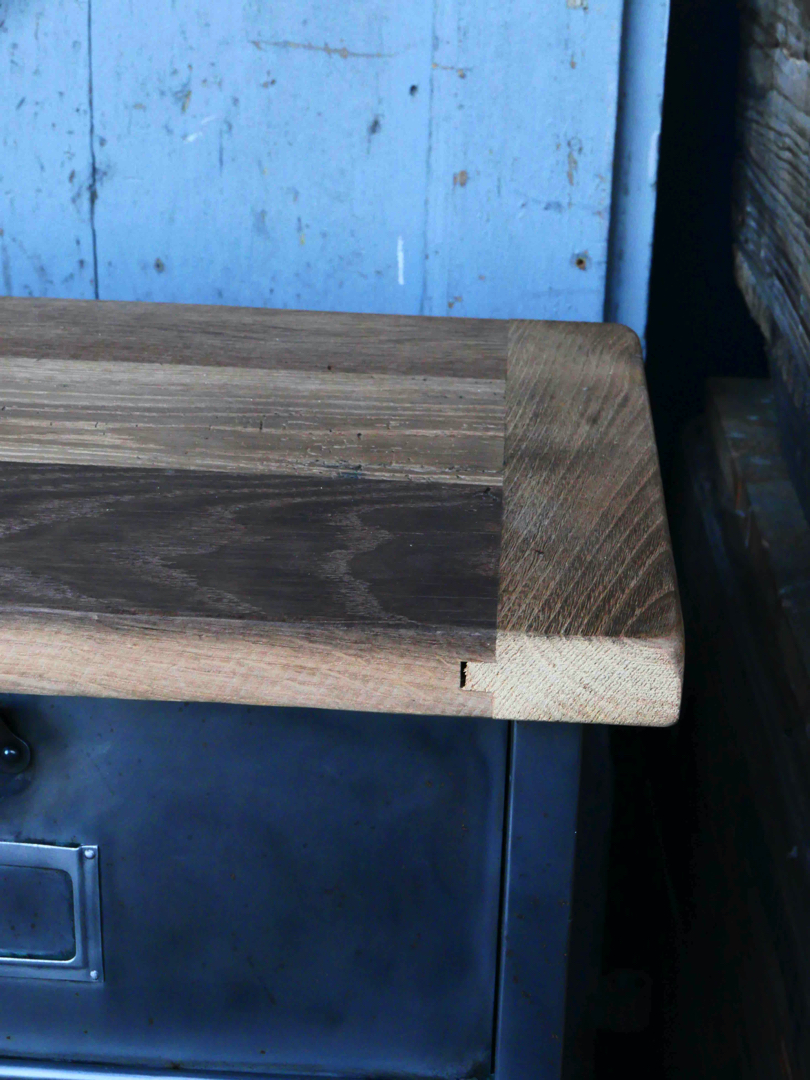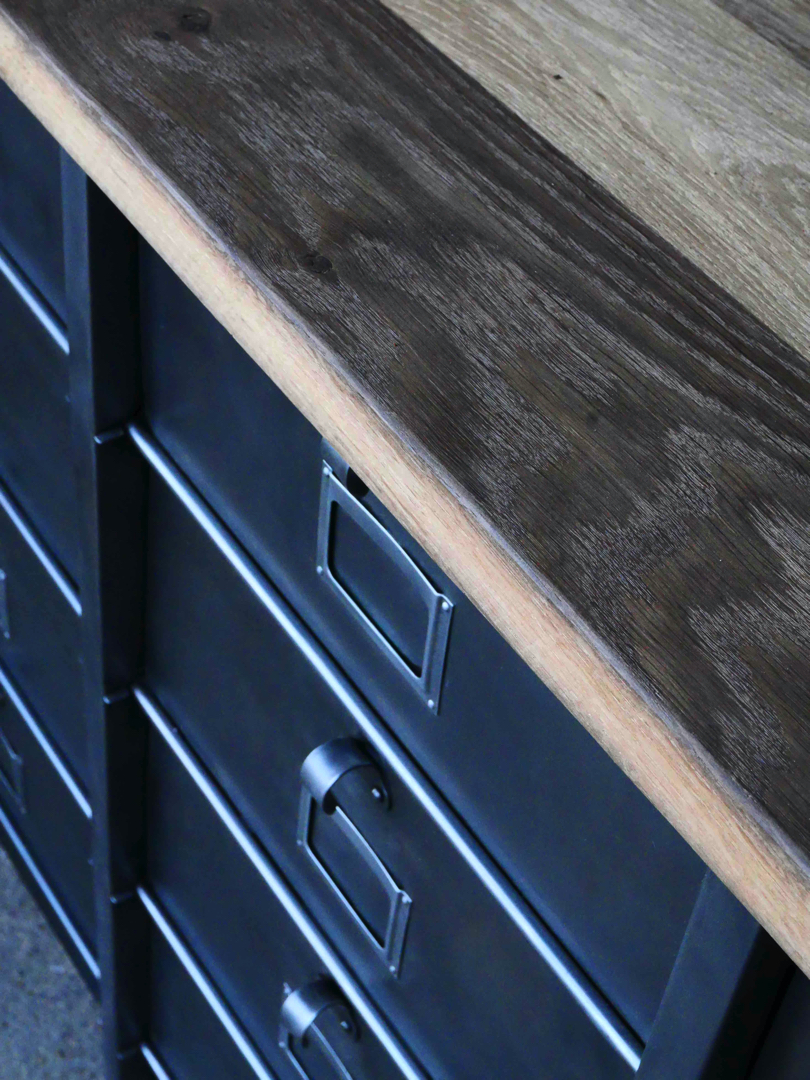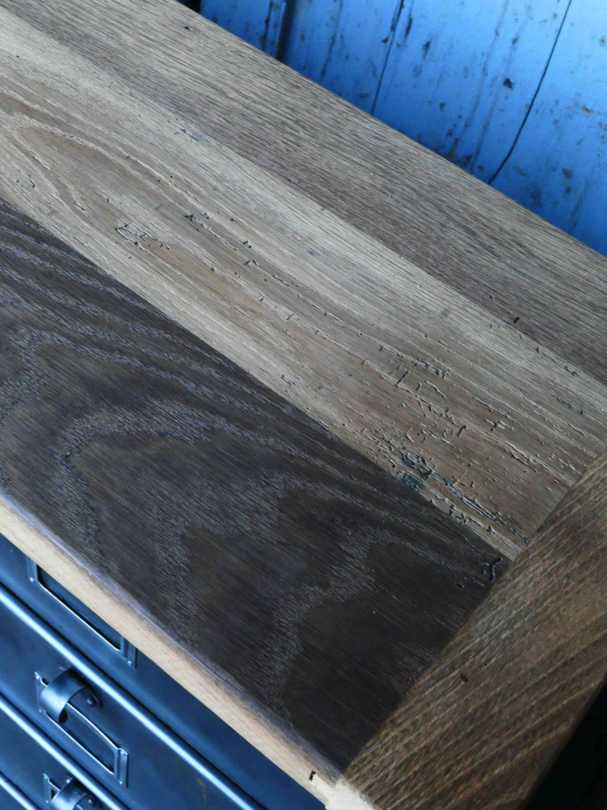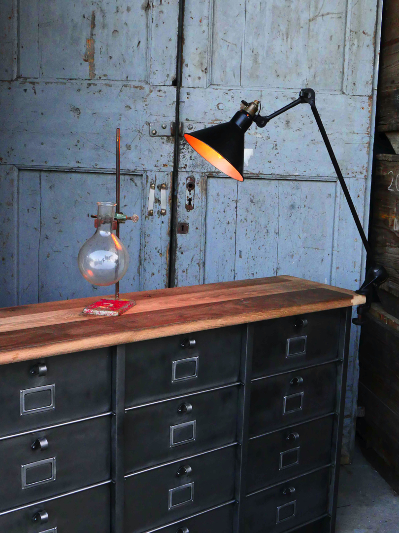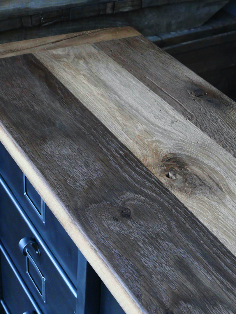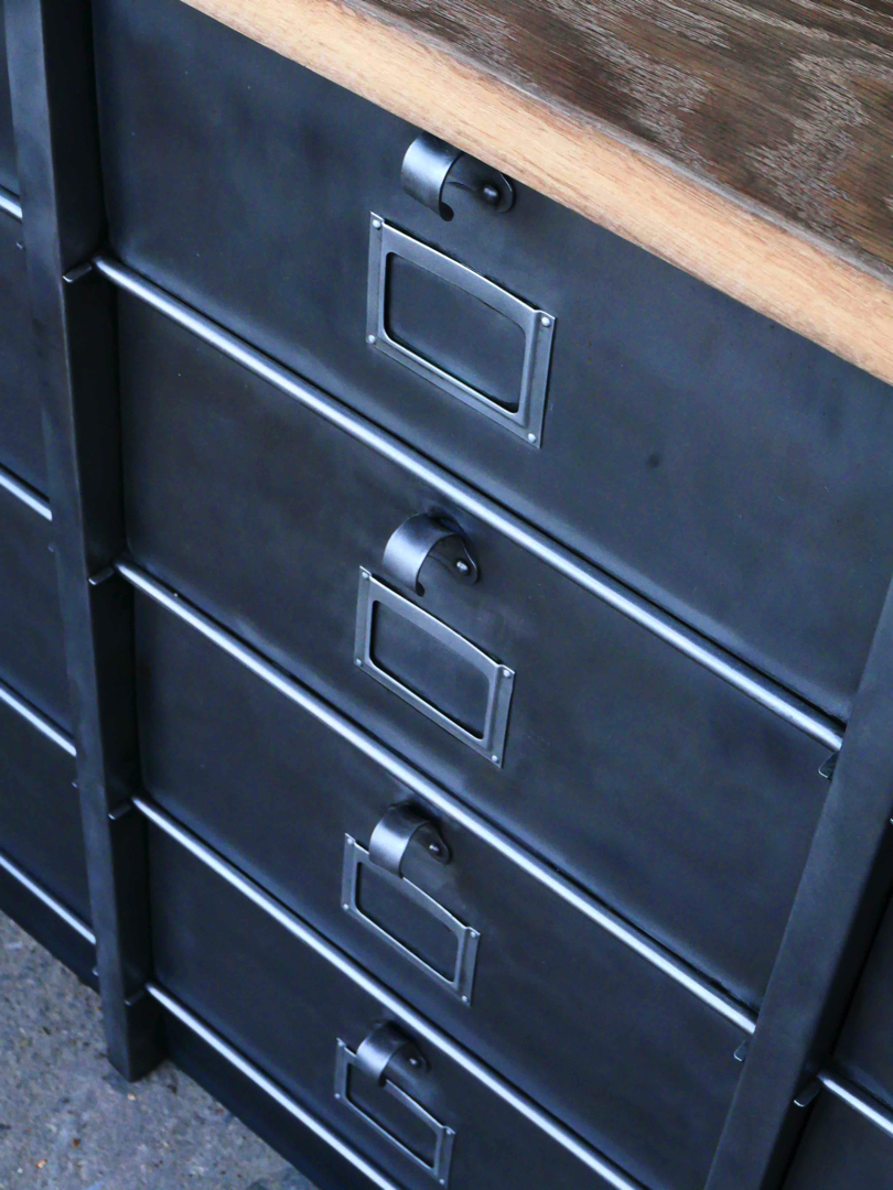 ancien grand meuble 12 casiers industriel strafor plateau chene massif