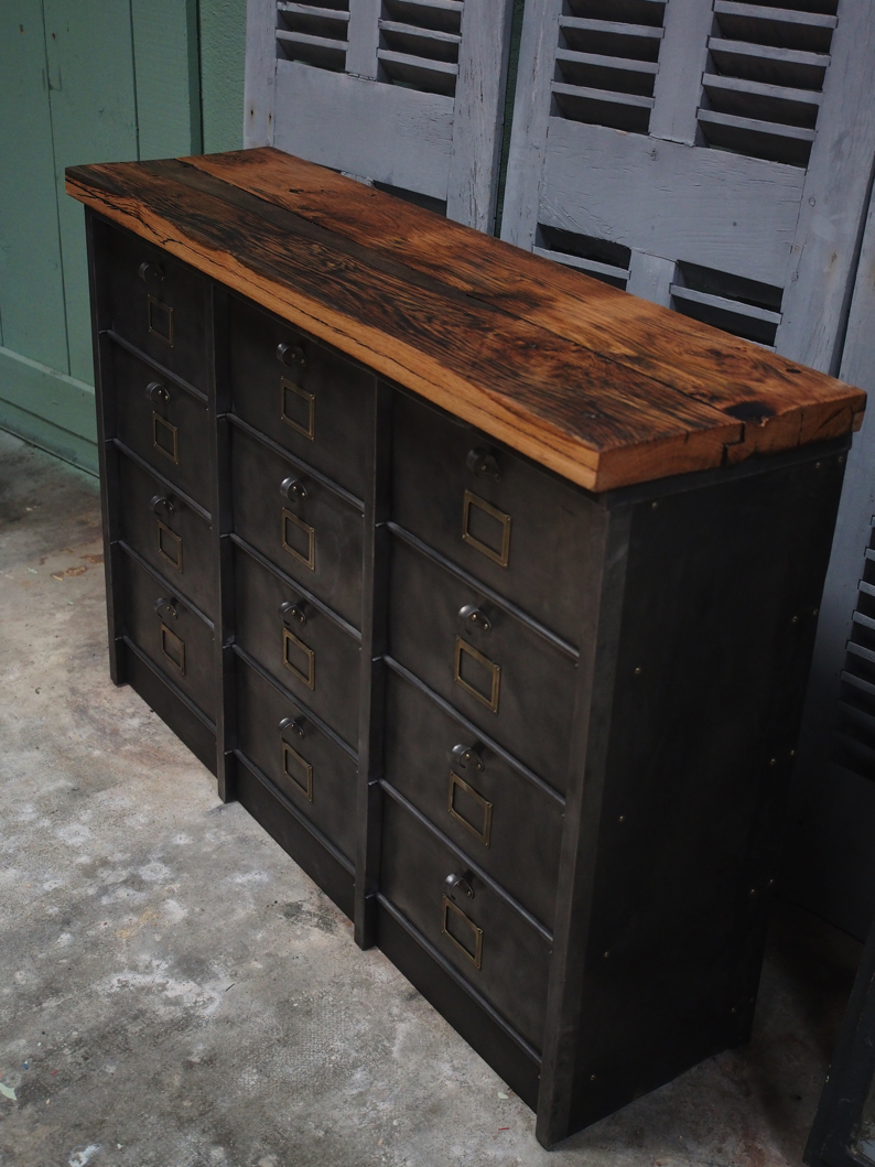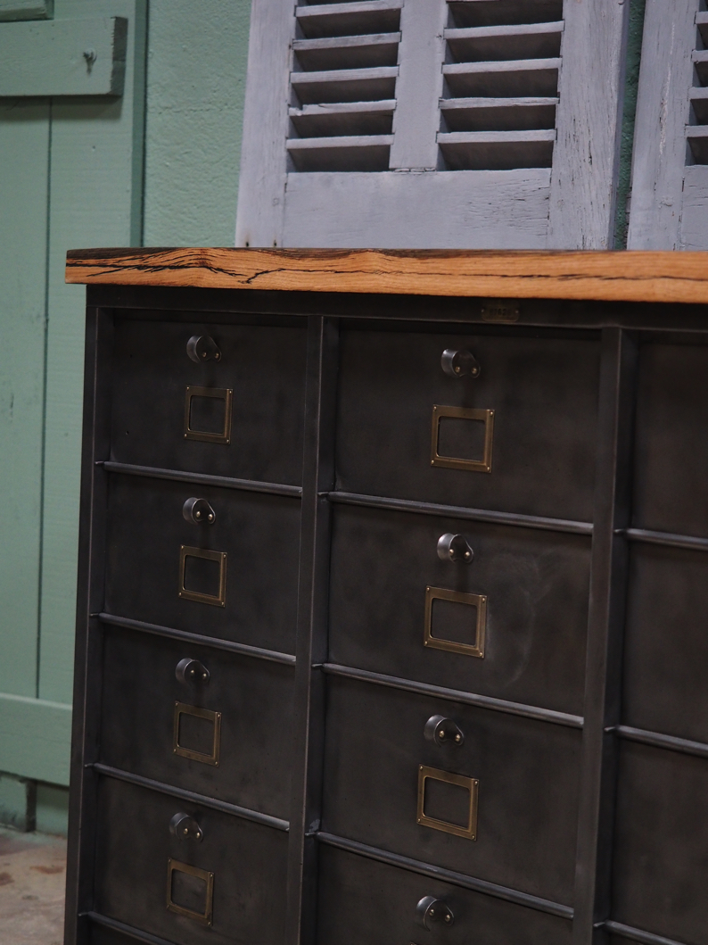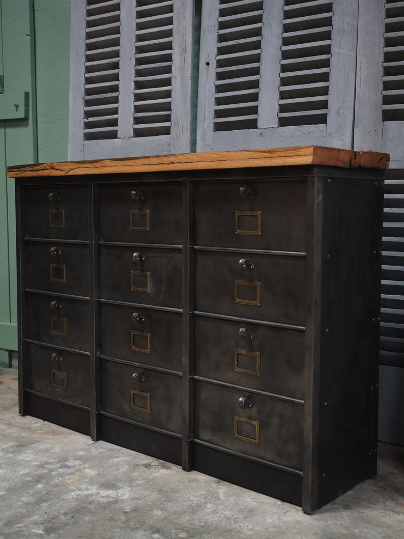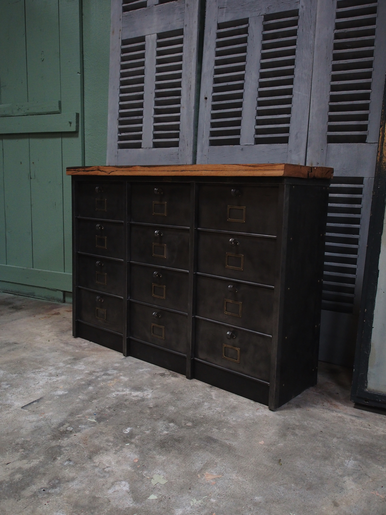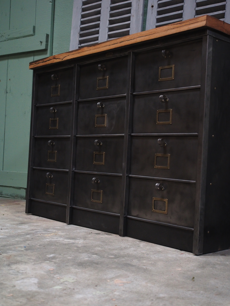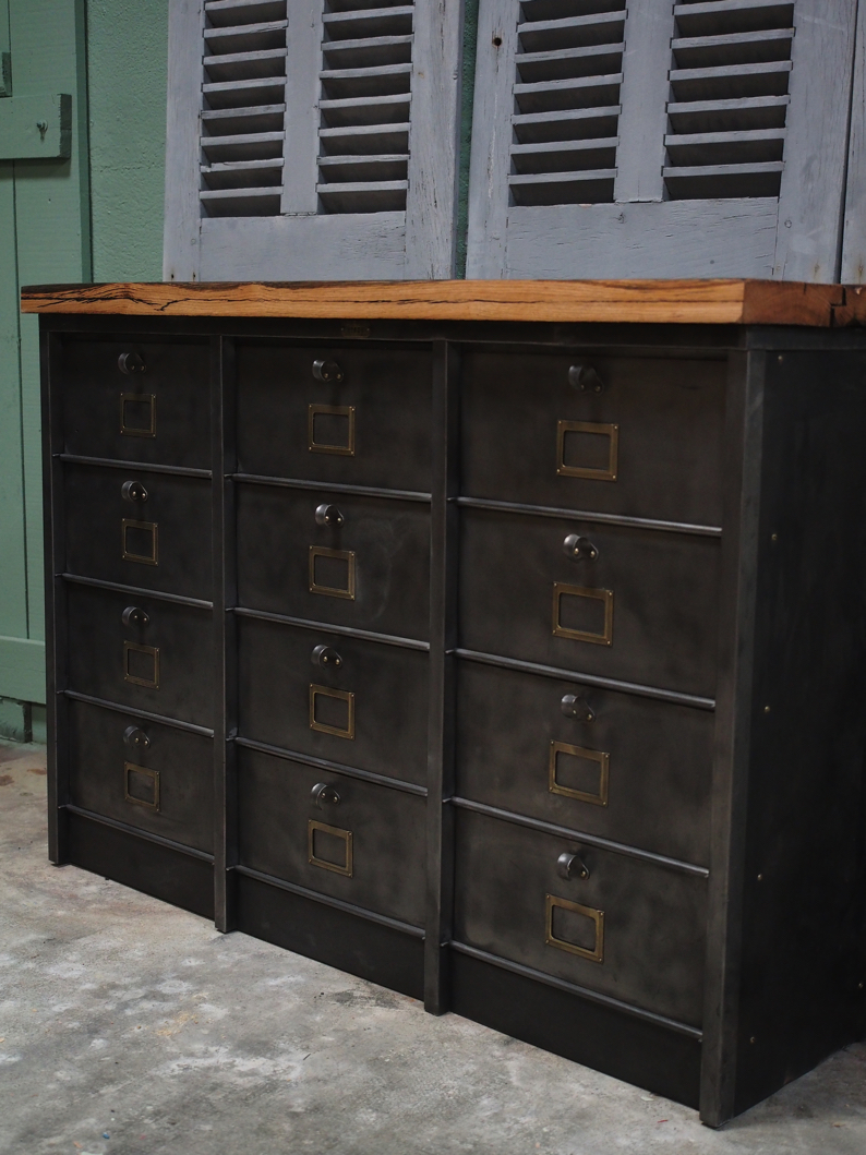 ancien grand meuble 12 casiers industriel strafor plateauchene massif