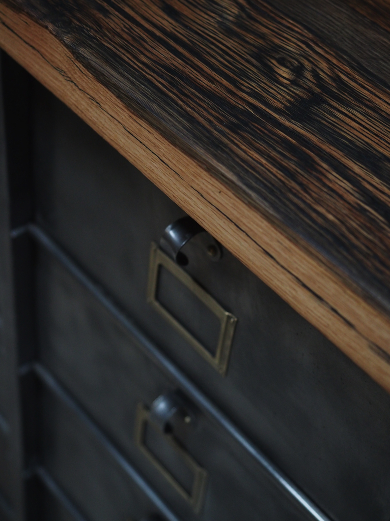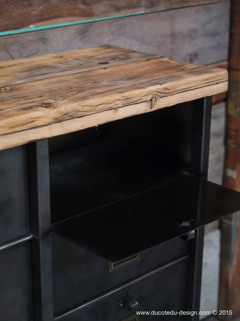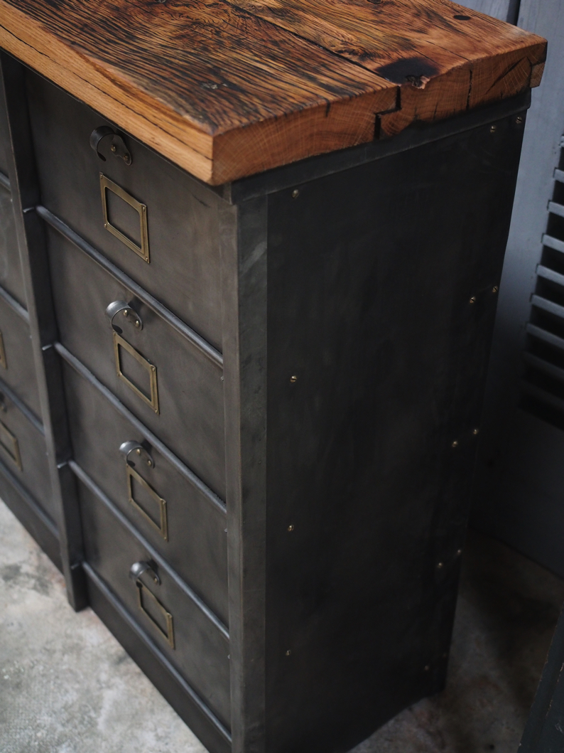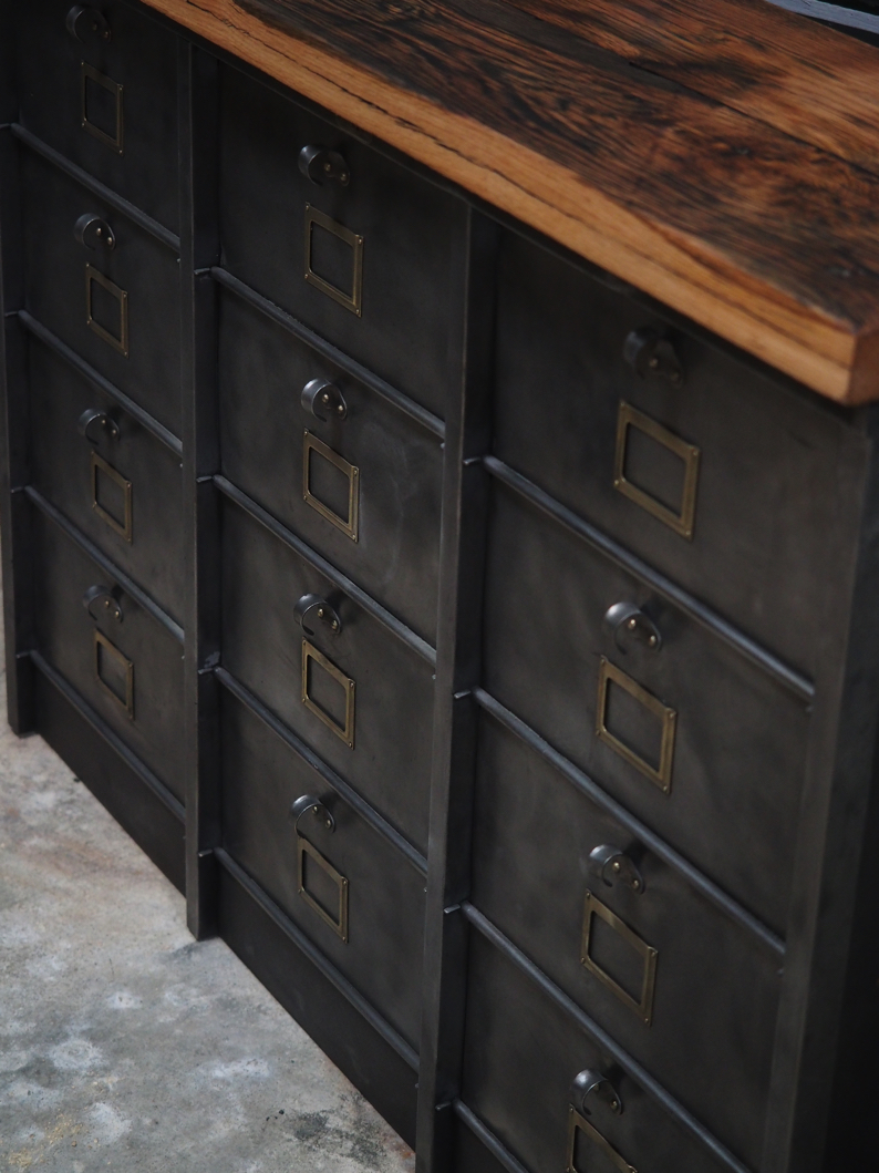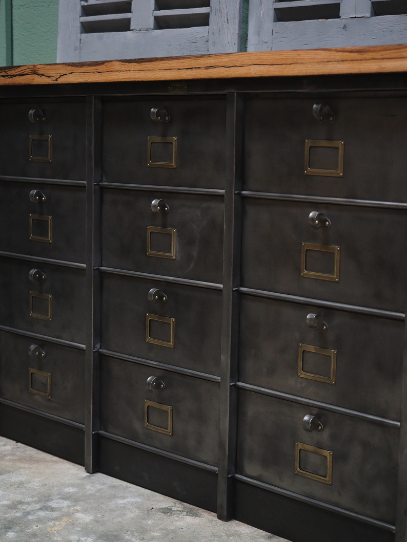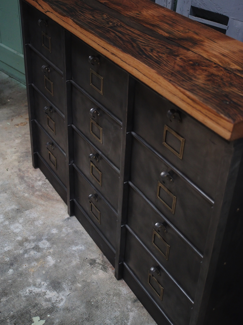 ancien grand meuble 12 casiers industriel strafor plateauchene massif