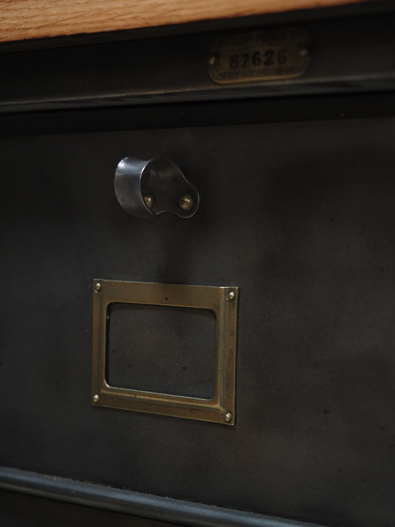Ancien meuble industriel a clapet strafor 15 casiers, portes etiquette laiton