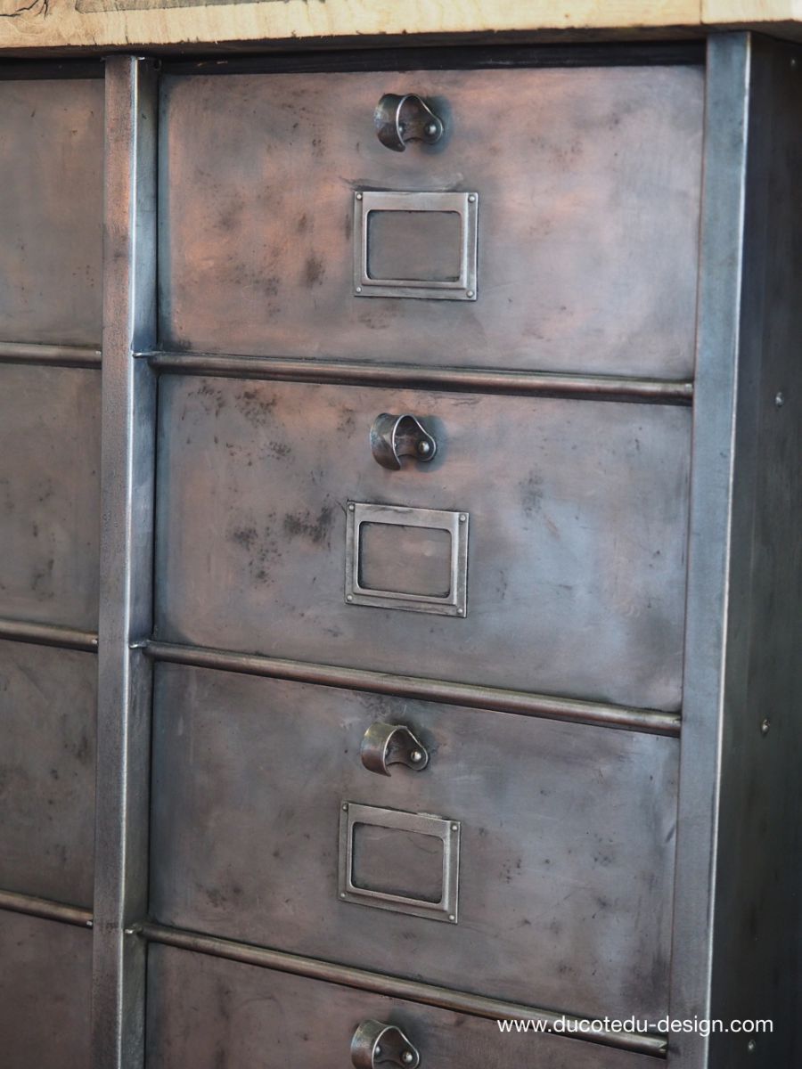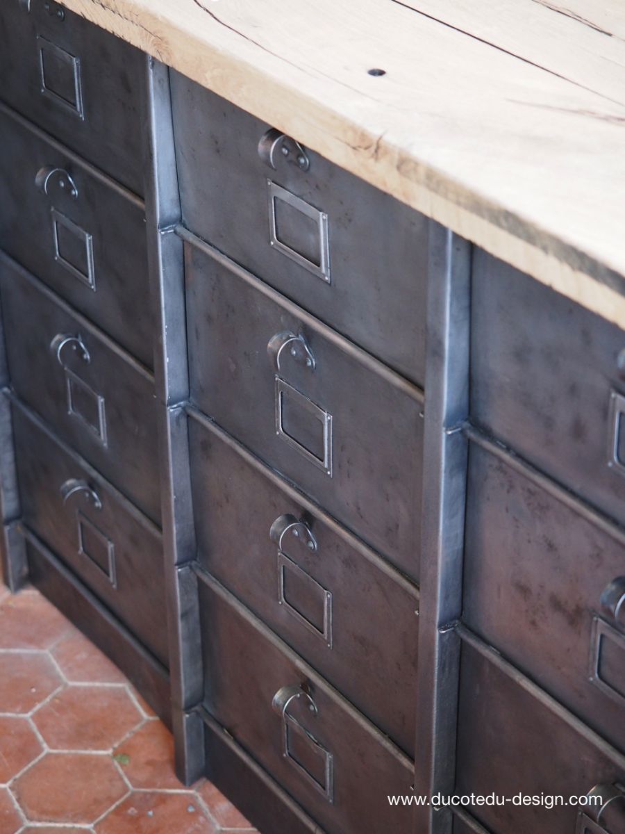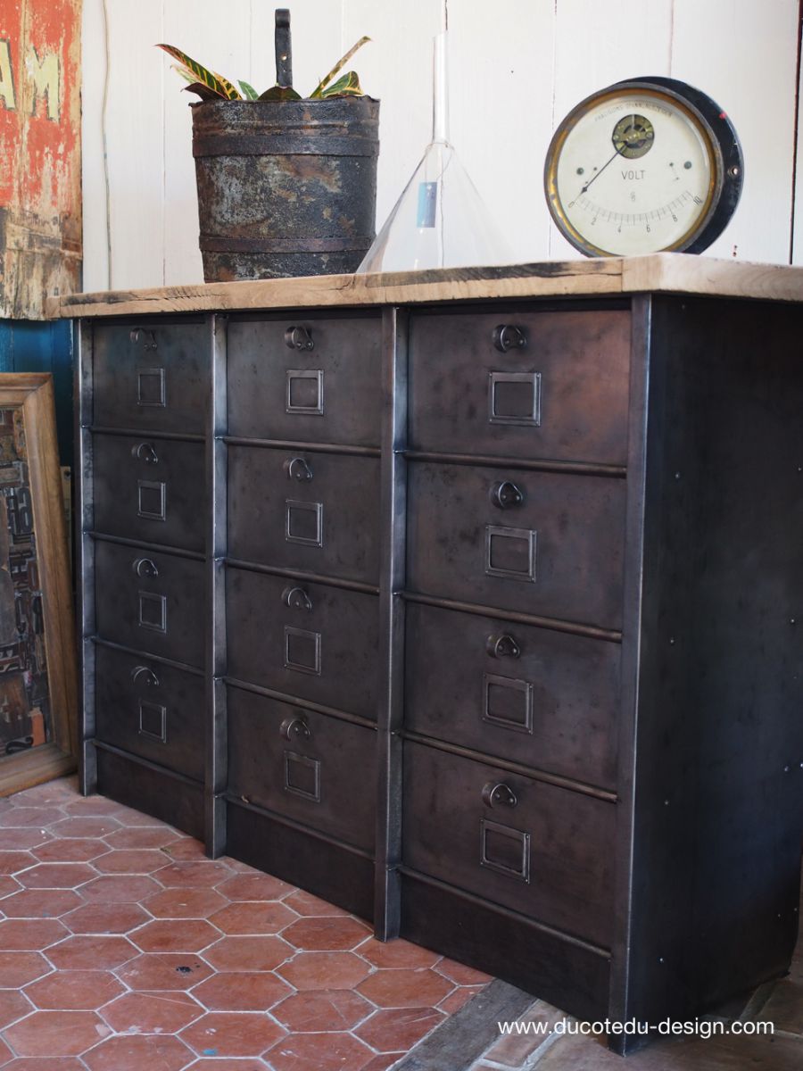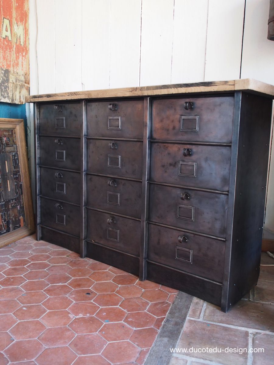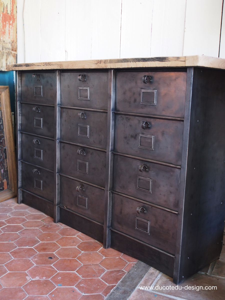 ancien grand meuble 15 casiers industriel strafor plateau chene massif