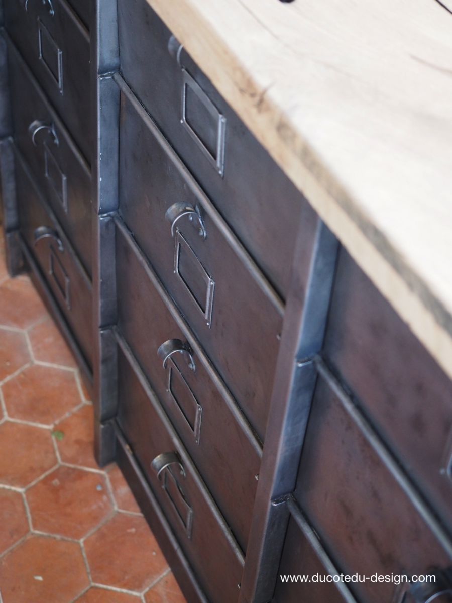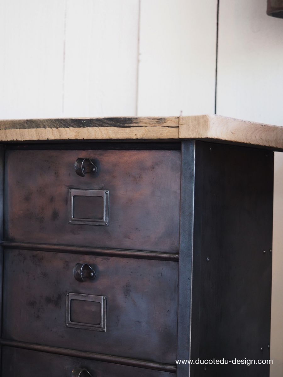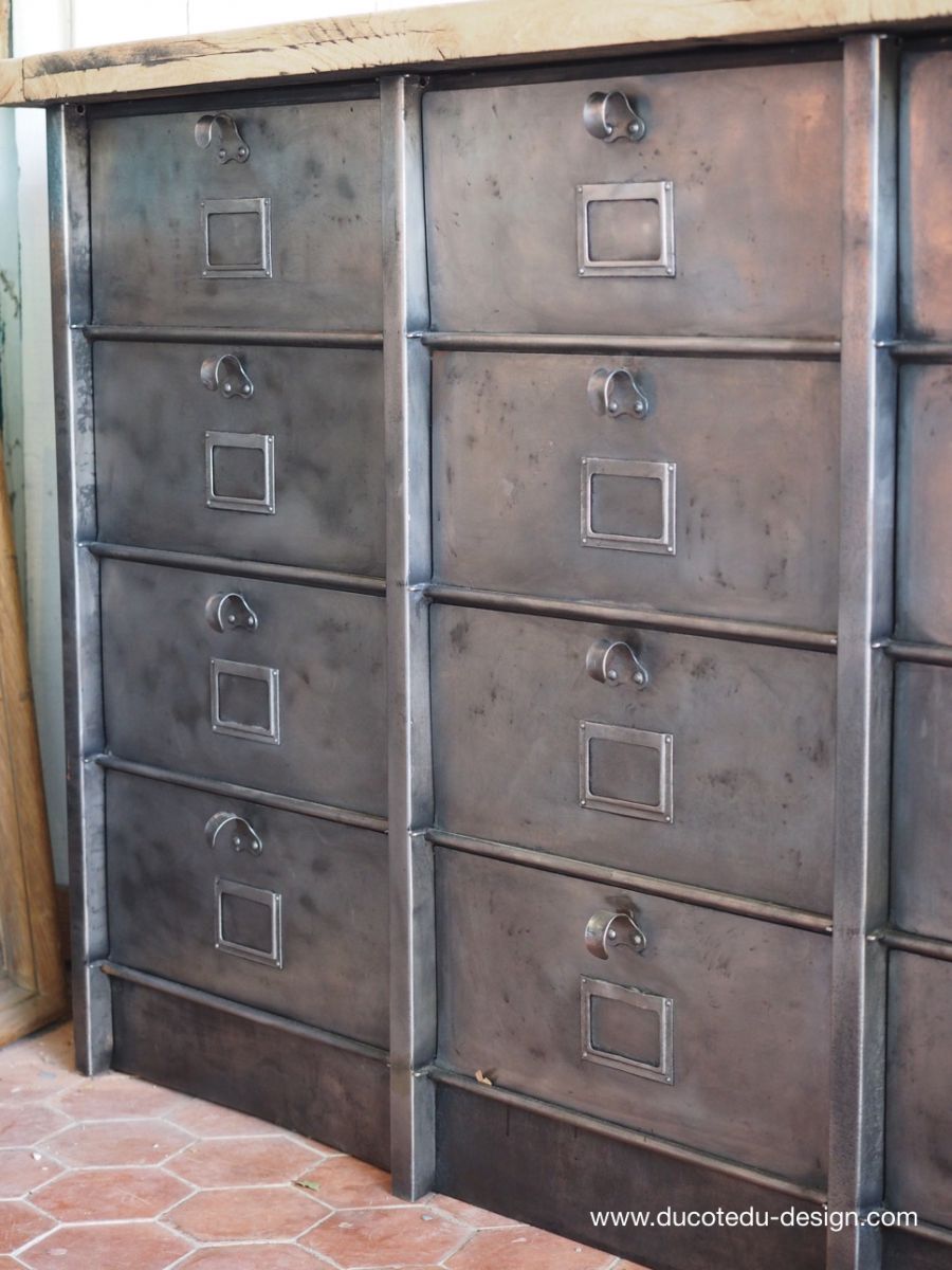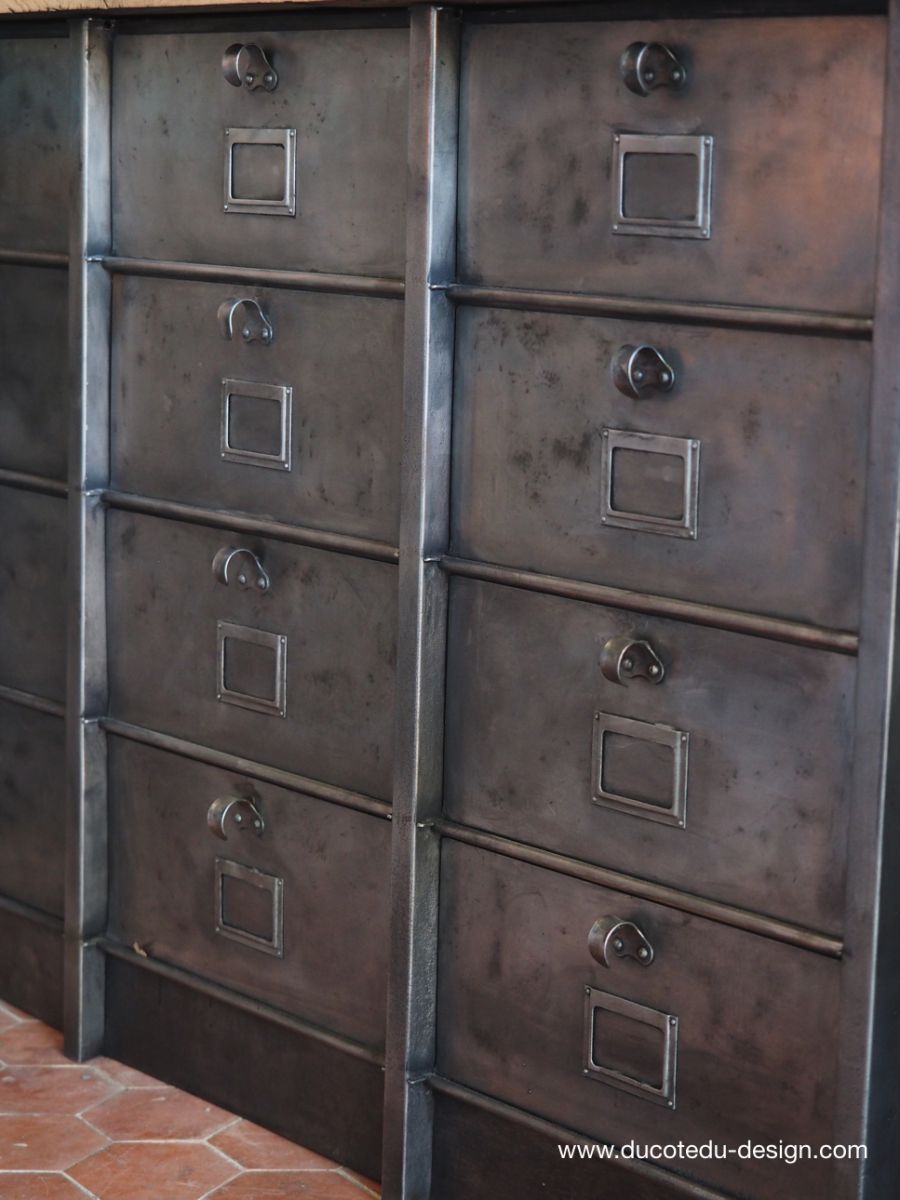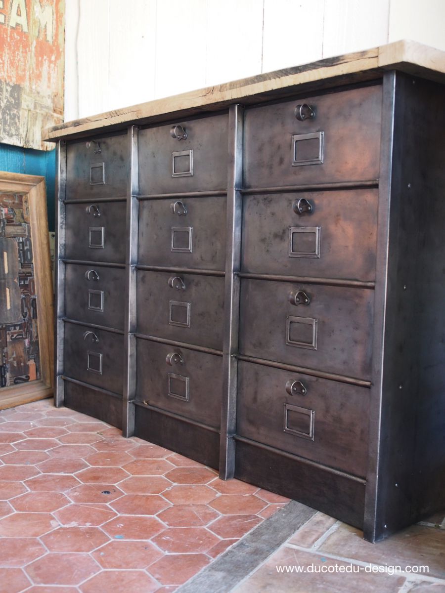 ancien grand meuble 15 casiers industriel strafor plateau chene massif