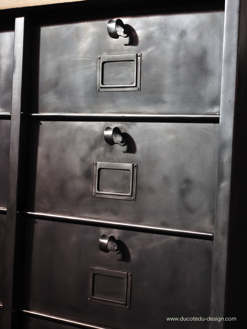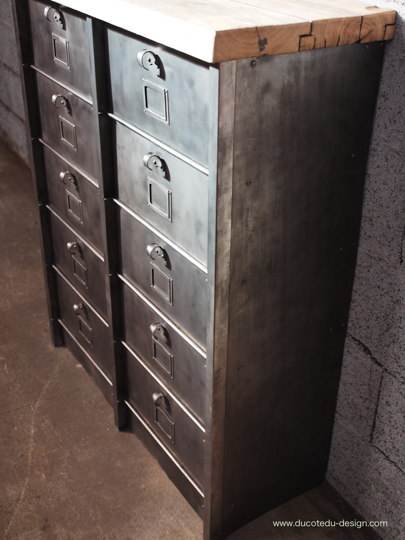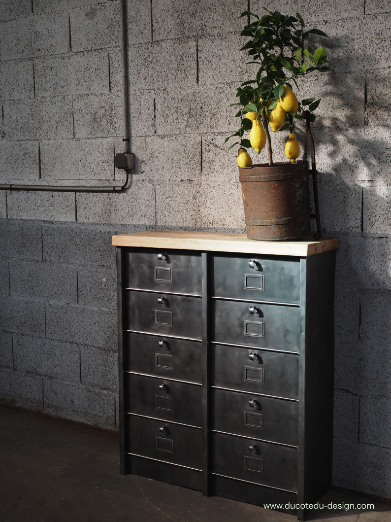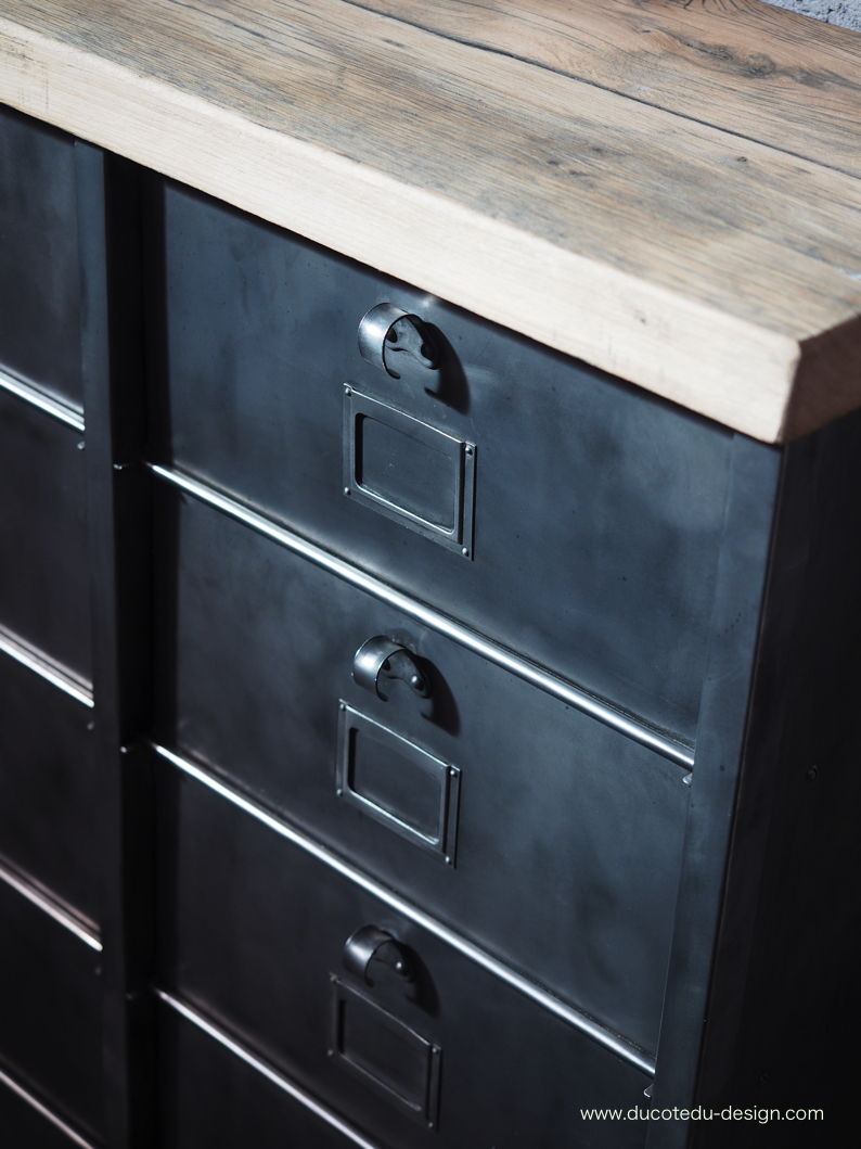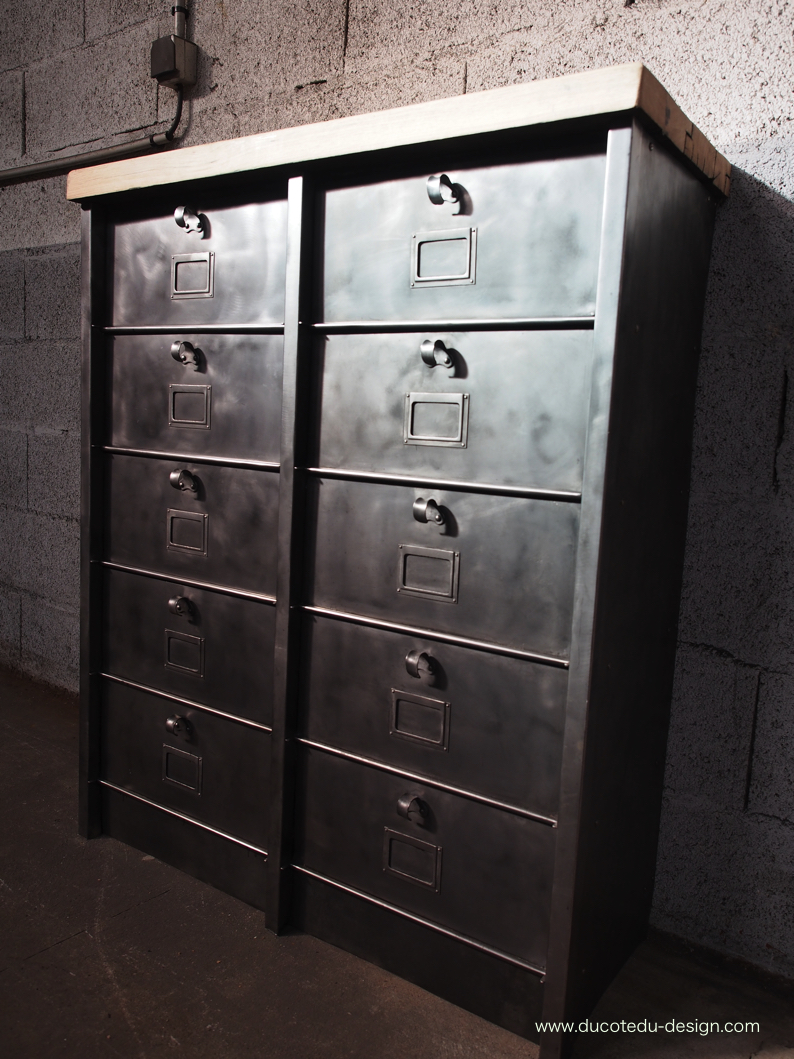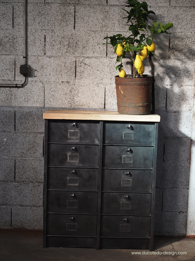 ancien grand meuble 8 casiers industriel strafor plateau chene