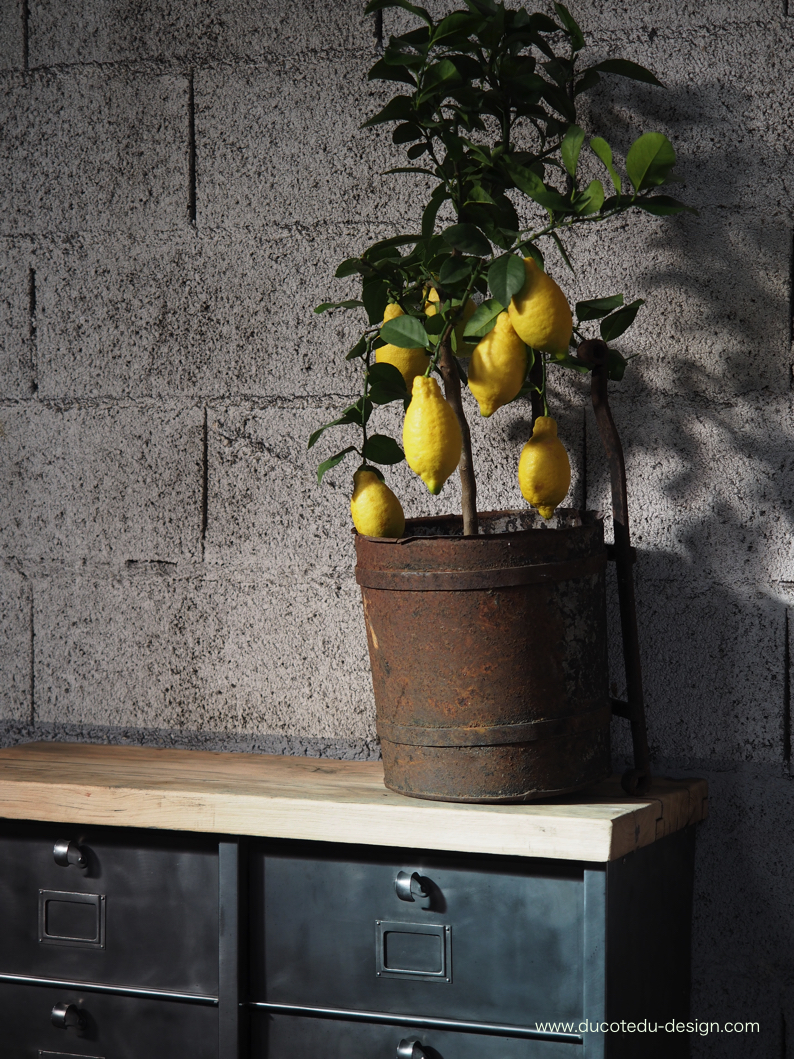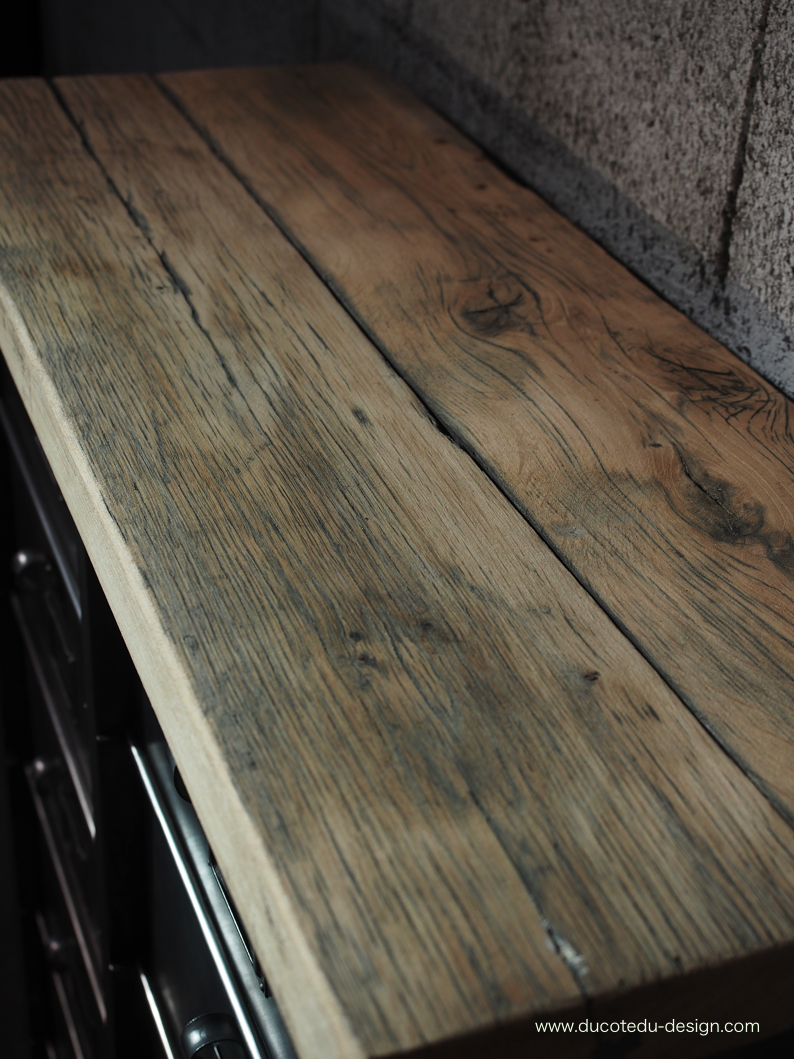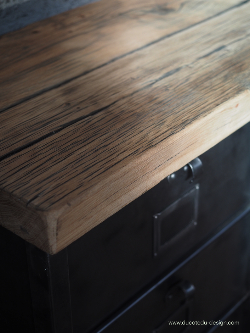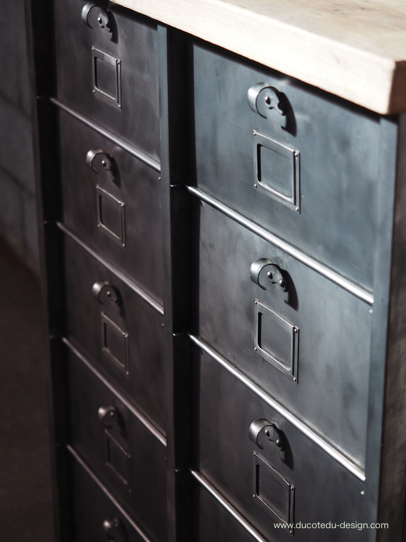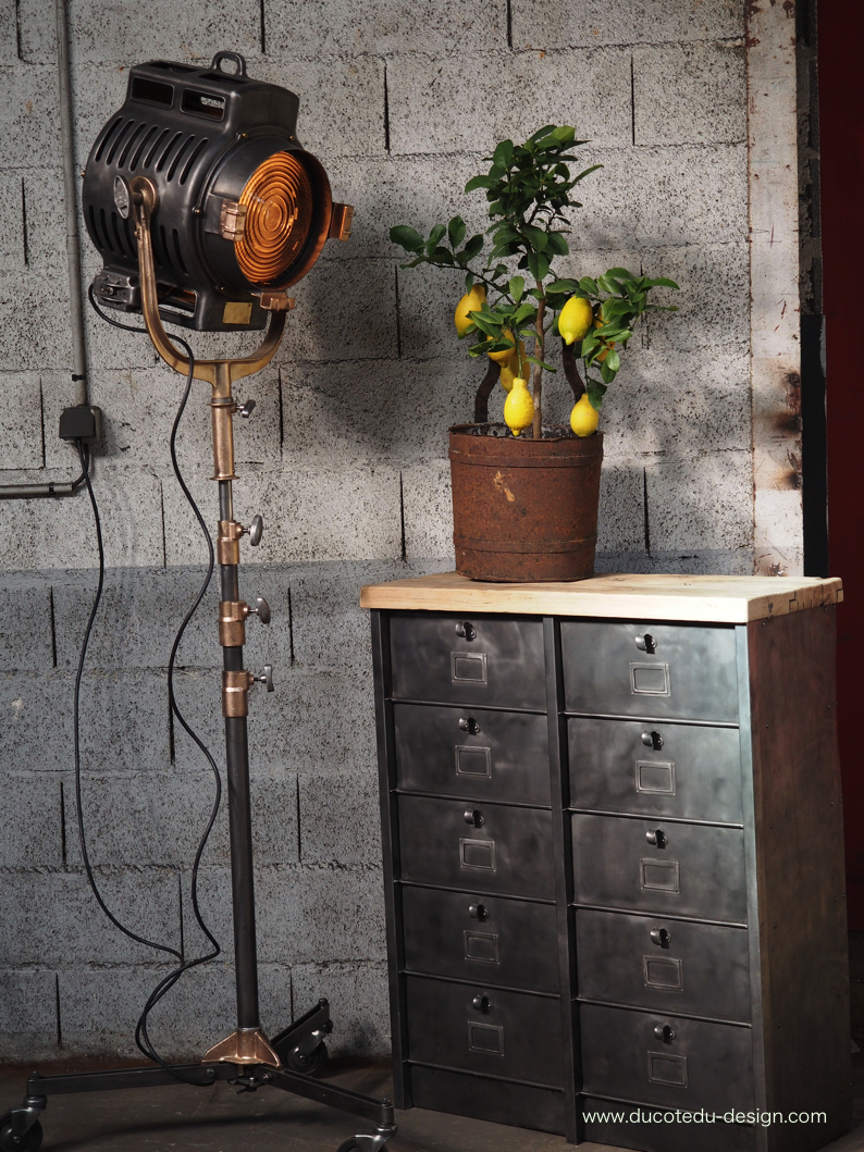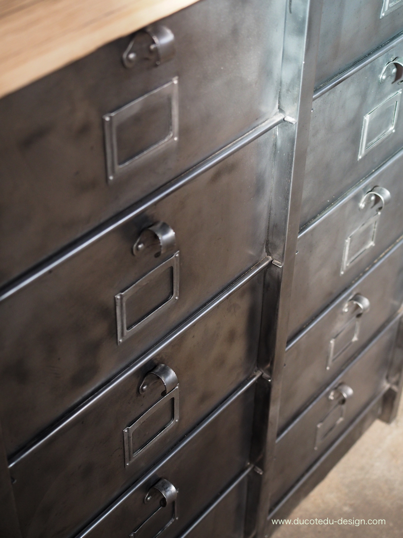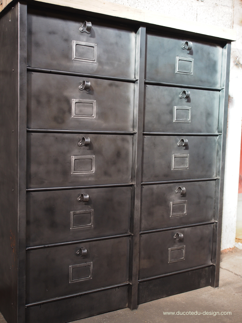 ancien grand meuble 8 casiers industriel strafor plateau chene