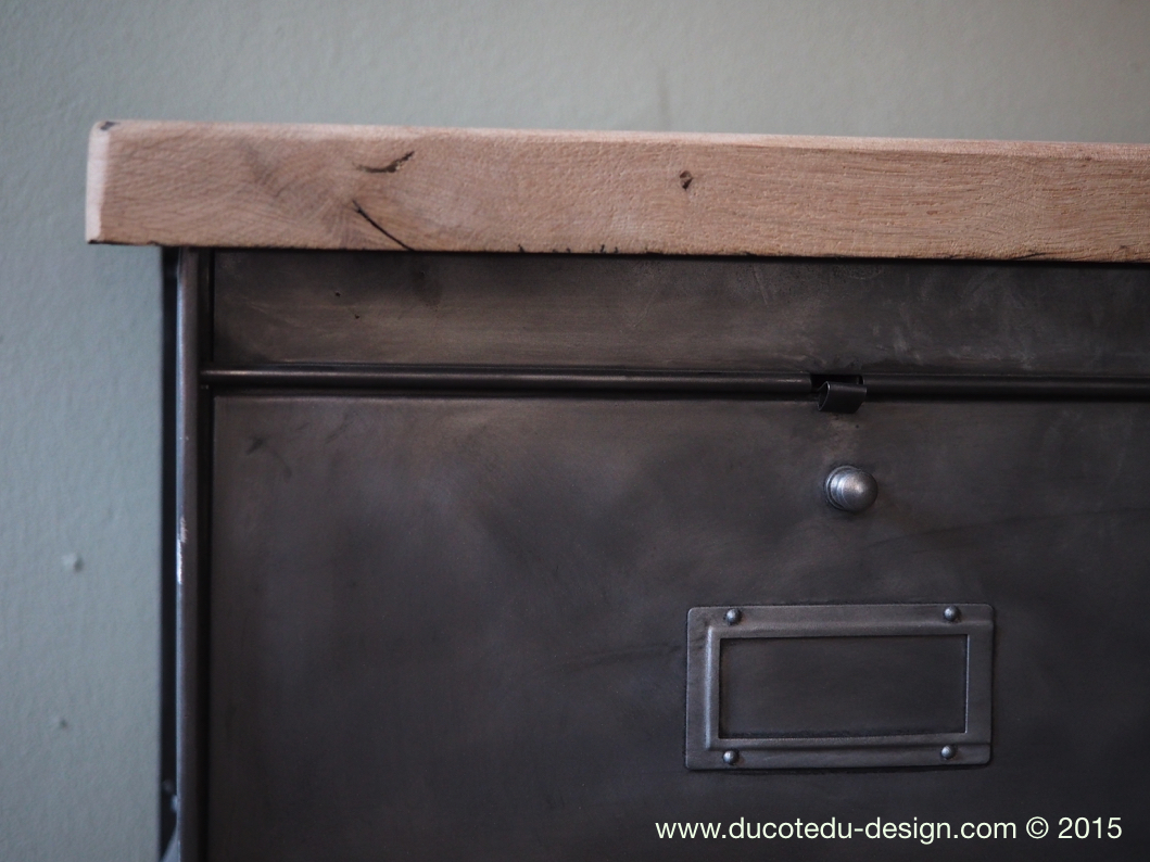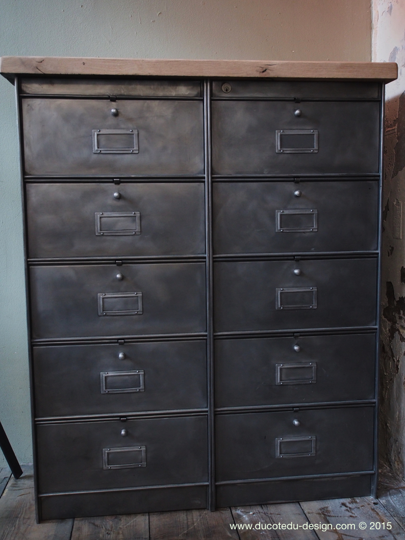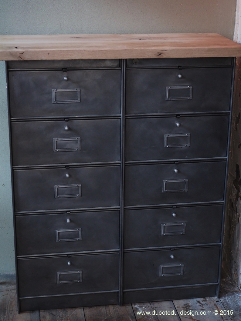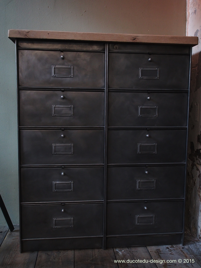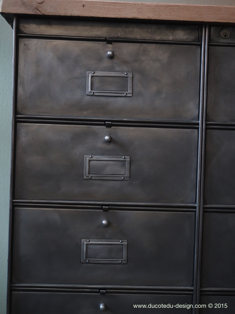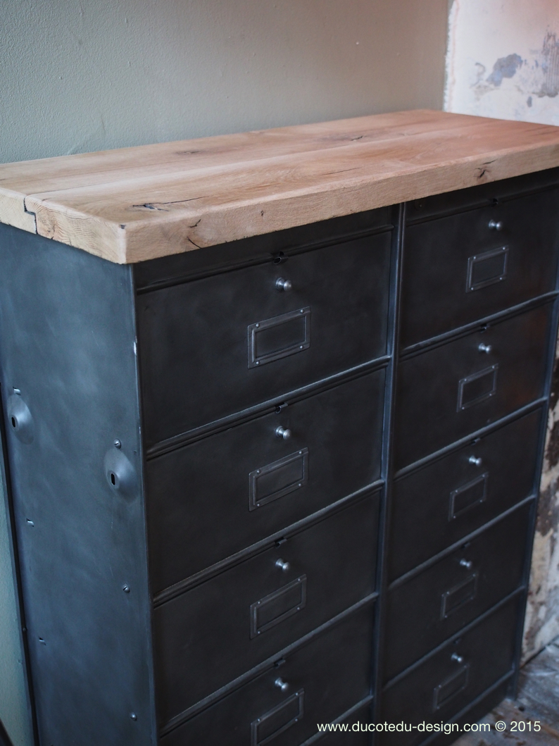 ancien meuble console 10 casiers industriel a clapet roneo 1950 plateau chene massif