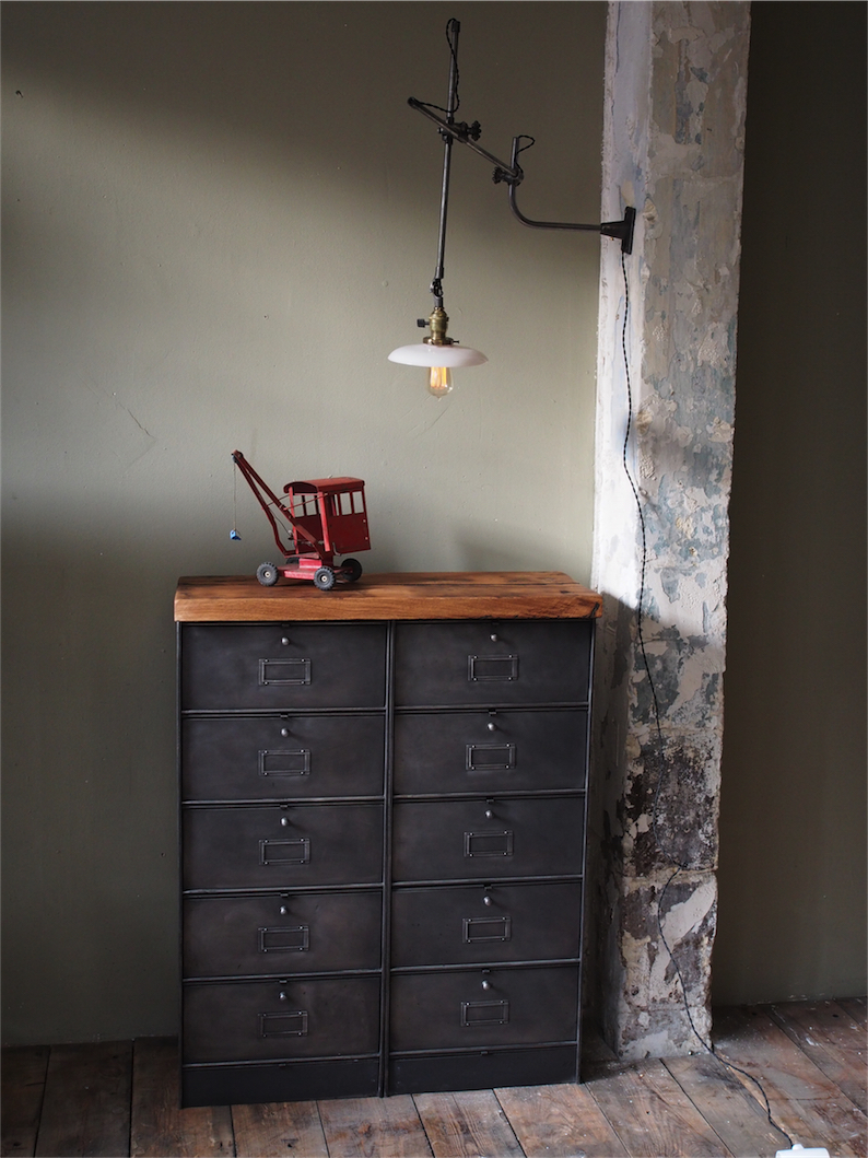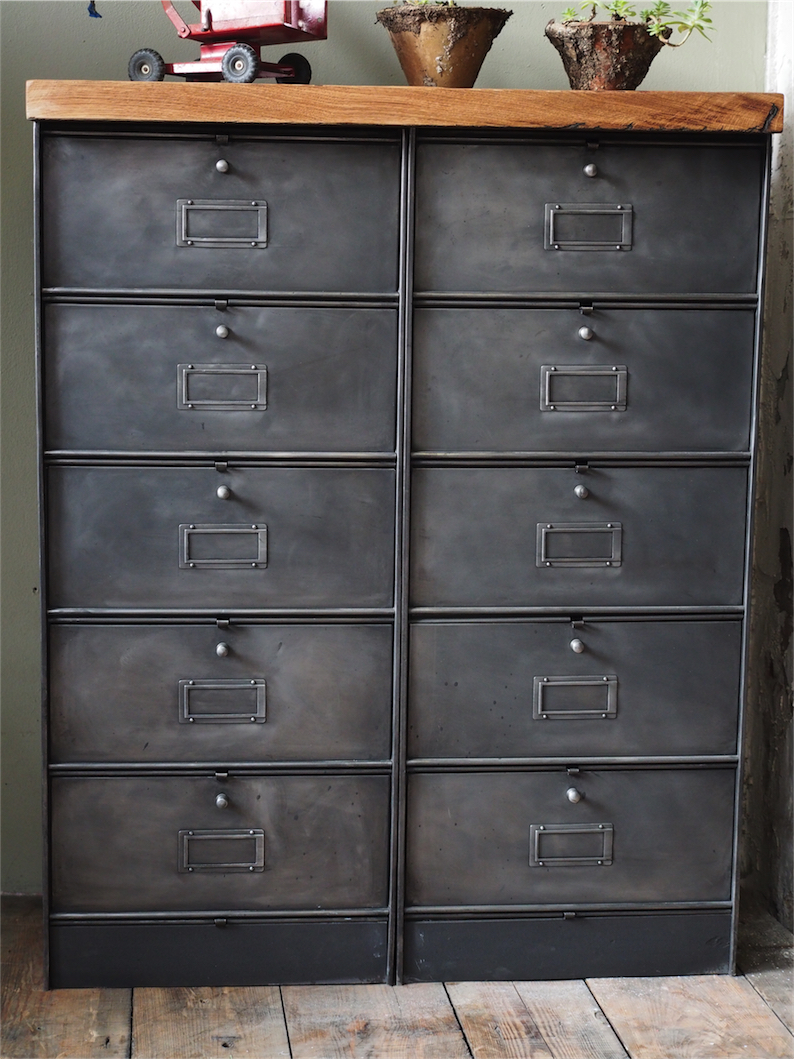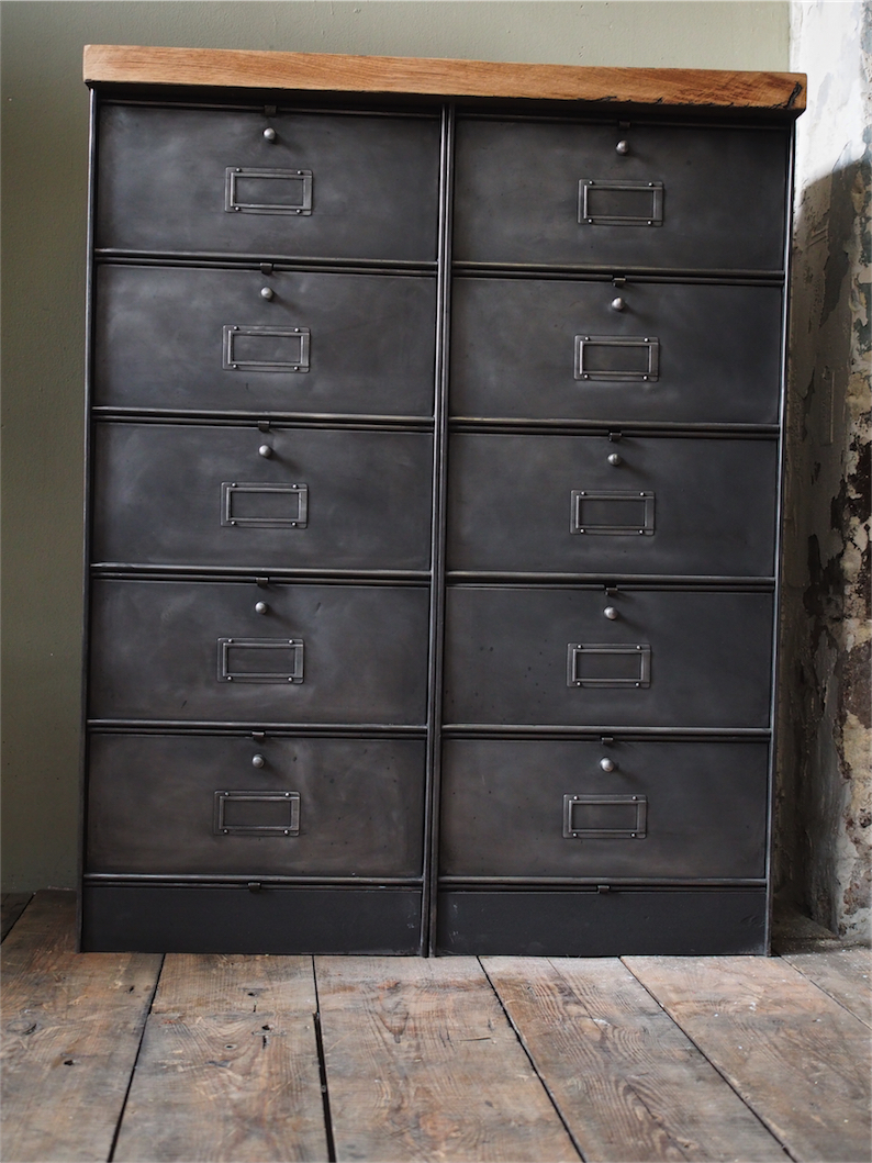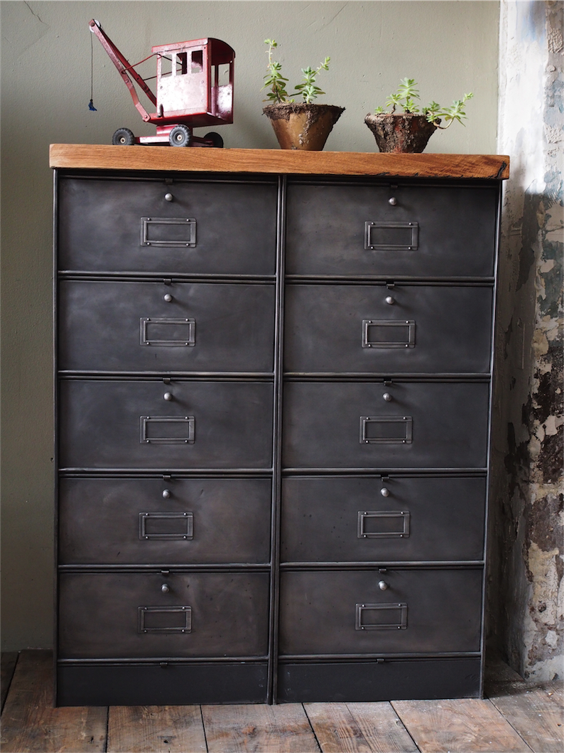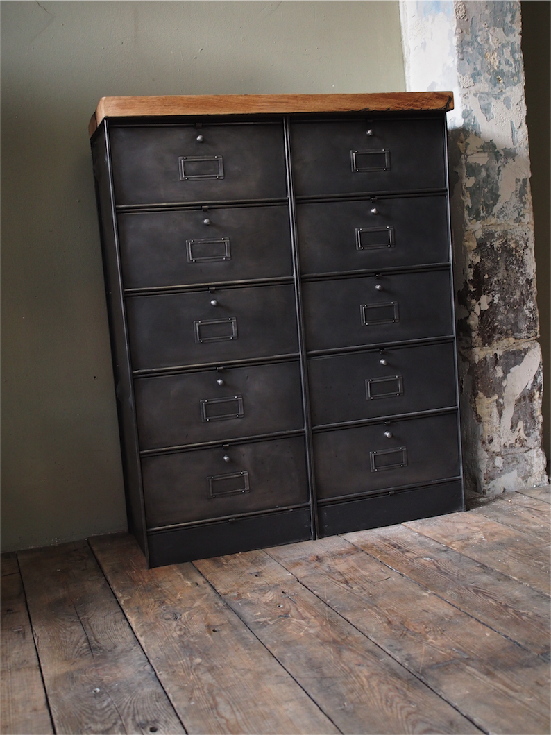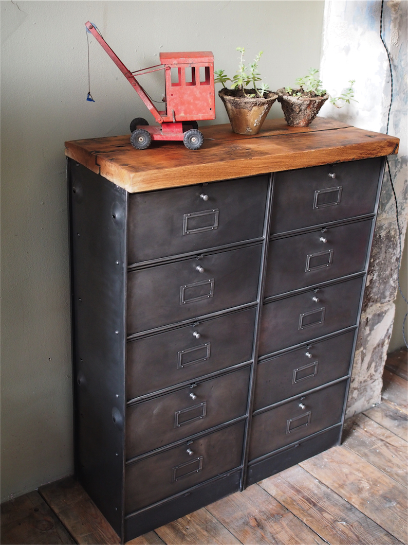 ancien meuble console 10 casiers industriel a clapet roneo 1950 plateau chene massif