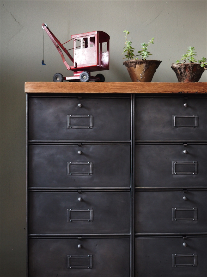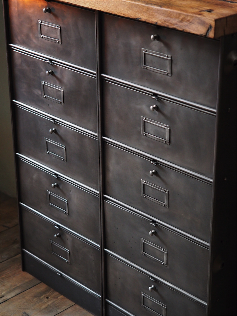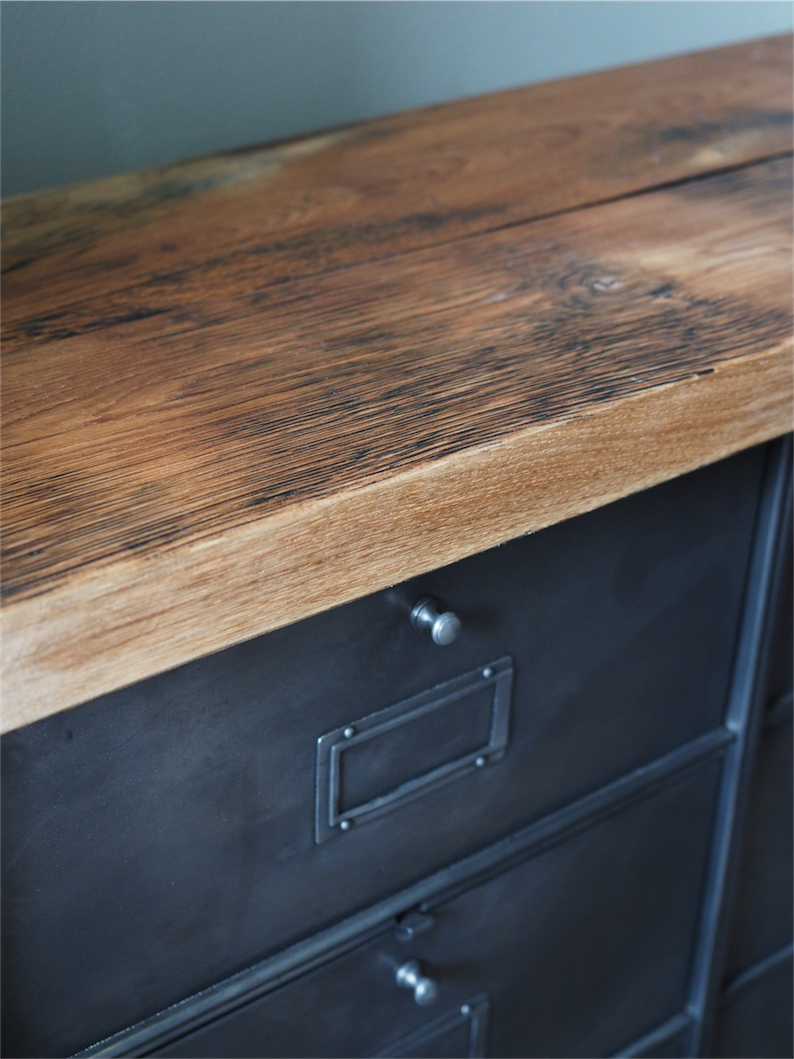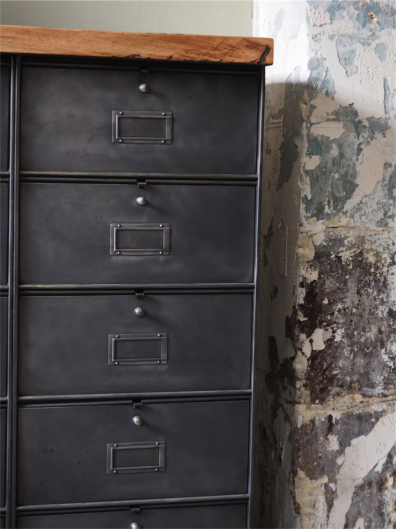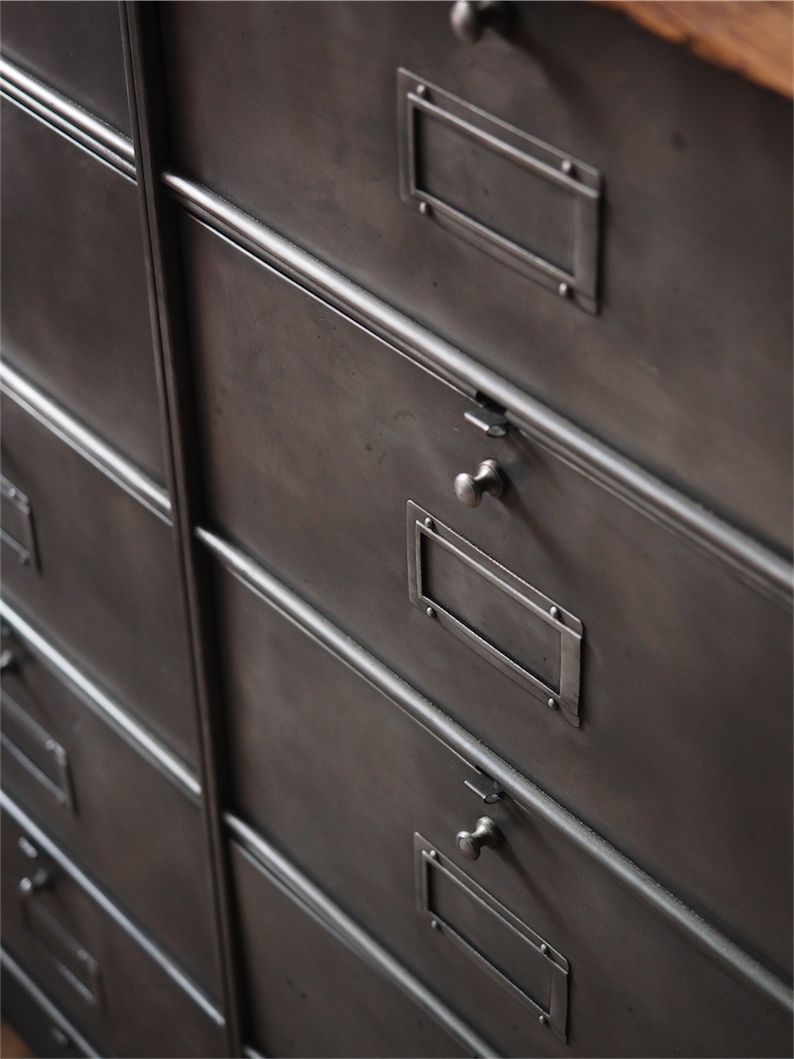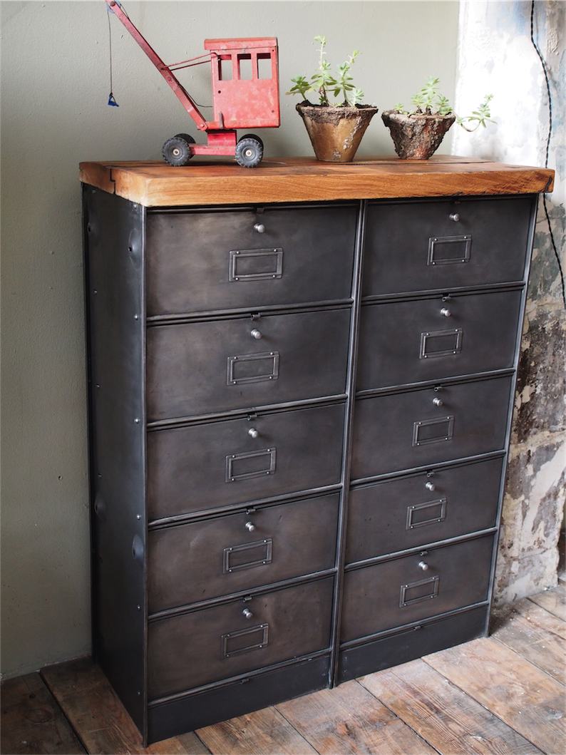 ancien meuble console 10 casiers industriel a clapet roneo 1950 plateau chene massif