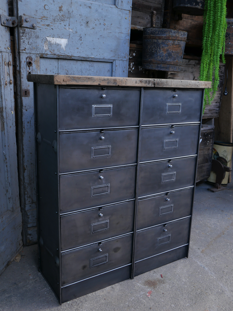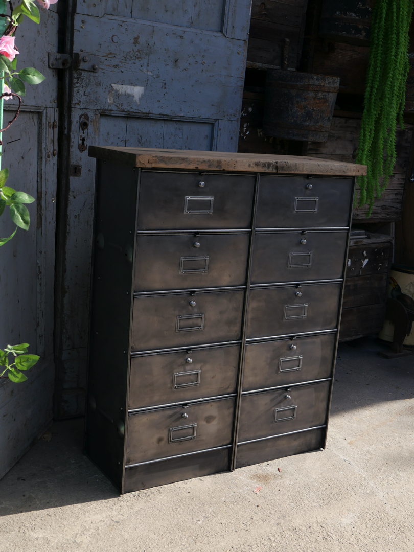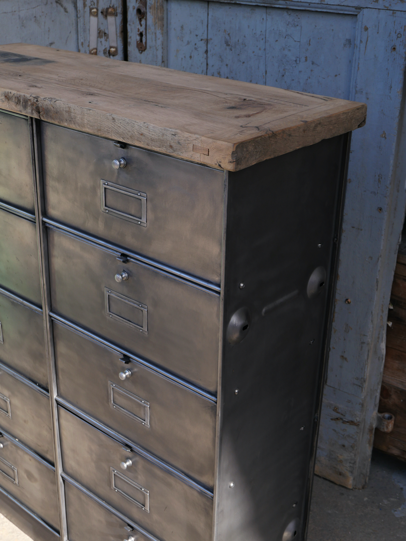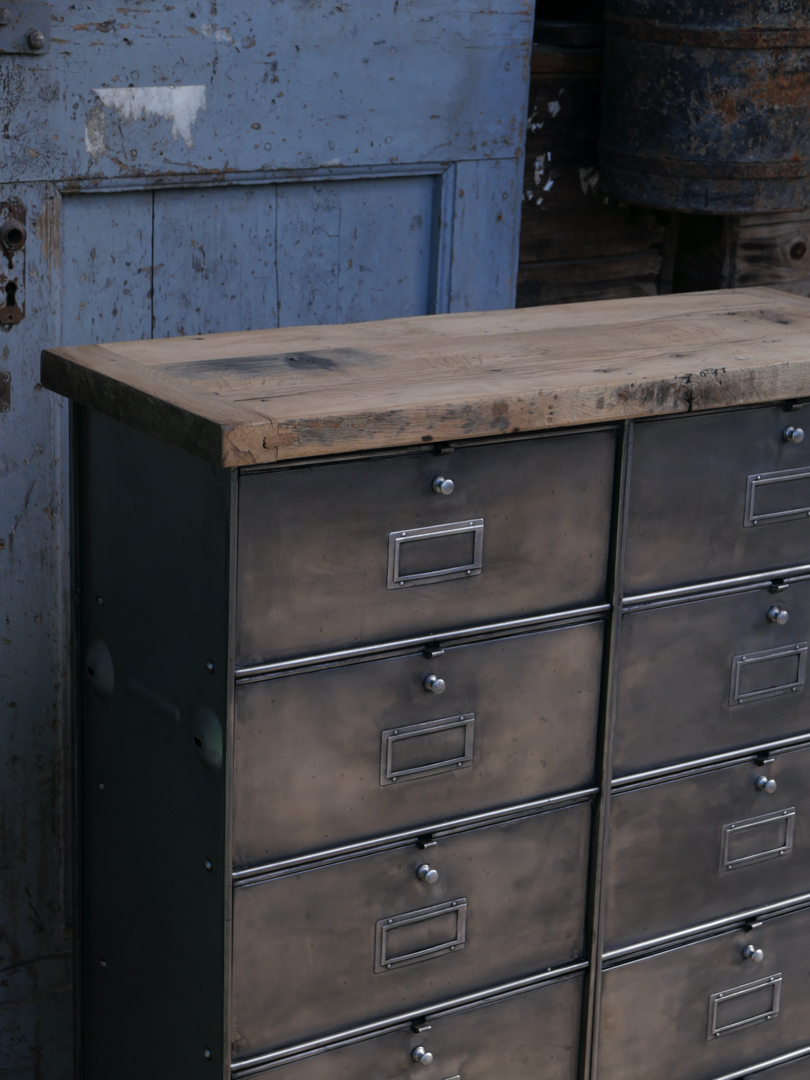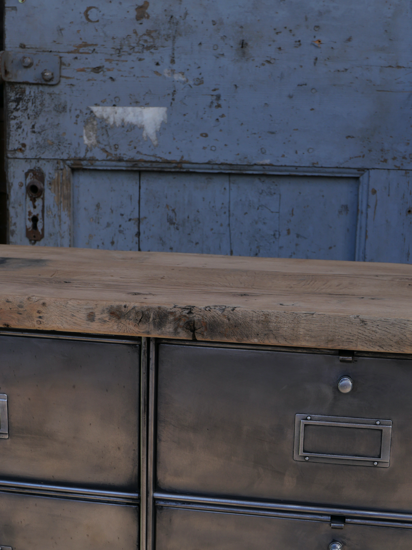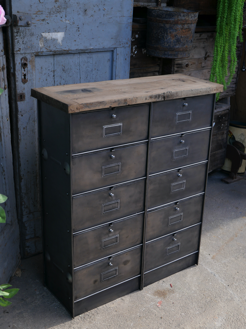 ancien meuble console 10 casiers industriel a clapet Roneo 1950 plateau chene massif