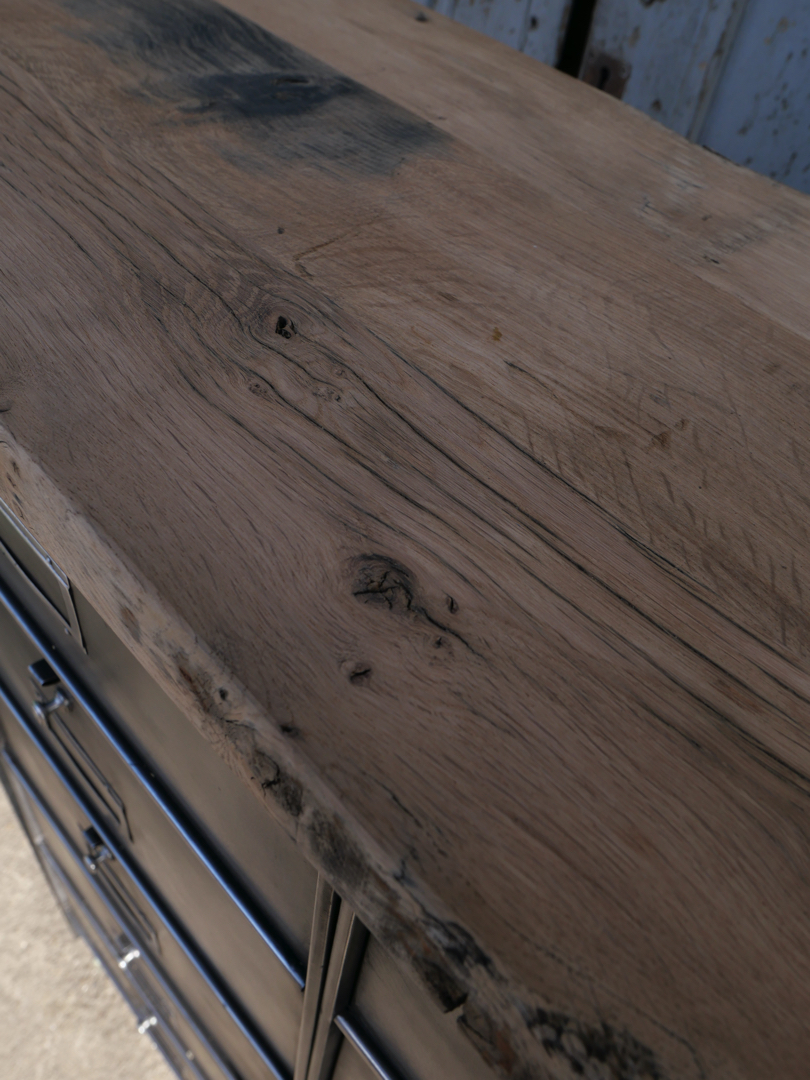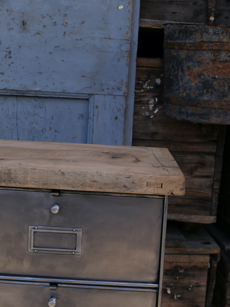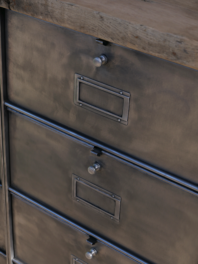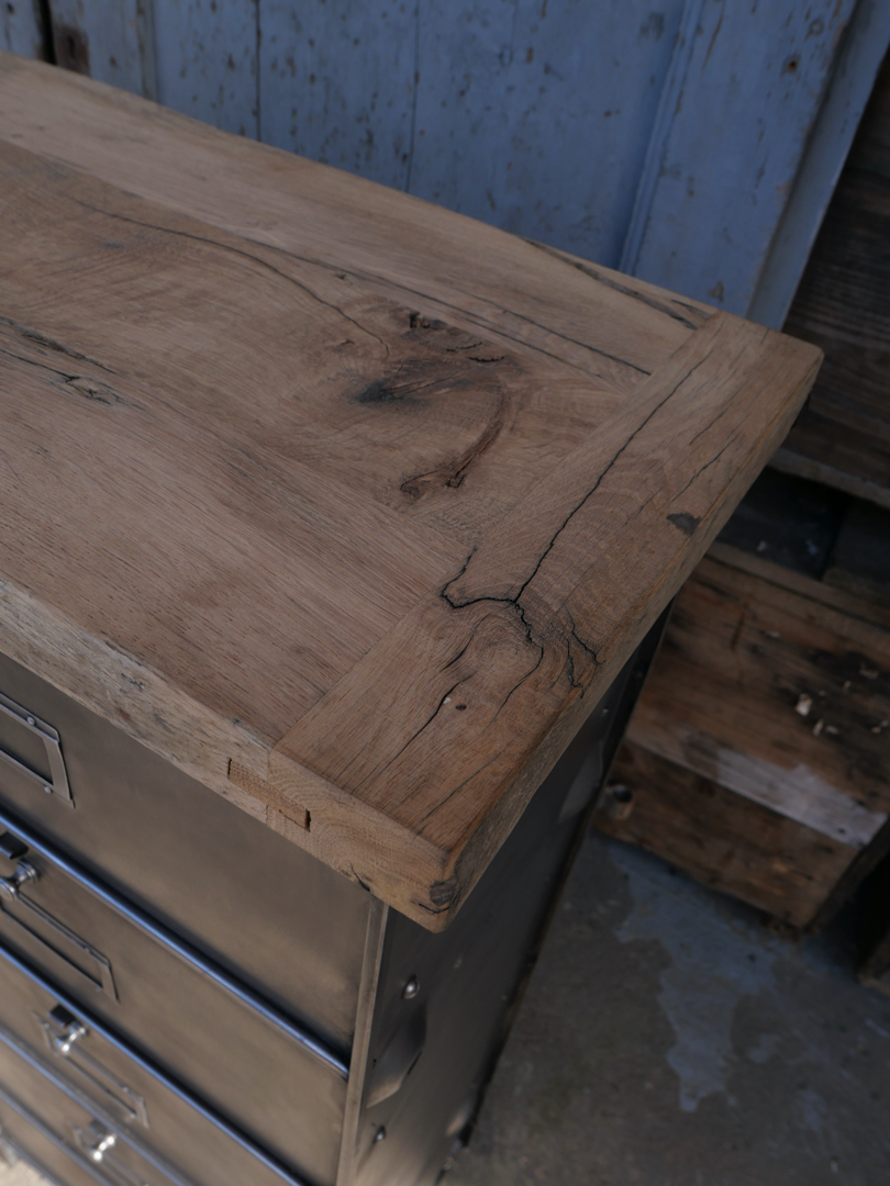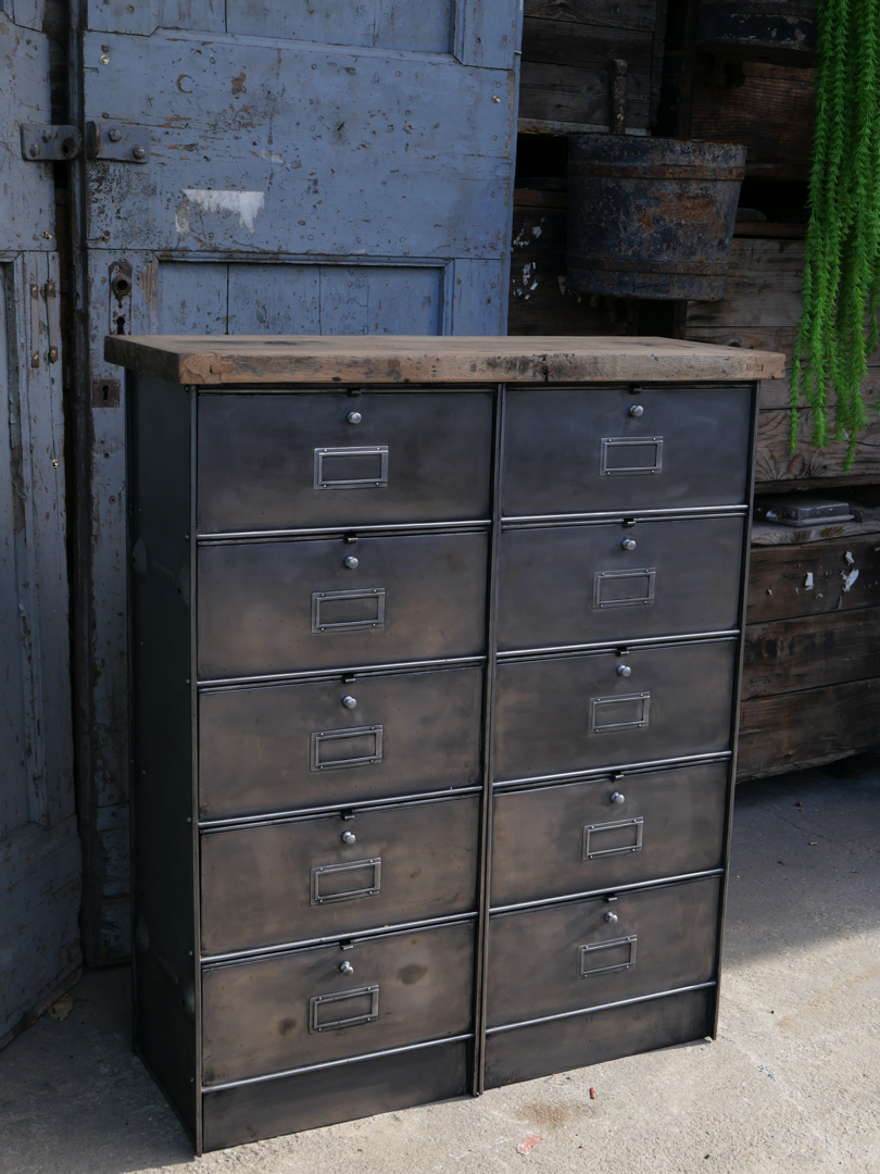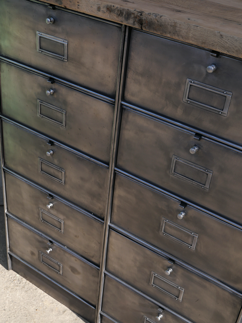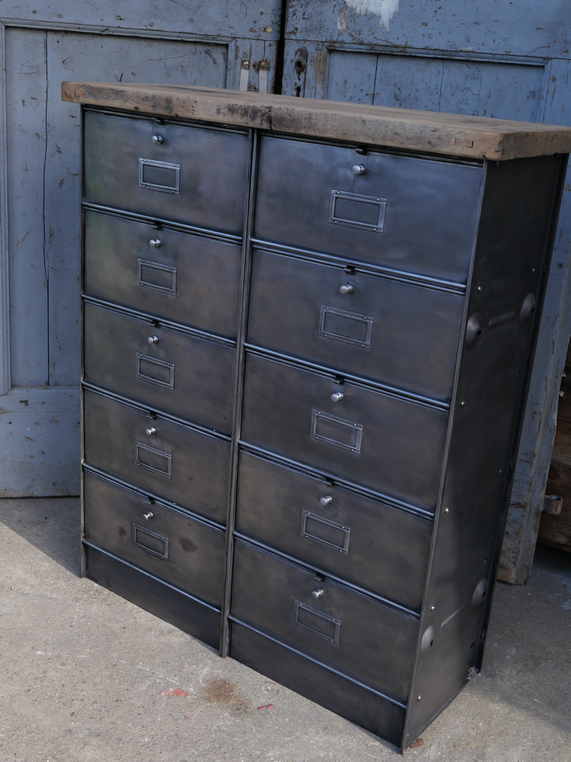 ancien meuble console 10 casiers industriel a clapet Roneo 1950 plateau chene massif