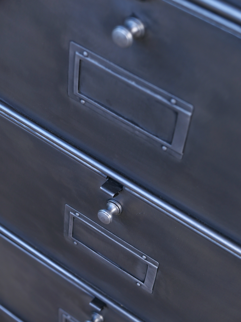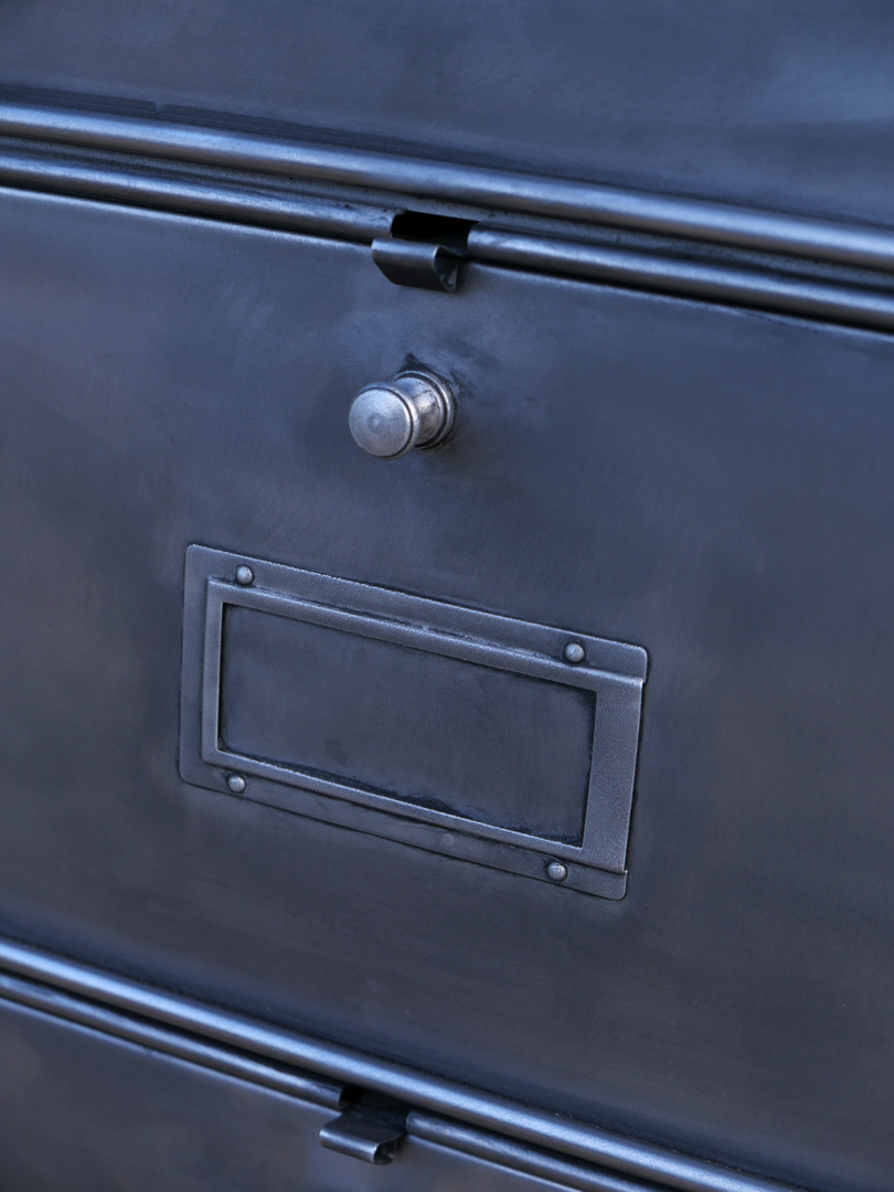 Ancien meuble industriel a clapet Roneo 10 casiers, portes etiquette et boutons plateau massif années 1950 / 1960 Mobilier ideal pour une deco industrielle meuble de rangement / tri metallique aux lignes tres pures longueur : 85cm / profondeur : 32 / hauteur : 92 cm Le metal a été décapé, teinté graphite Forfait livraison à votre domicile par transporteur