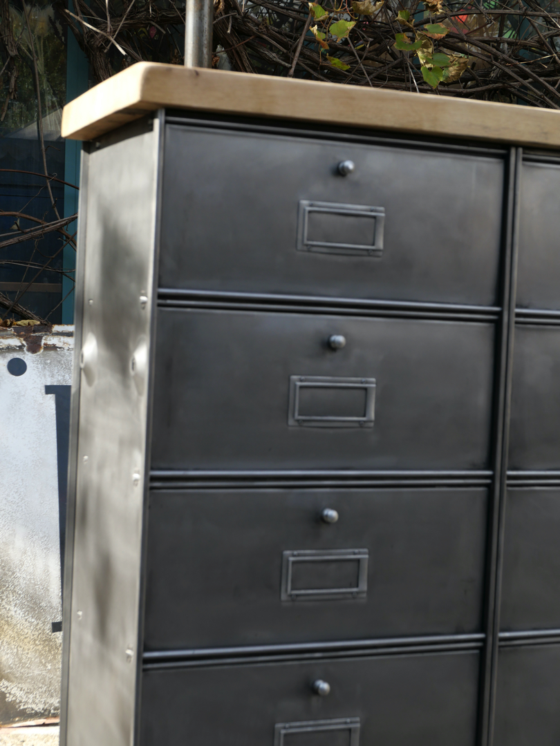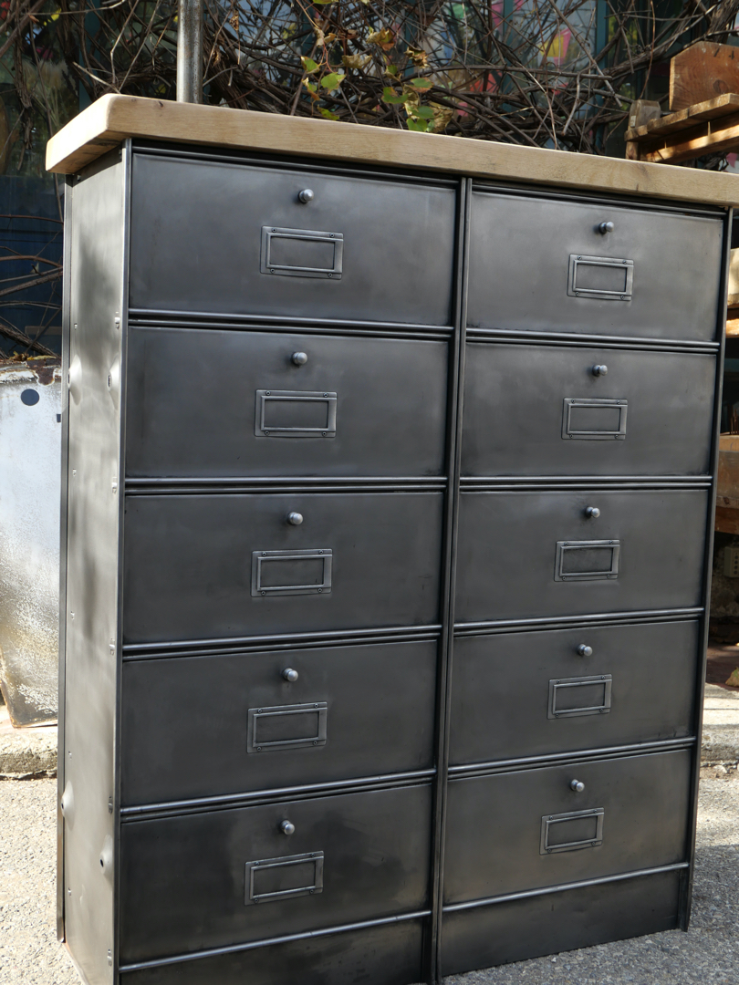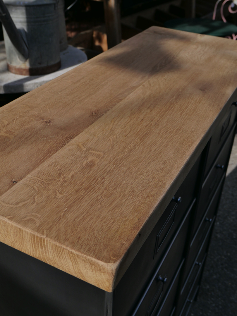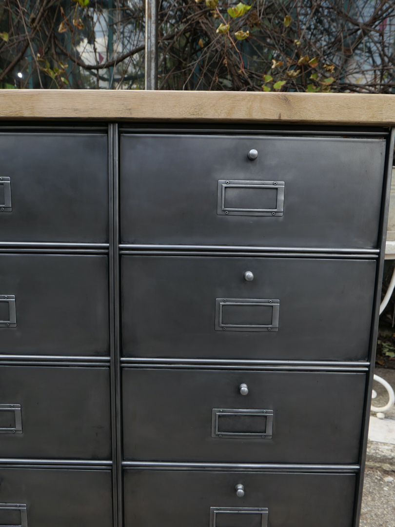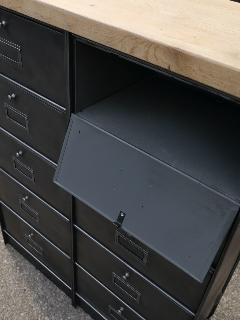 ancien meuble console 10 casiers industriel a clapet Roneo 1950 plateau chene massif