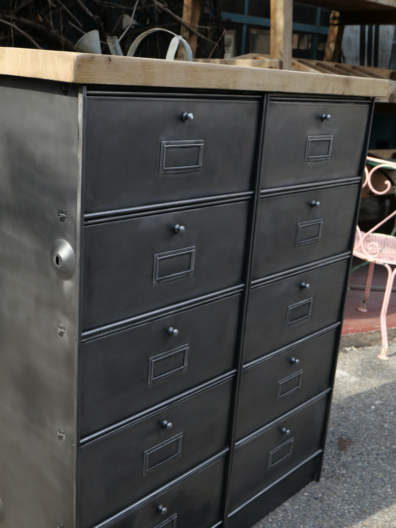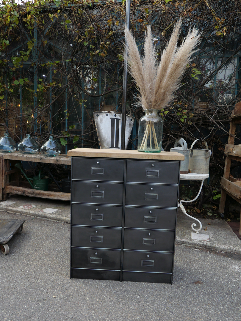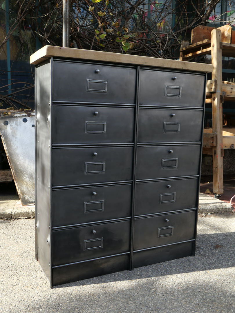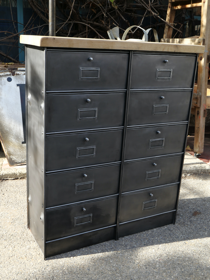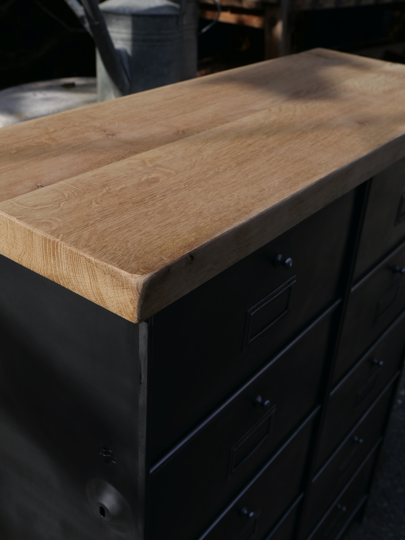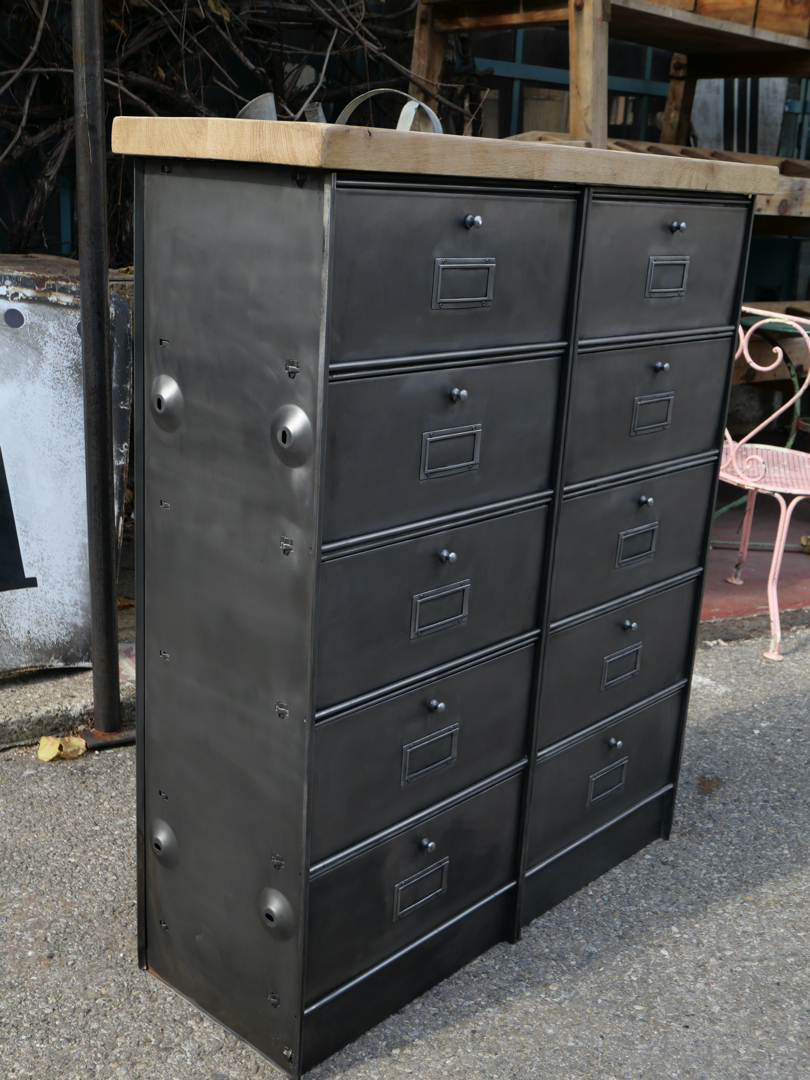 ancien meuble console 10 casiers industriel a clapet Roneo 1950 plateau chene massif