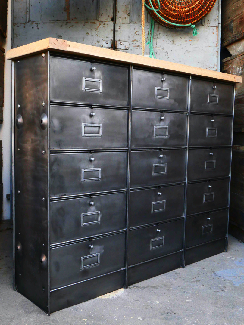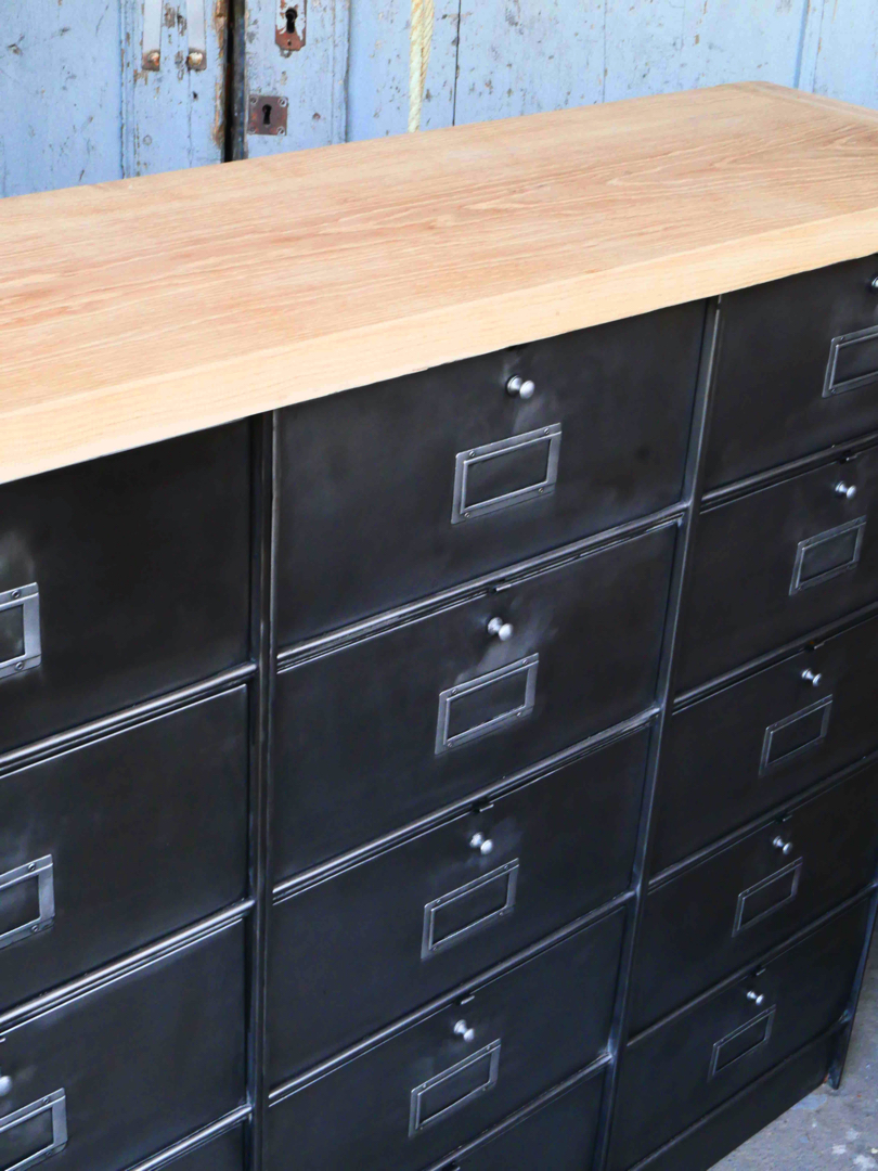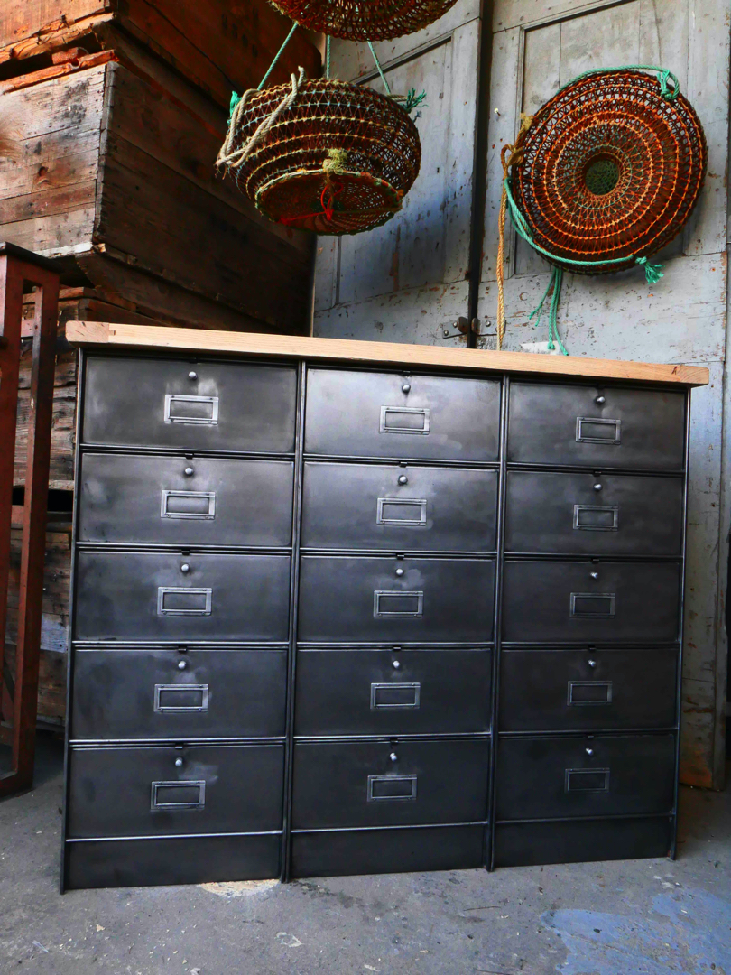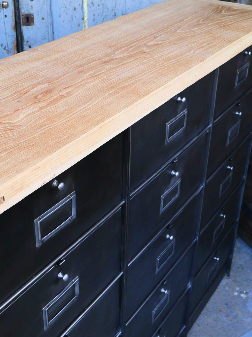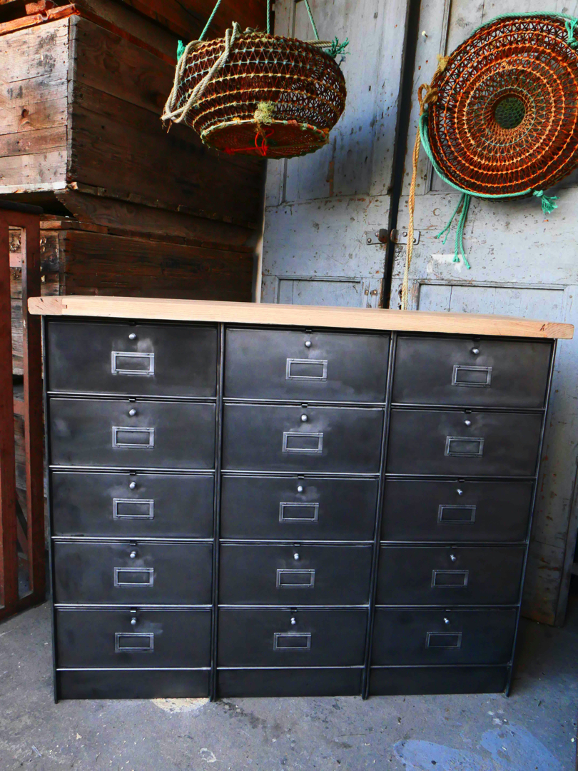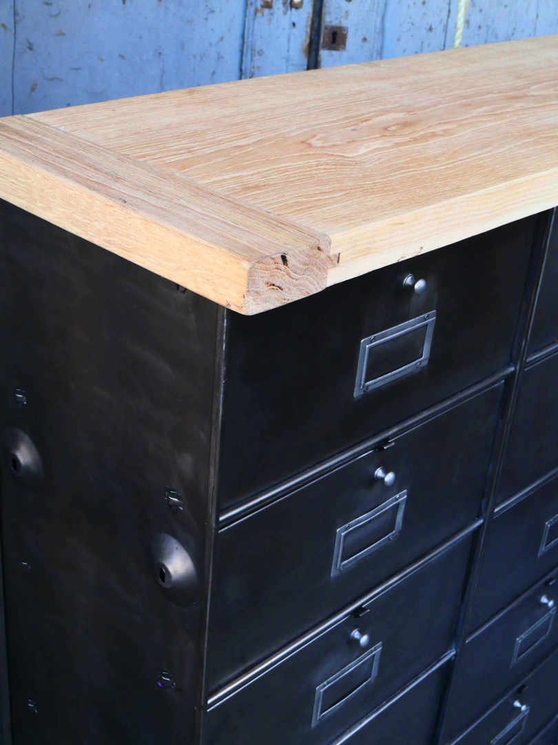 ancien meuble console 15 casiers industriel a clapet Roneo 1950 plateau chene massif