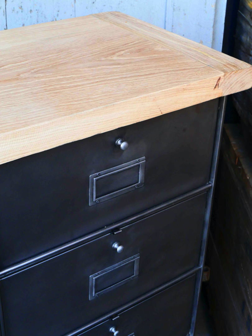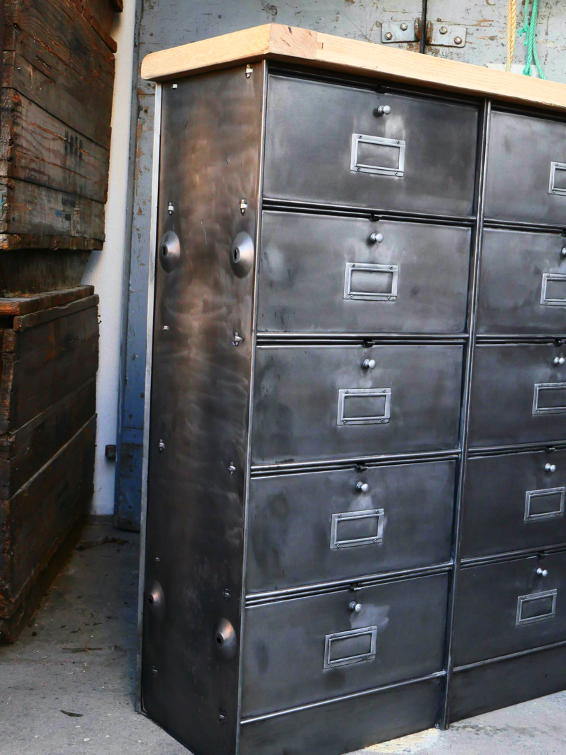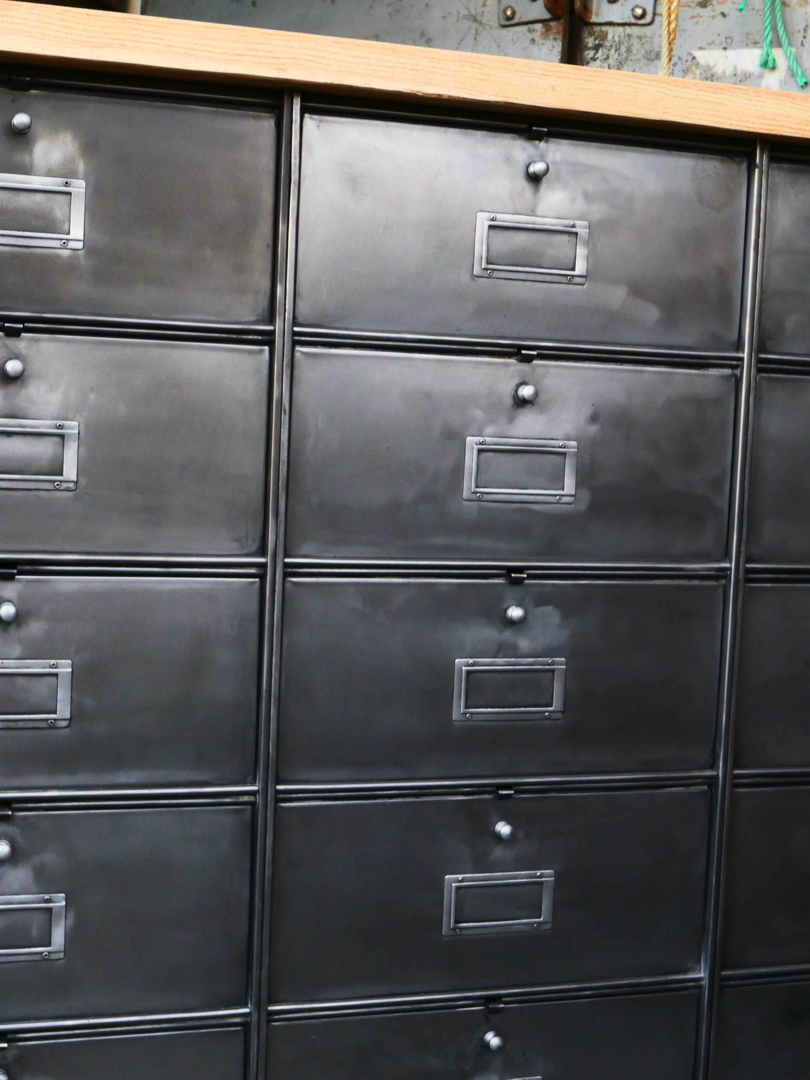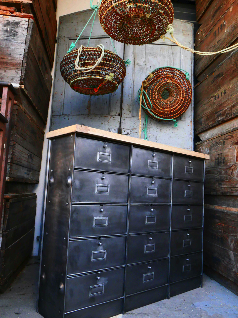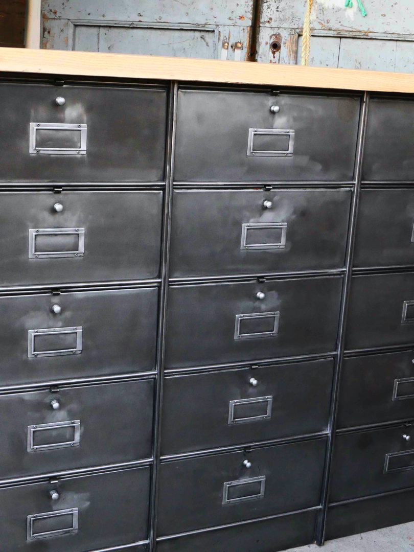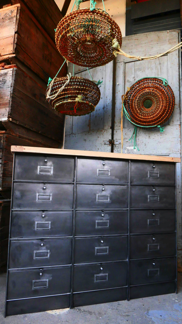 ancien meuble console 15 casiers industriel a clapet Roneo 1950 plateau chene massif