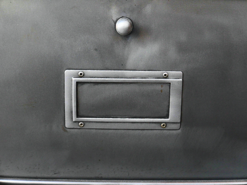 Ancien meuble industriel a clapet Roneo 15 casiers, portes etiquette et boutons plateau massif années 1950 / 1960 Mobilier ideal pour une deco industrielle meuble de rangement / tri metallique aux lignes tres pures longueur : 130 cm / profondeur : 32 / hauteur : 109 cm Le metal a été décapé, teinté graphite et traité contre la corrosion Forfait livraison à votre domicile par transporteur