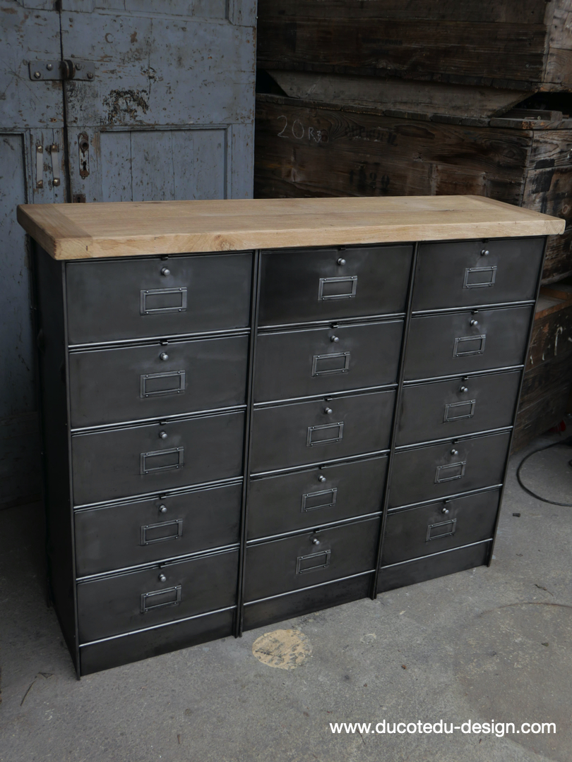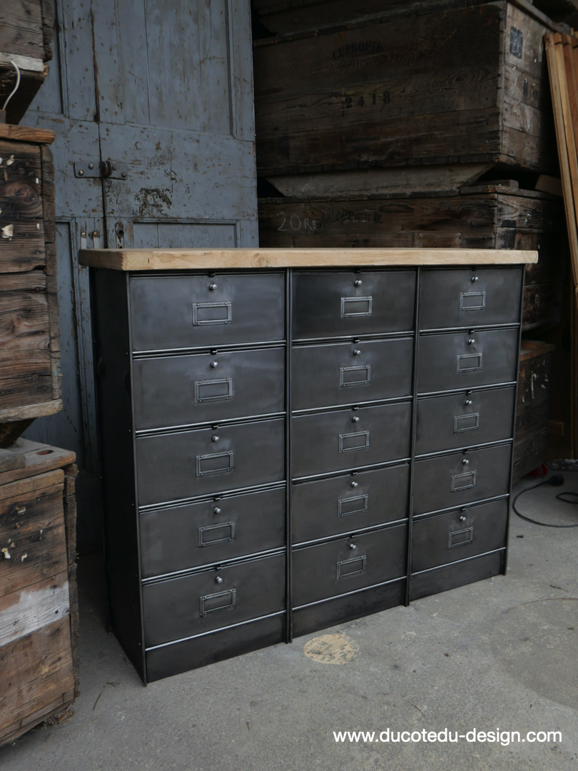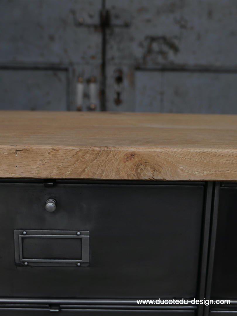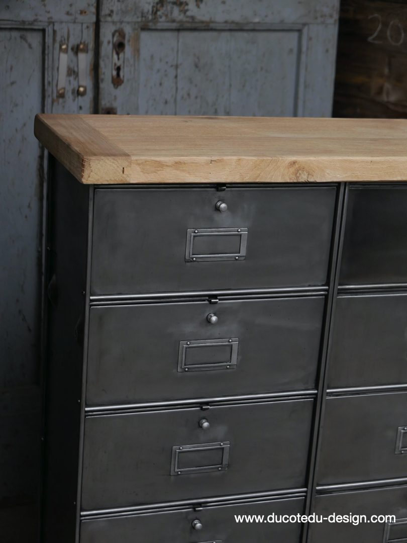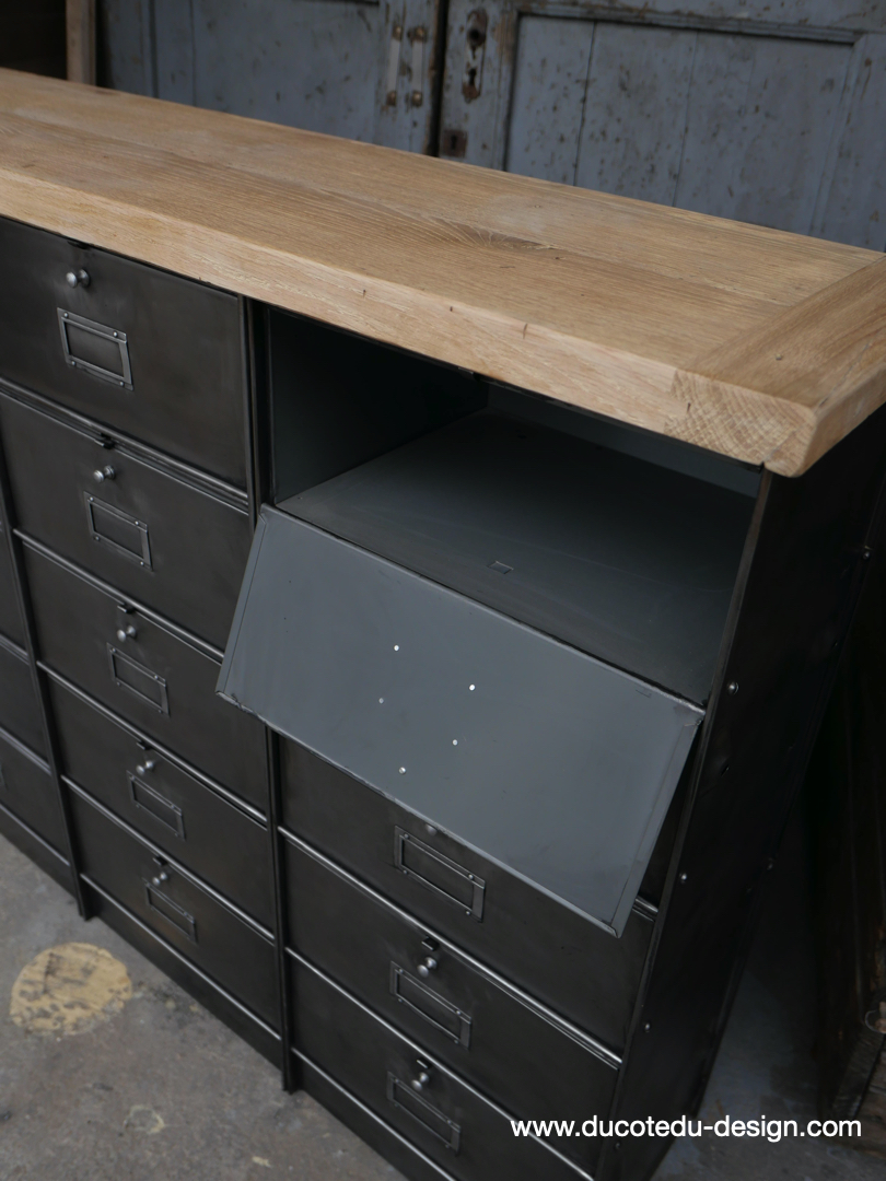 ancien meuble console 15 casiers industriel a clapet Roneo 1950 plateau chene massif