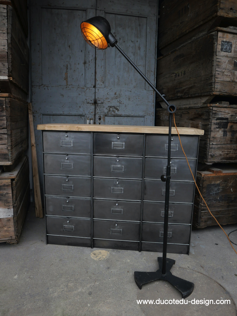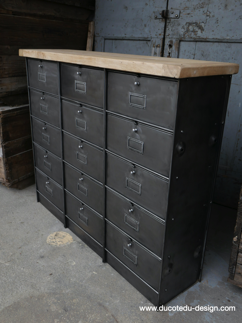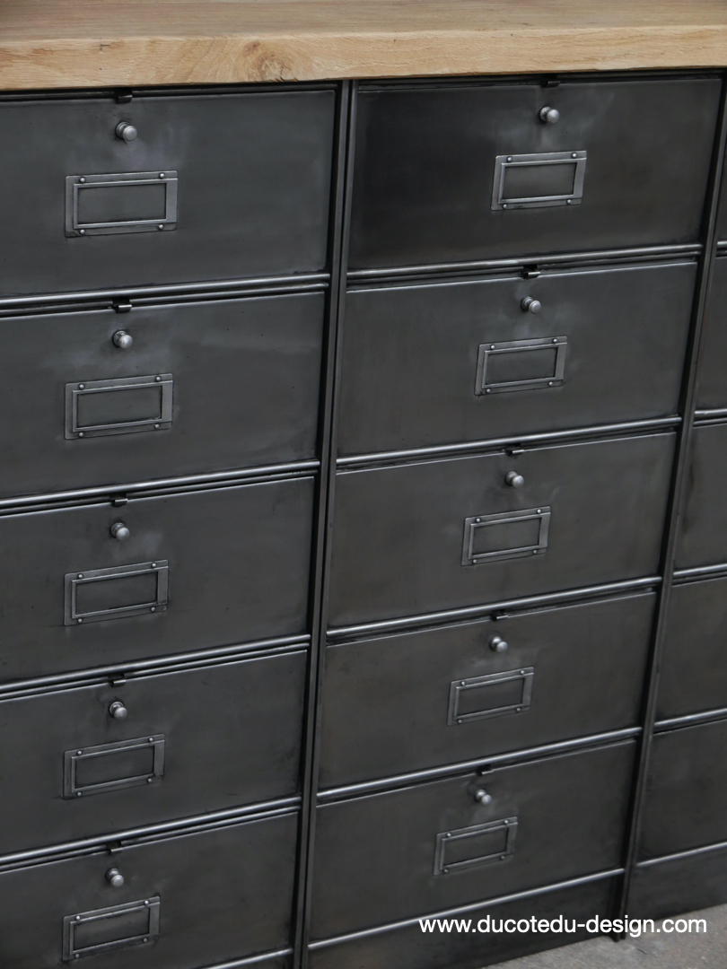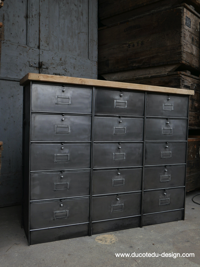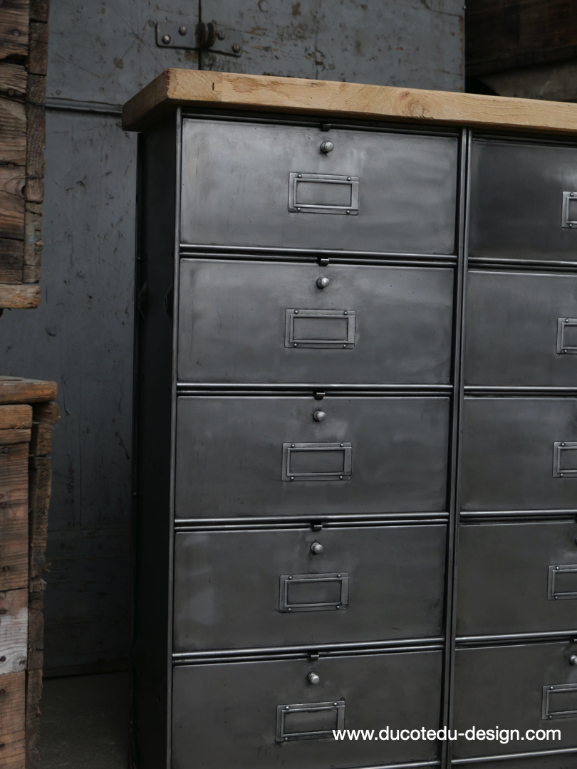 ancien meuble console 15 casiers industriel a clapet Roneo 1950 plateau chene massif