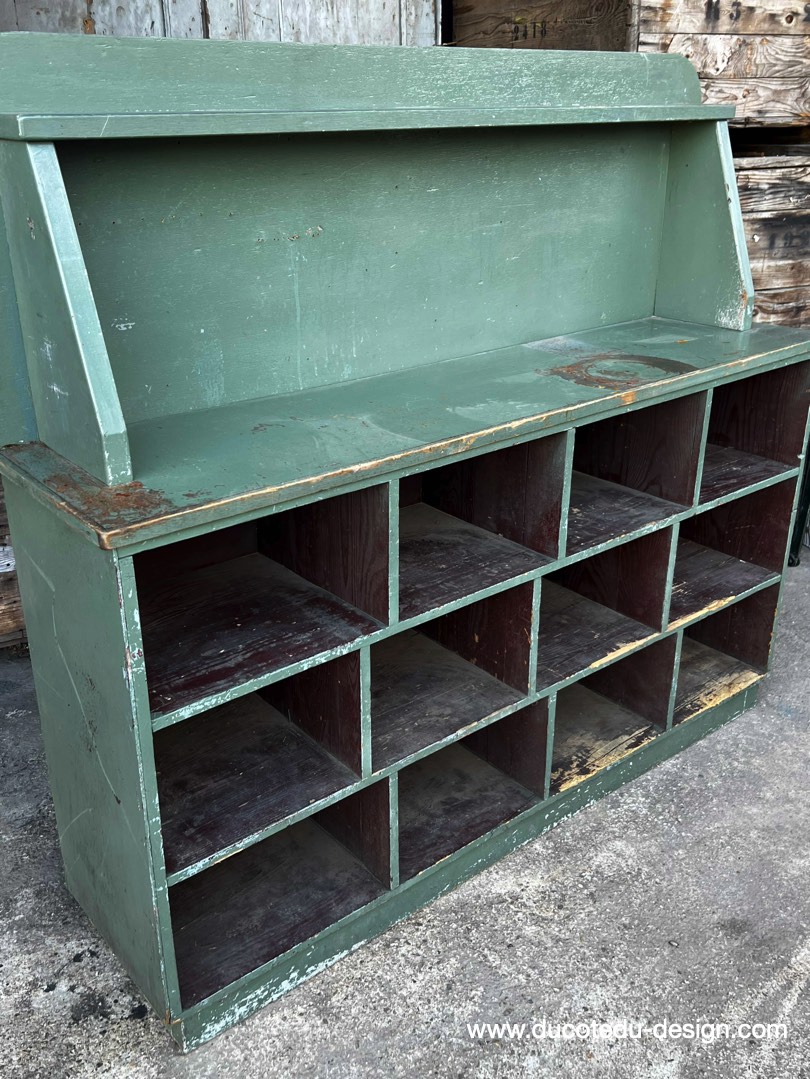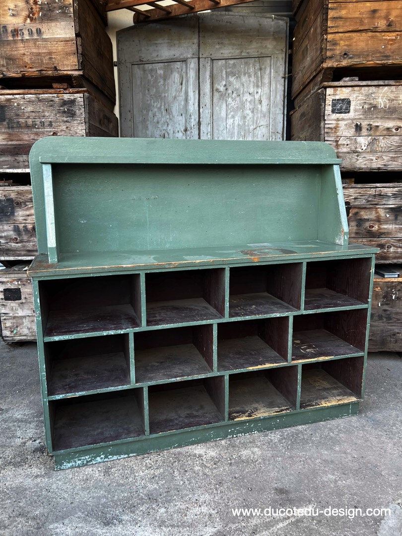 Ancien meuble industriel a casier en bois patine d origine Forfait livraison à votre domicile par transporteur