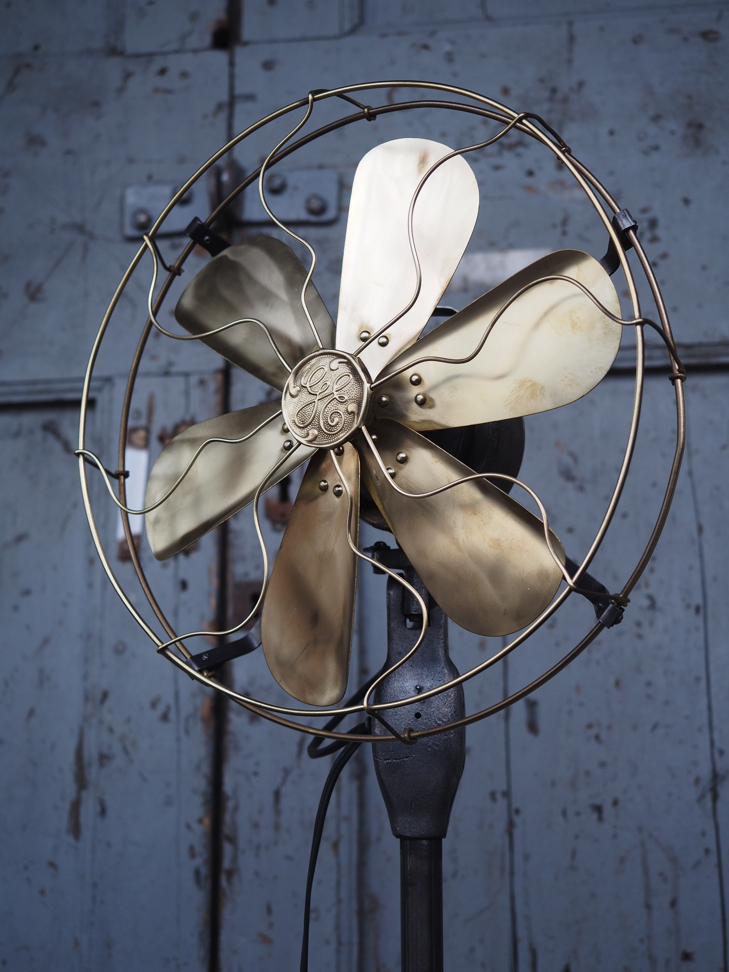 ancien ventilateur general electric industriel 1920 USA sur pied