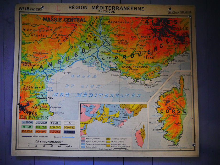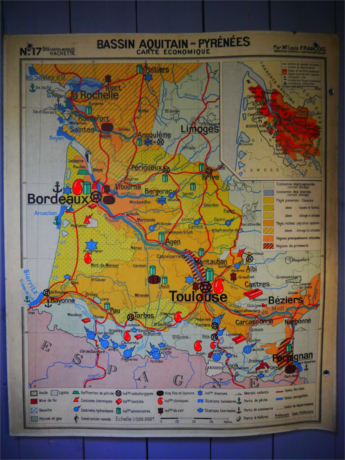 ancienne affiche scolaire région mediterranéenne – Bassin aquitain pyrenées – France