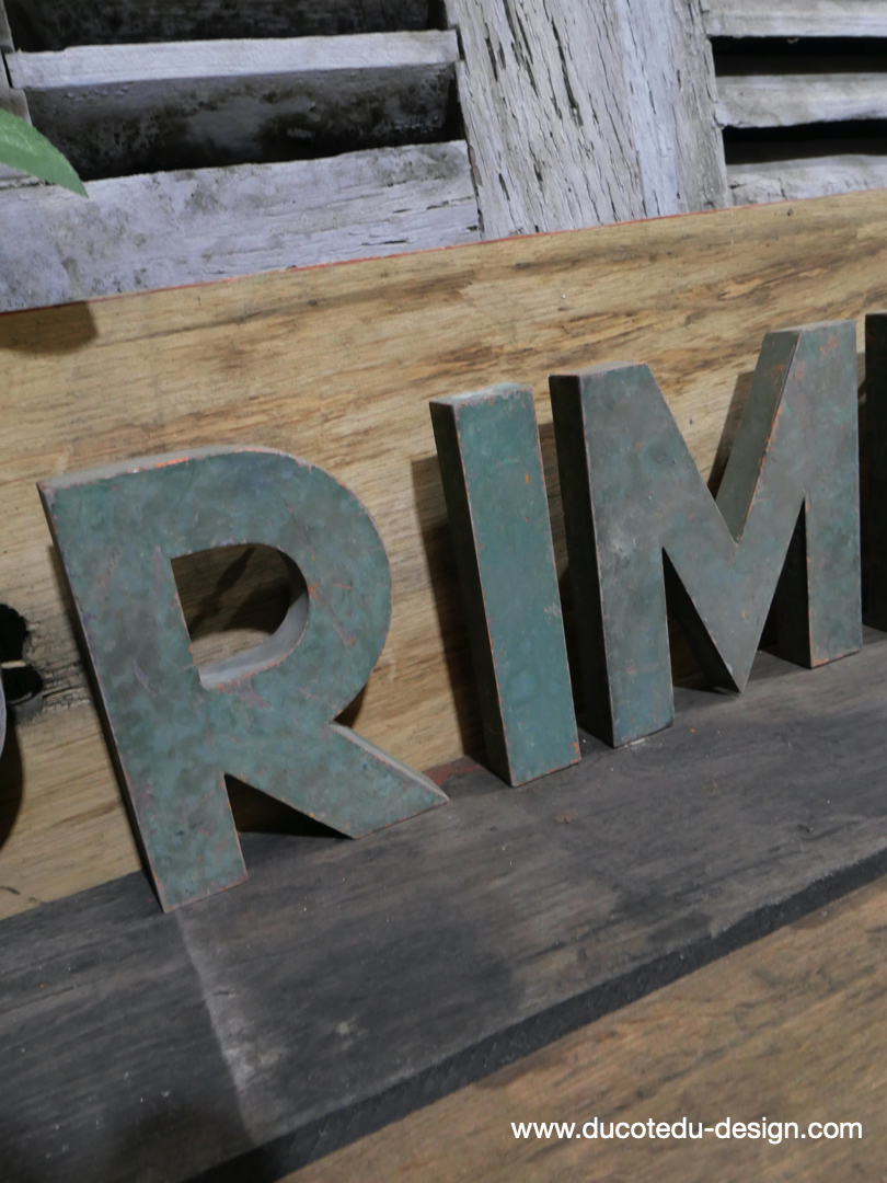 Anciennes lettres d'enseigne Primeur hauteur des lettres 15 cm dim du E: 15 / 10 cm