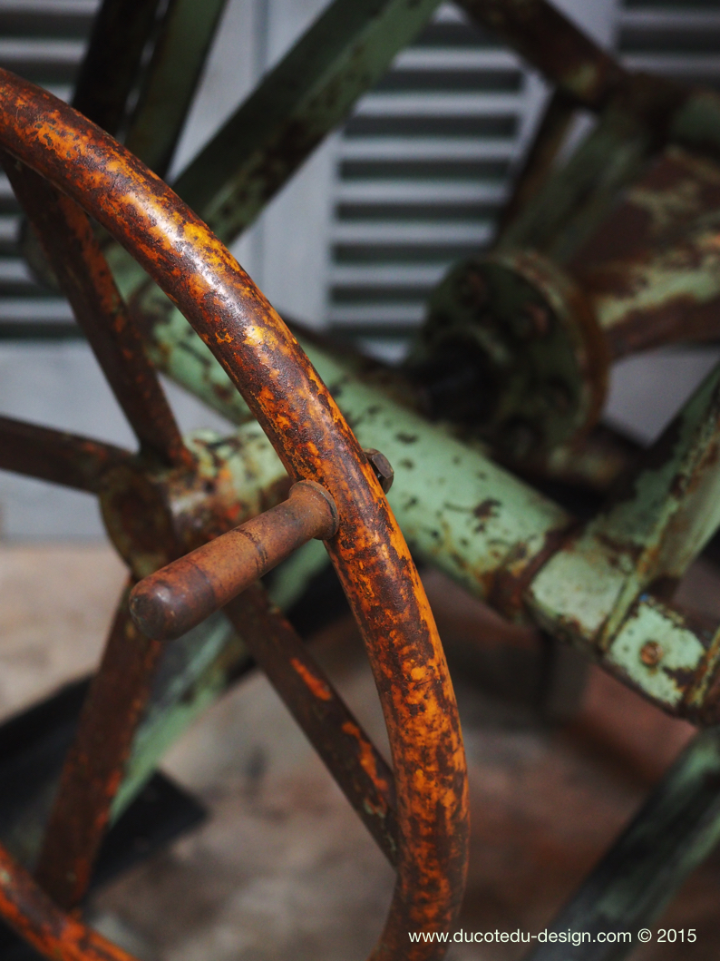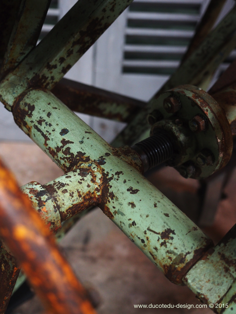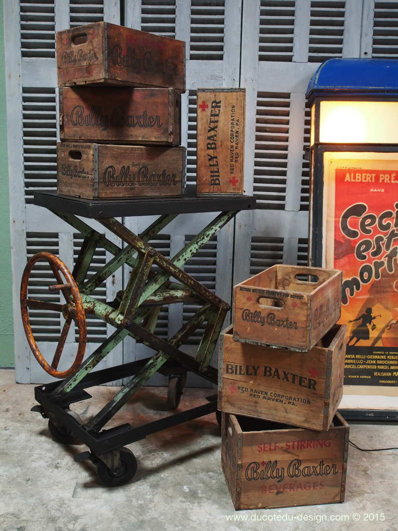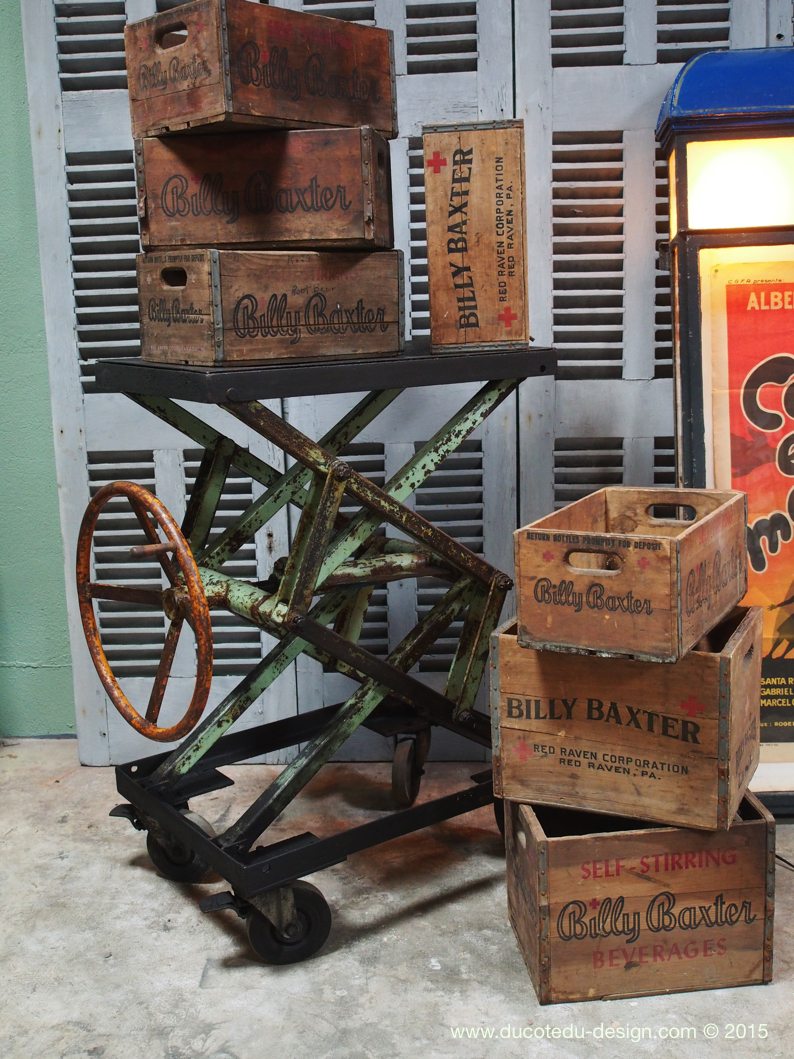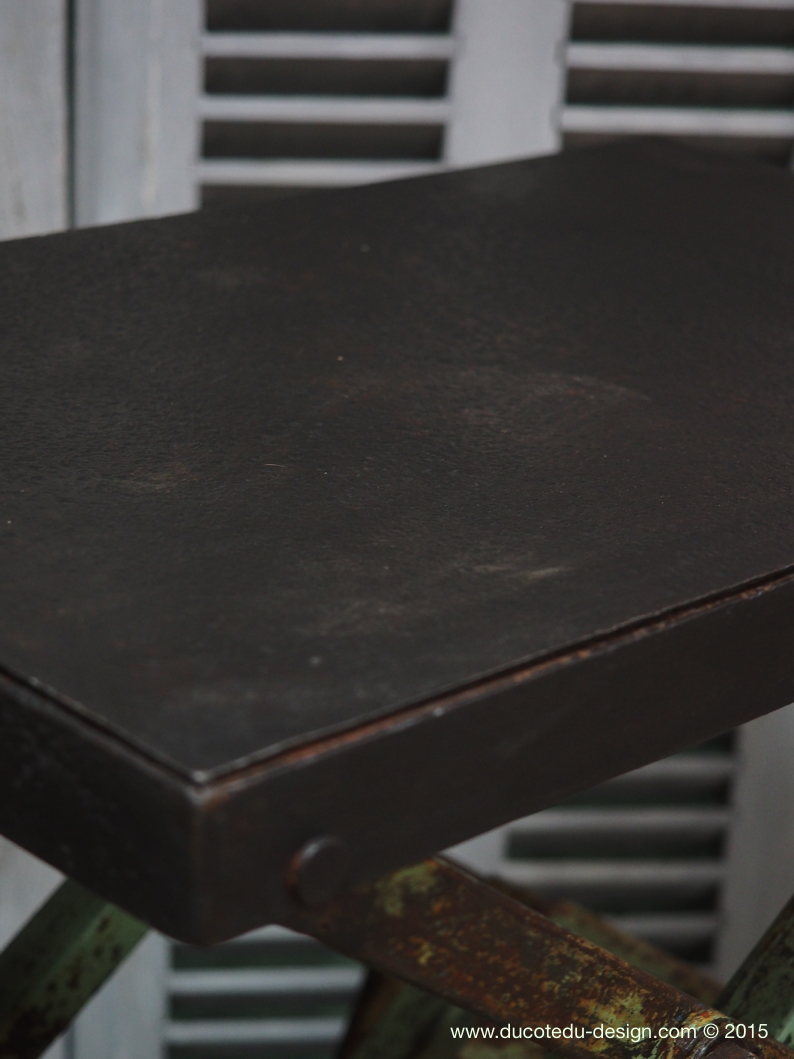 Ancienne table elevatrice d’atelier console ou table basse patine d’origine