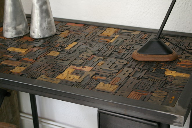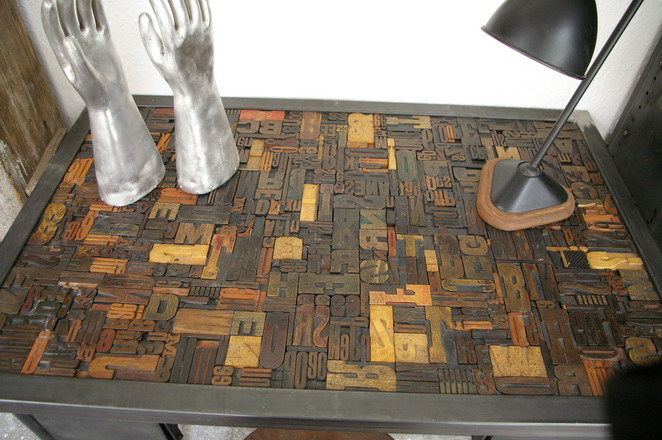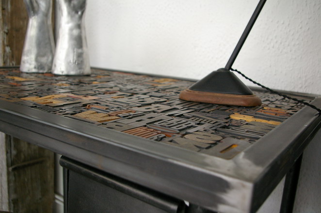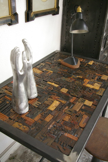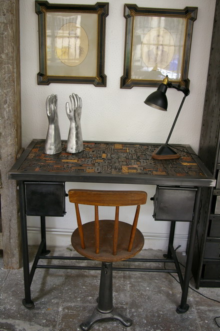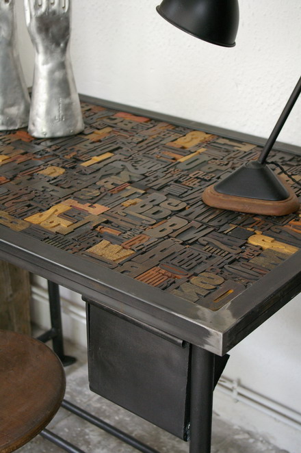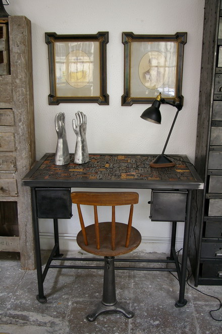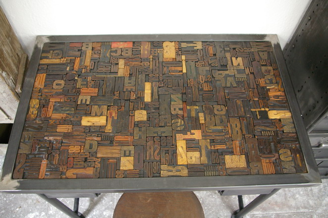 Bureau table industrielle plateau caracteres imprimerie