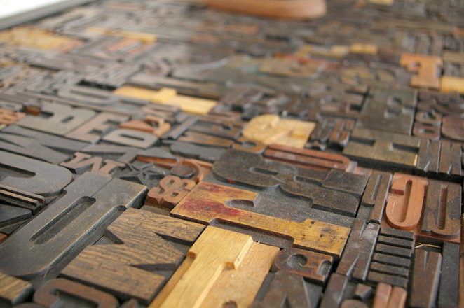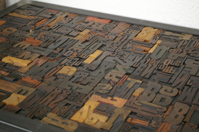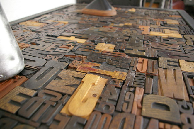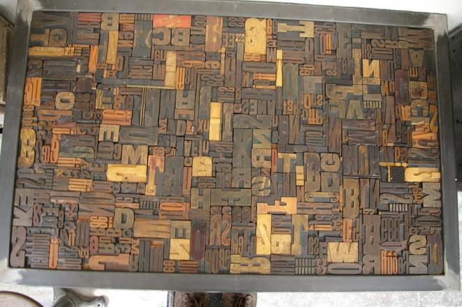 plateau d'anciens caracteres imprimerie
