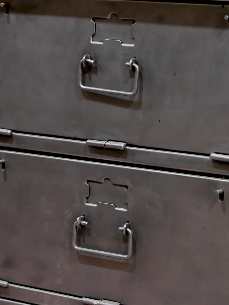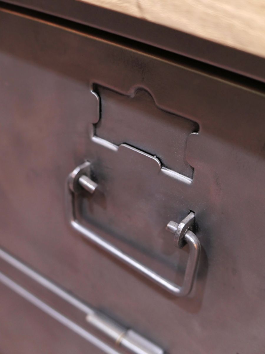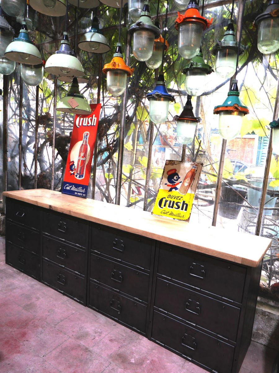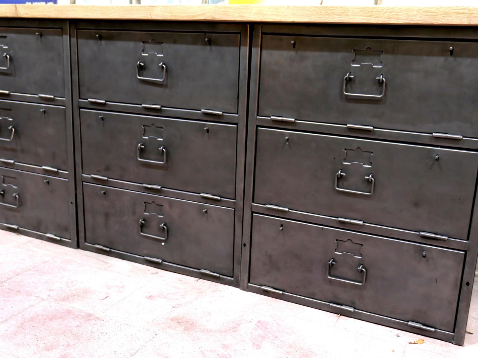 enfilade industrielle 12 compartiments atelier militaire plateau vieux chene massif