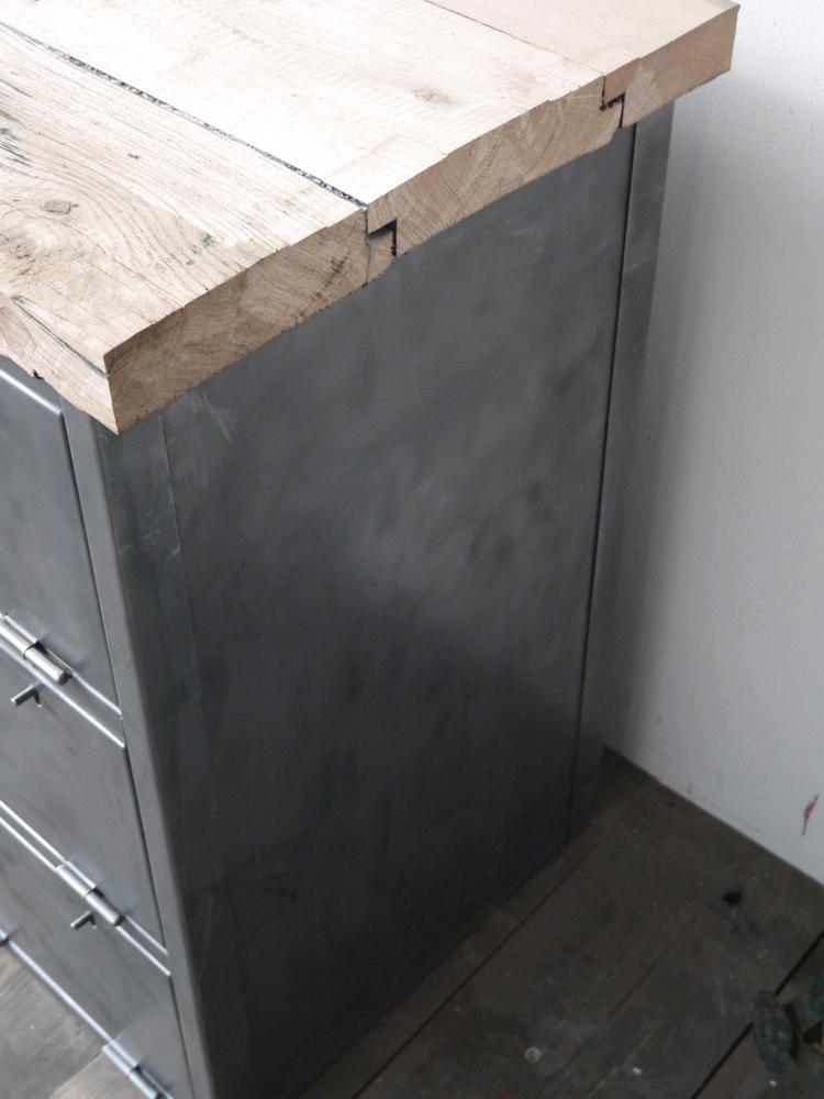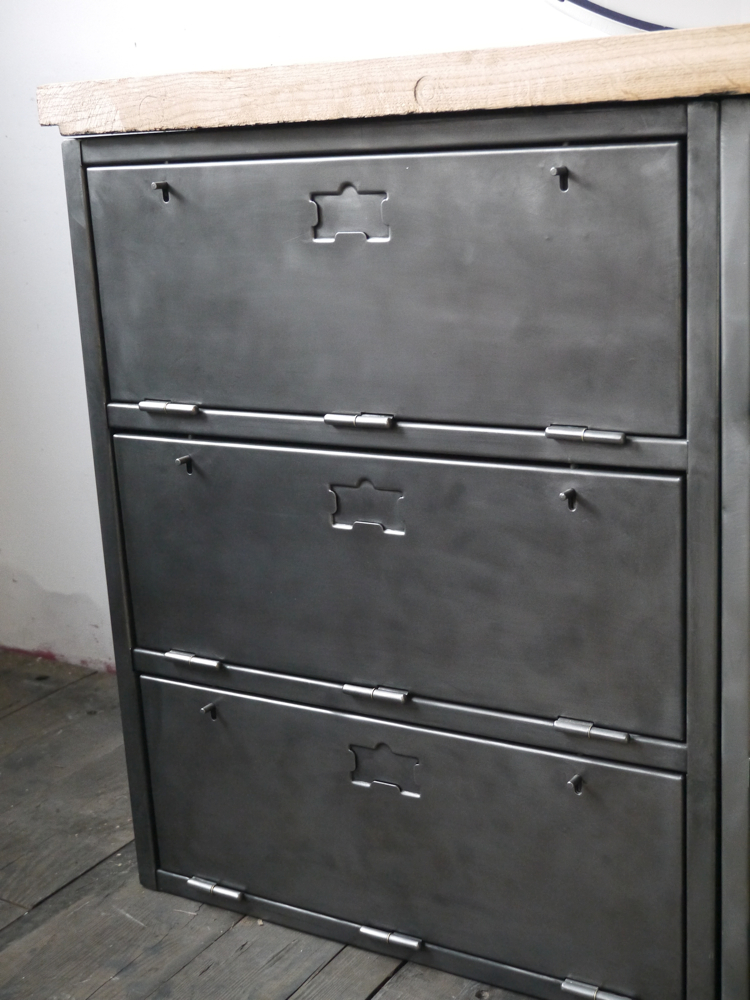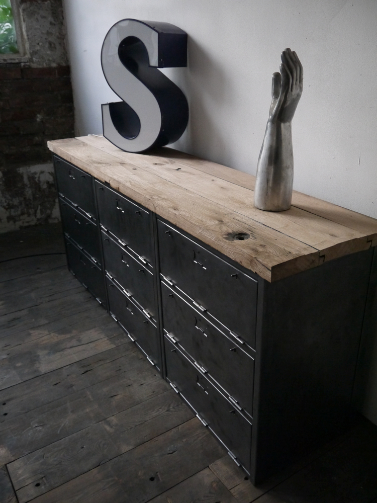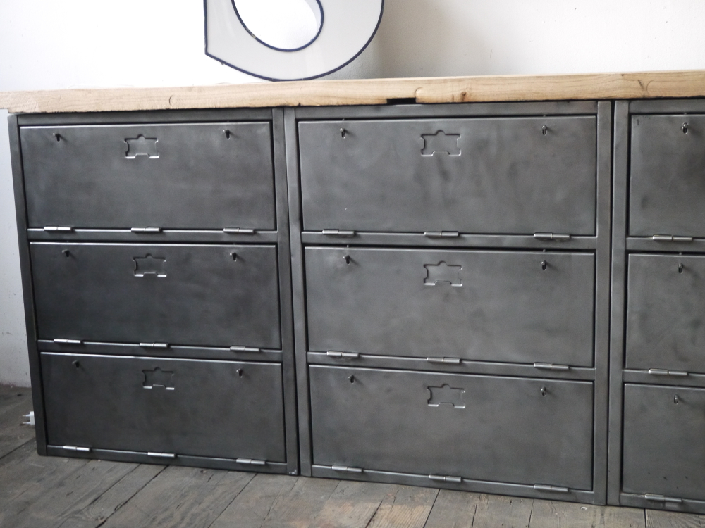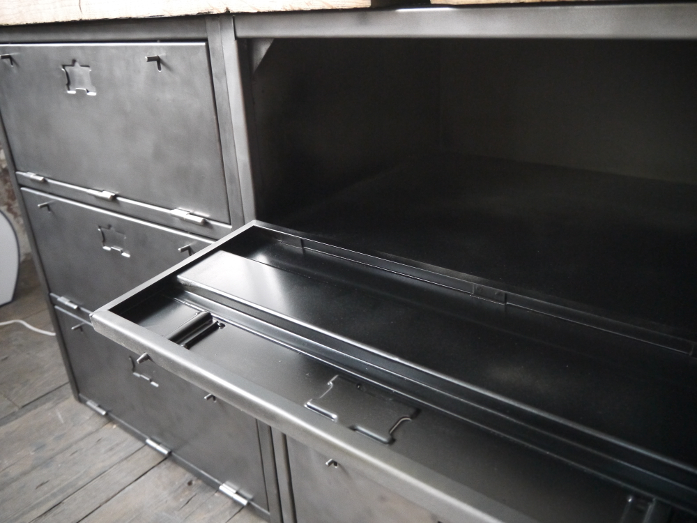 enfilade industrielle 9 compartiments atelier militaire plateau vieux chene massif
