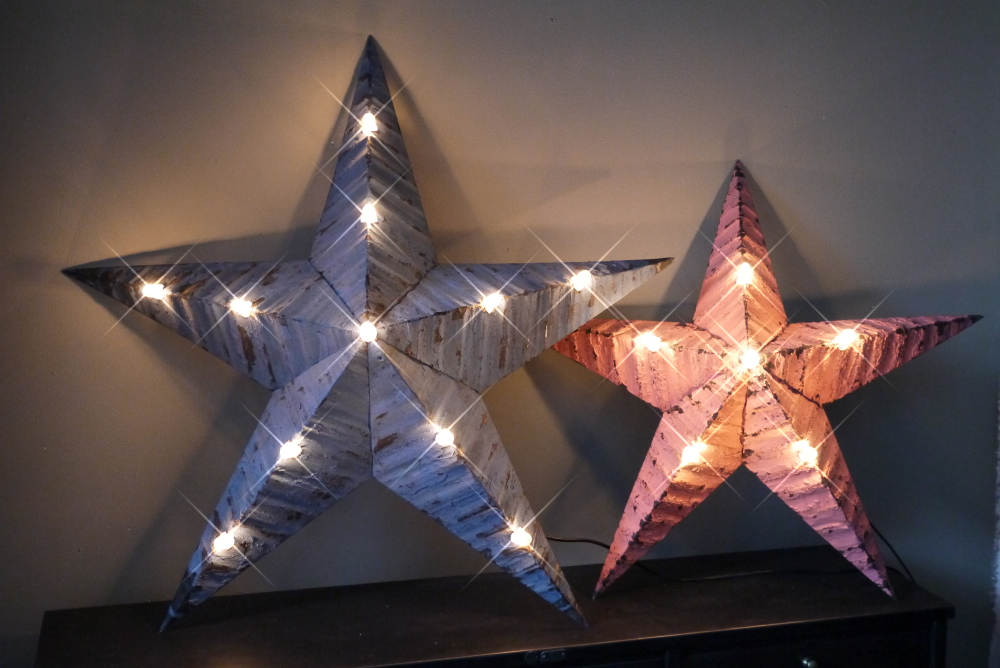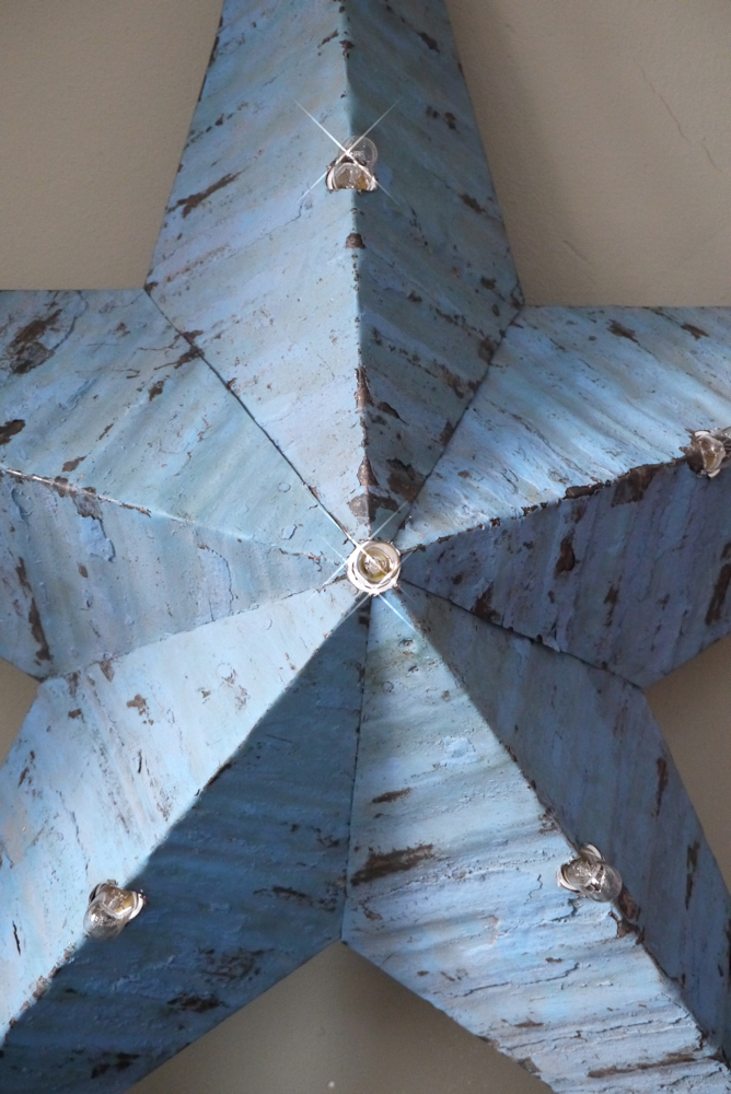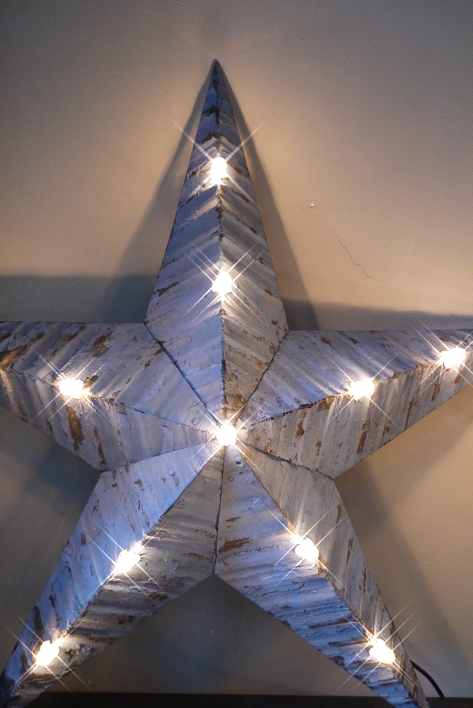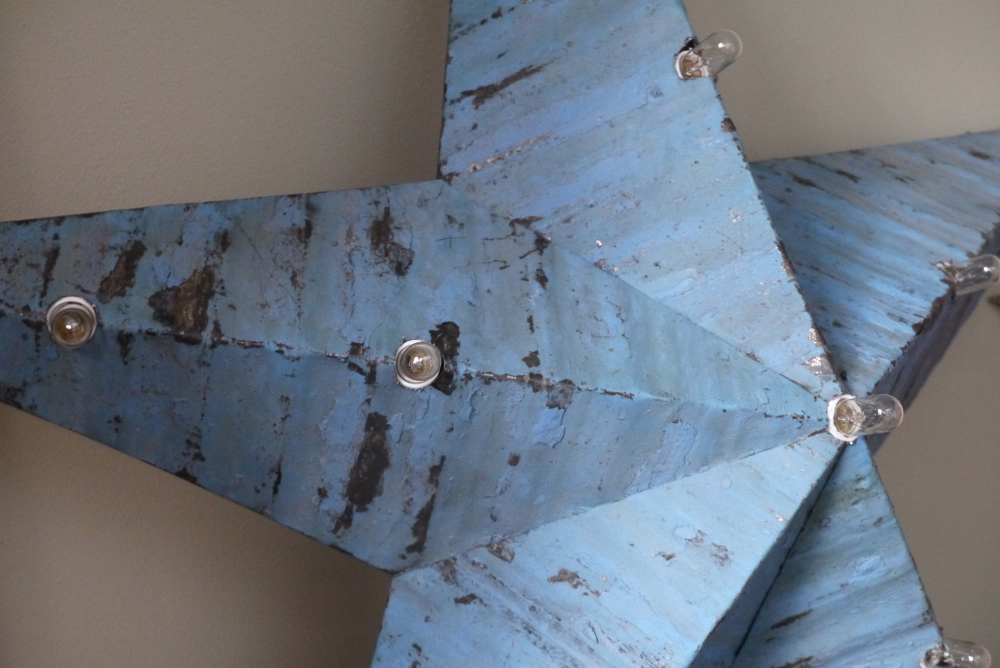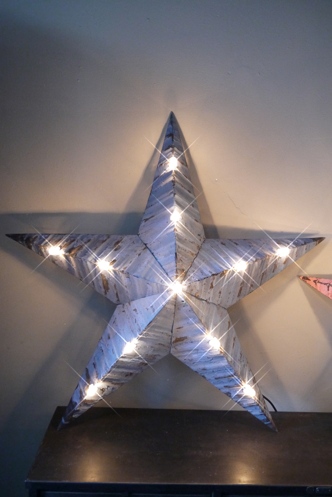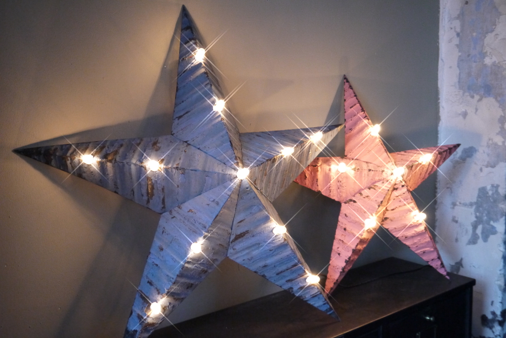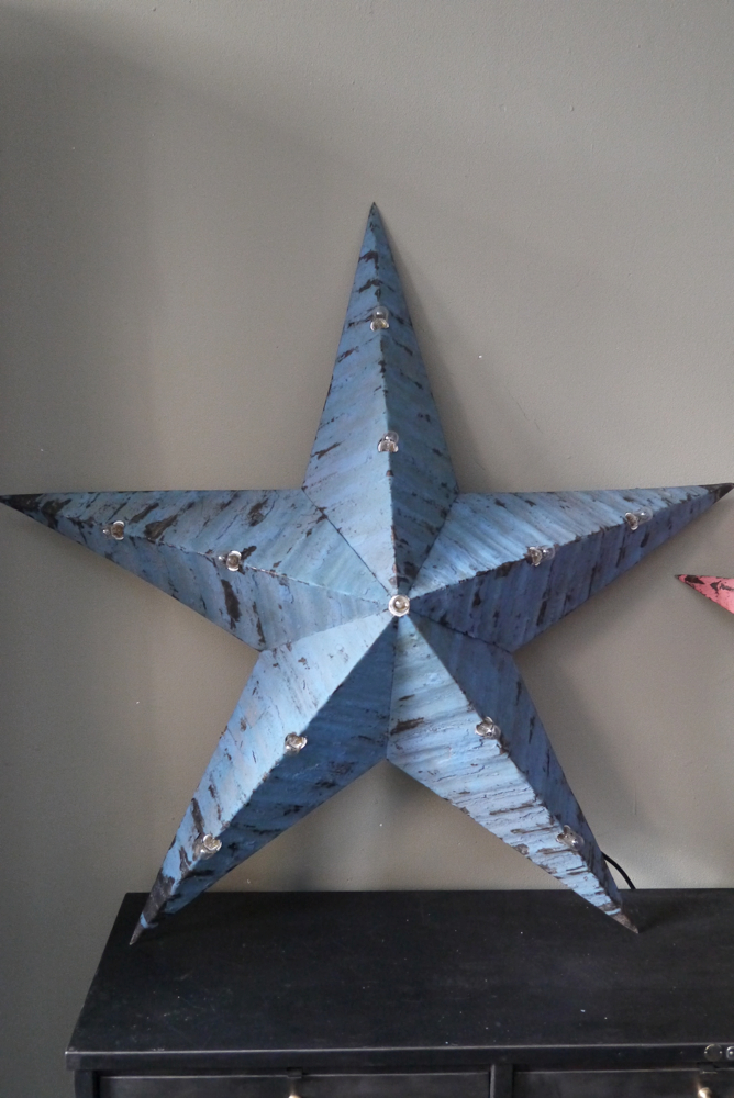 etoile de grange lumineuse Amish zinc bleu tres grand modele