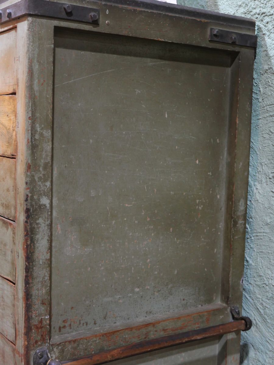 grand meuble de metier de boulangerie chariot dans son jus bois patine d'origine haut cm. largeur profondeur cm Forfait livraison à votre domicile par transporteur