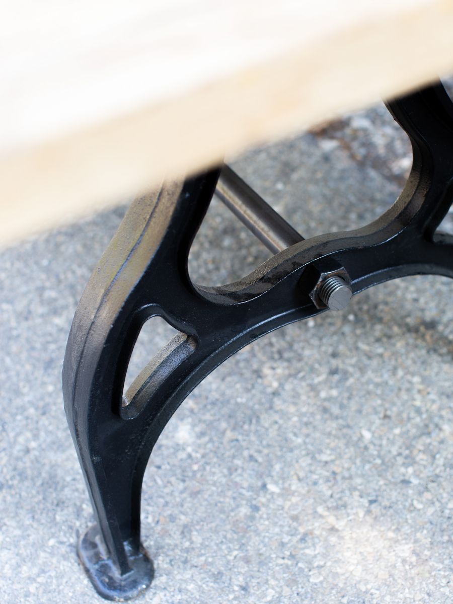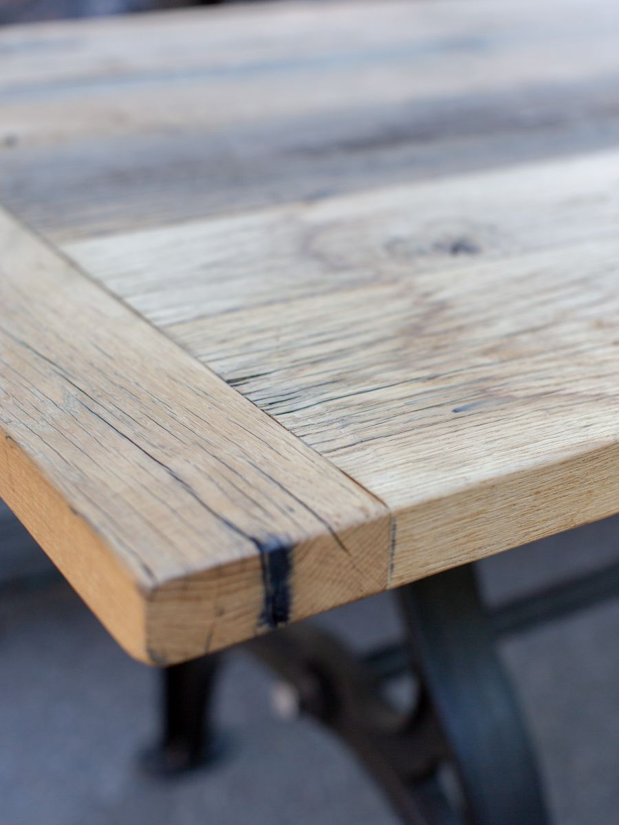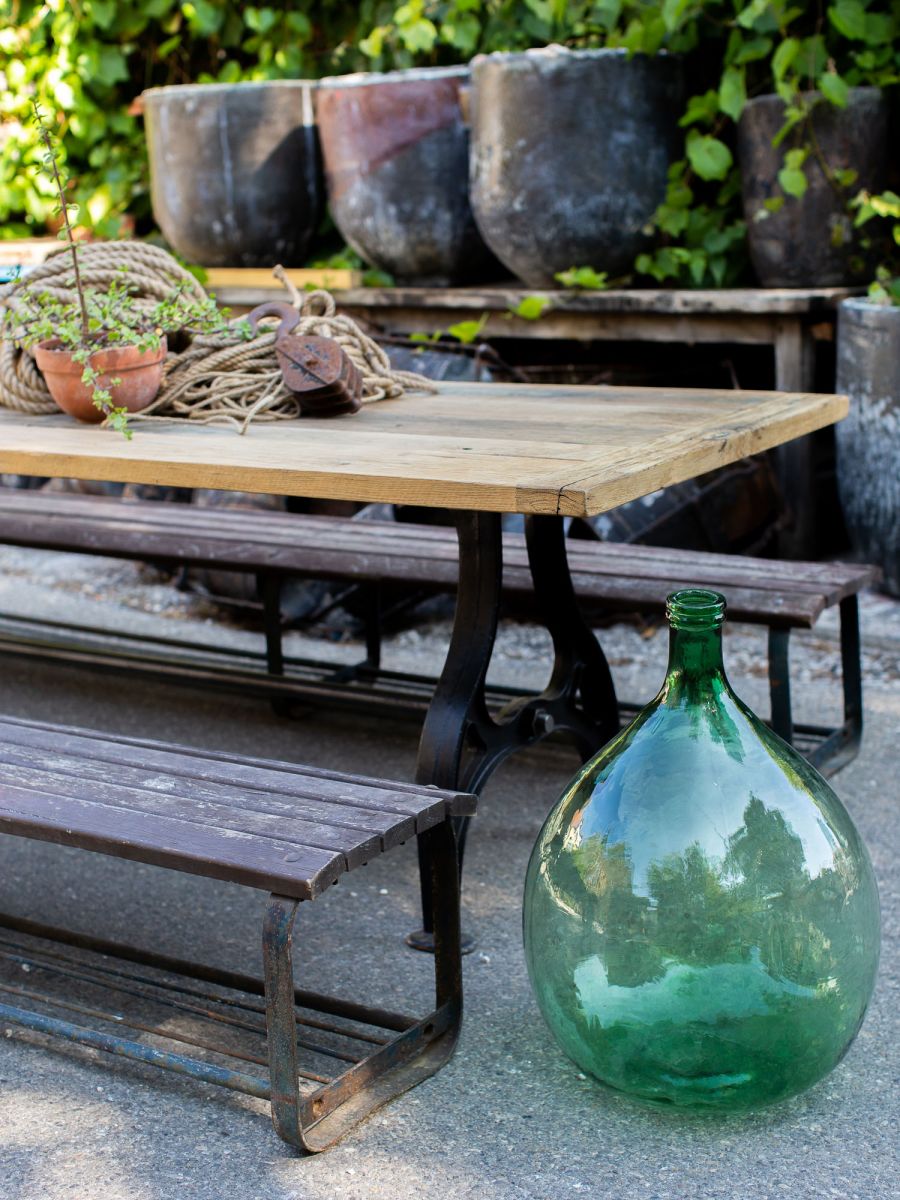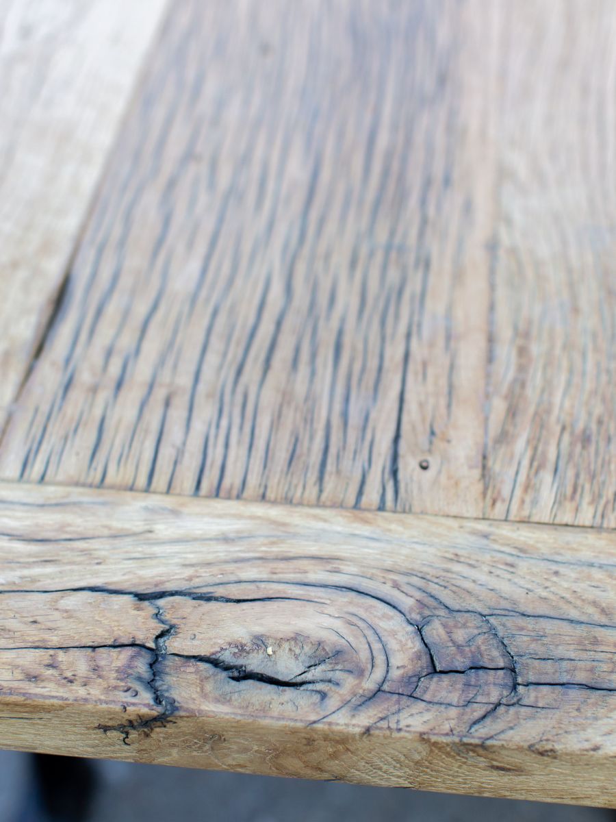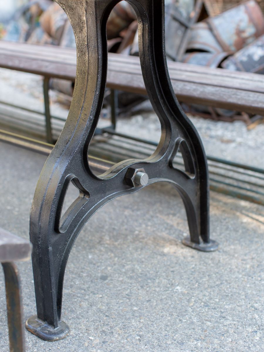 grande table industrielle 8 / 10 perssonnes pietement en fonte plateau en vieux chene massif 5cm d'epaisseur dim 270 / 85 cm haut 76 cm.