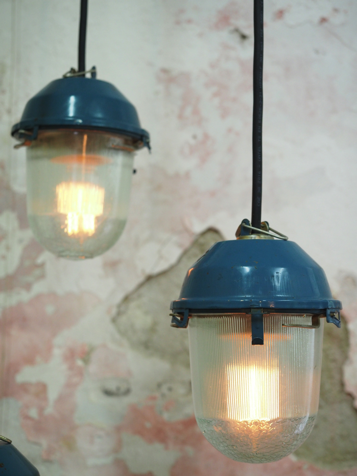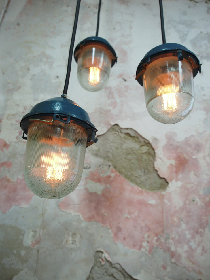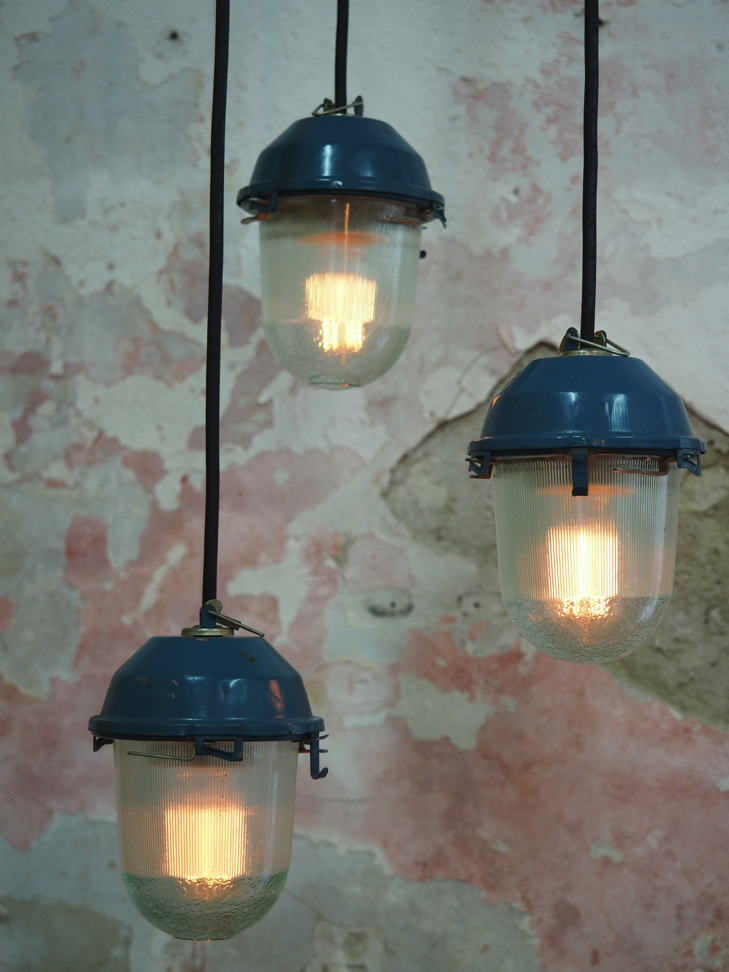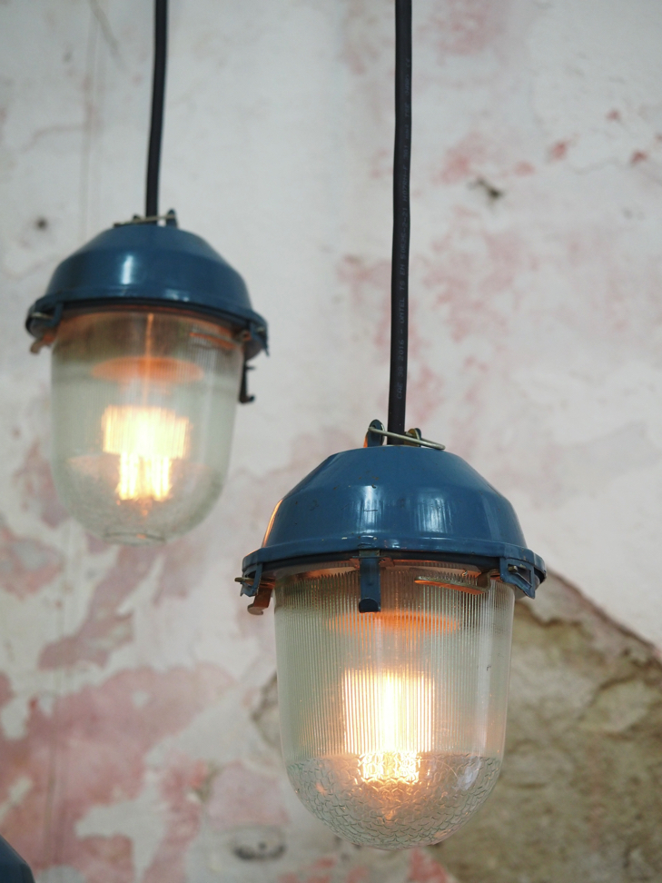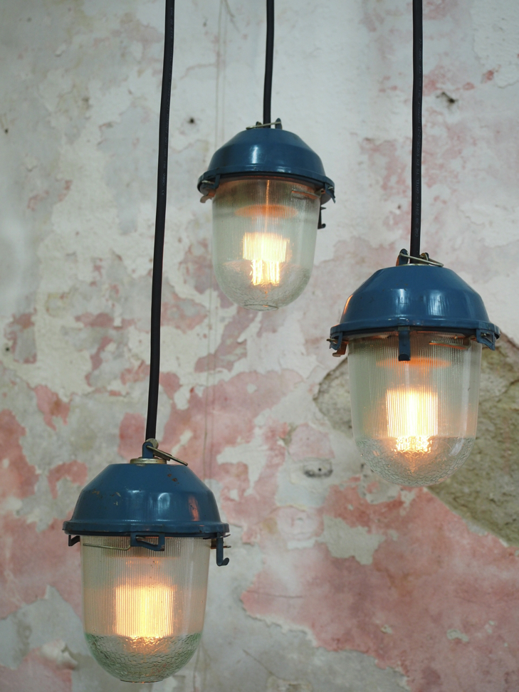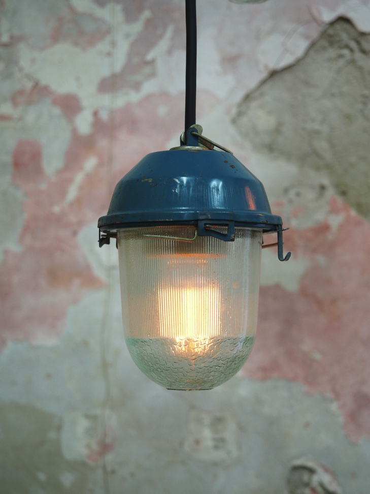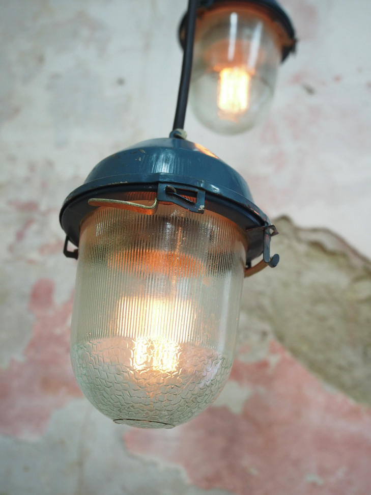 ancienne lampe baladeuse Union Sovietique suspension en verre et metal douille e27 cablée 3G1 souple