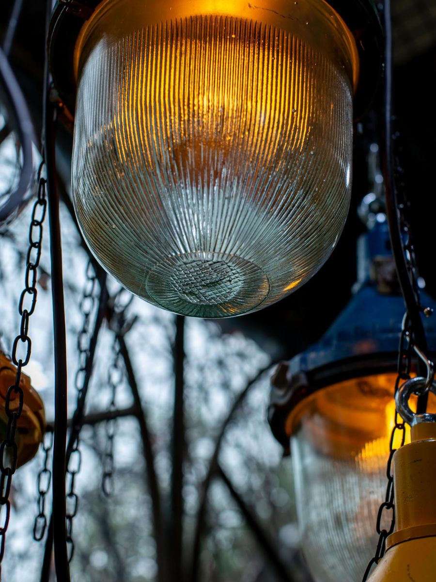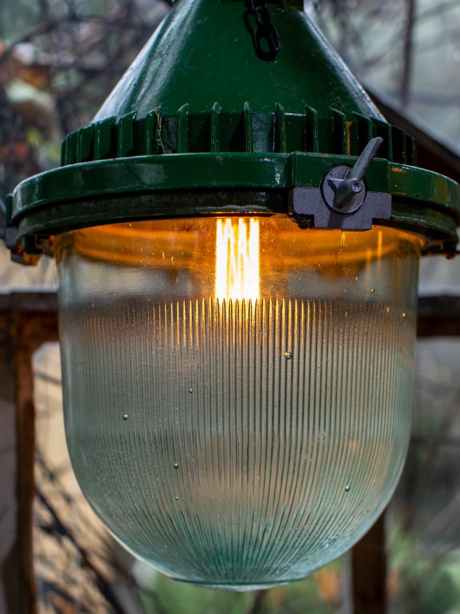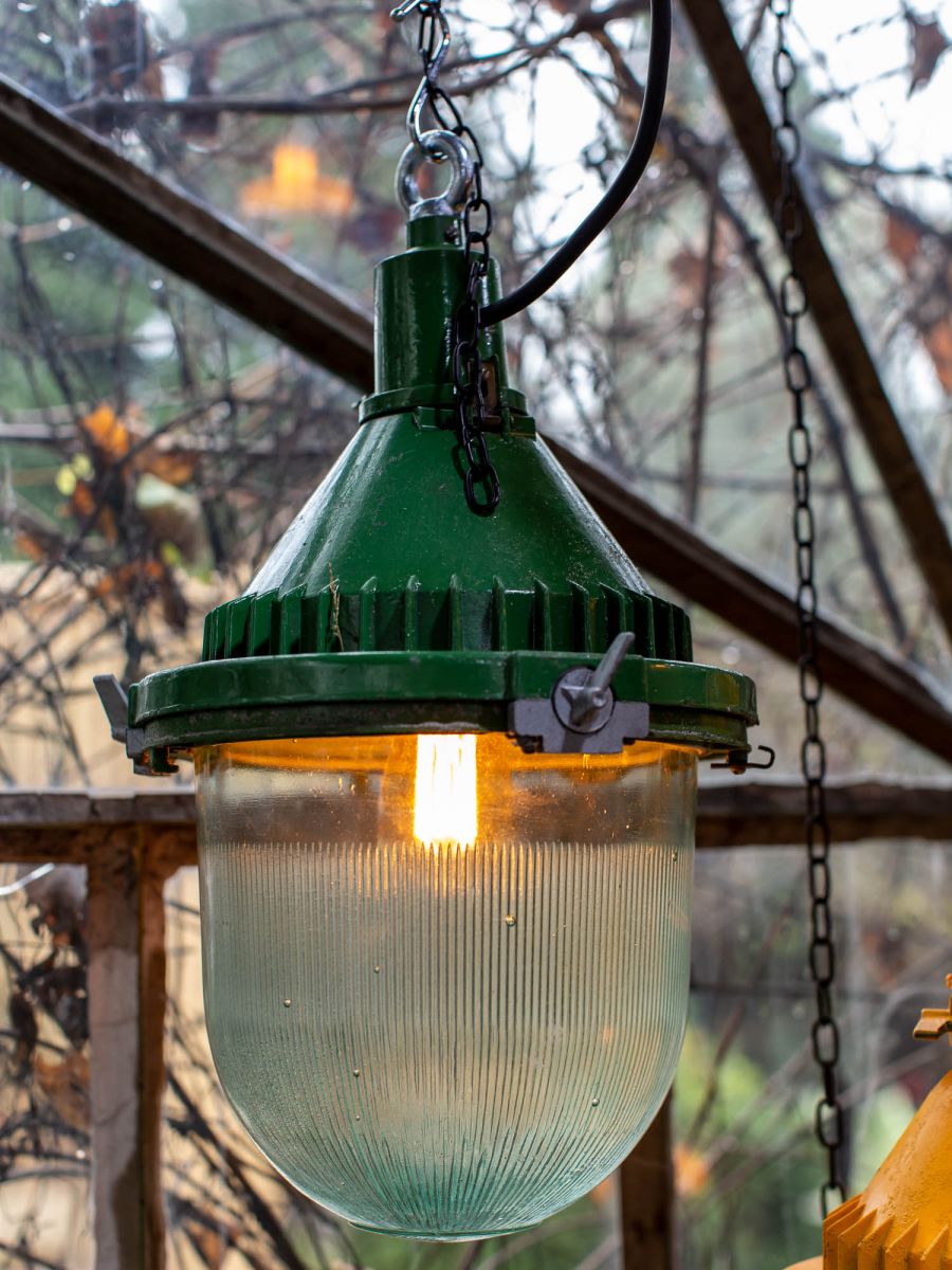 lampe industrielle  suspension verre hauteur 50, diametre 32 cm