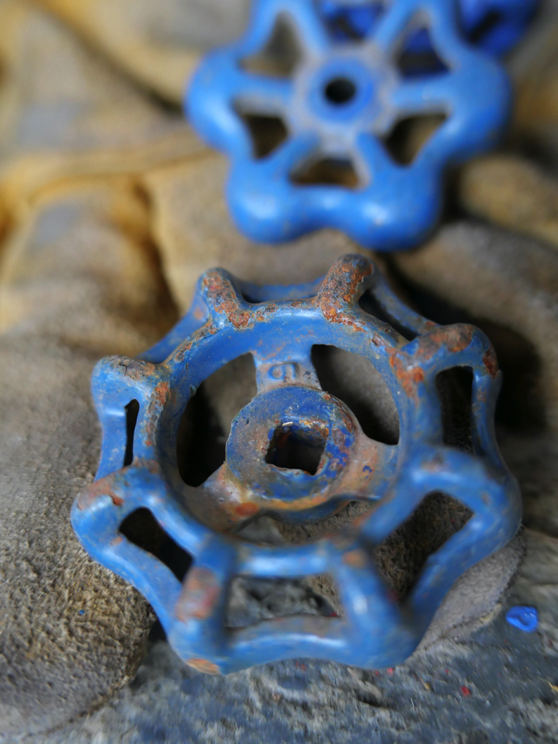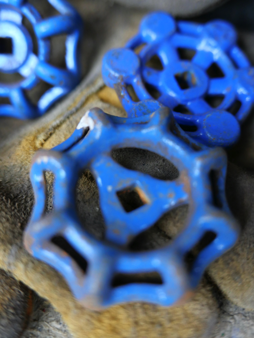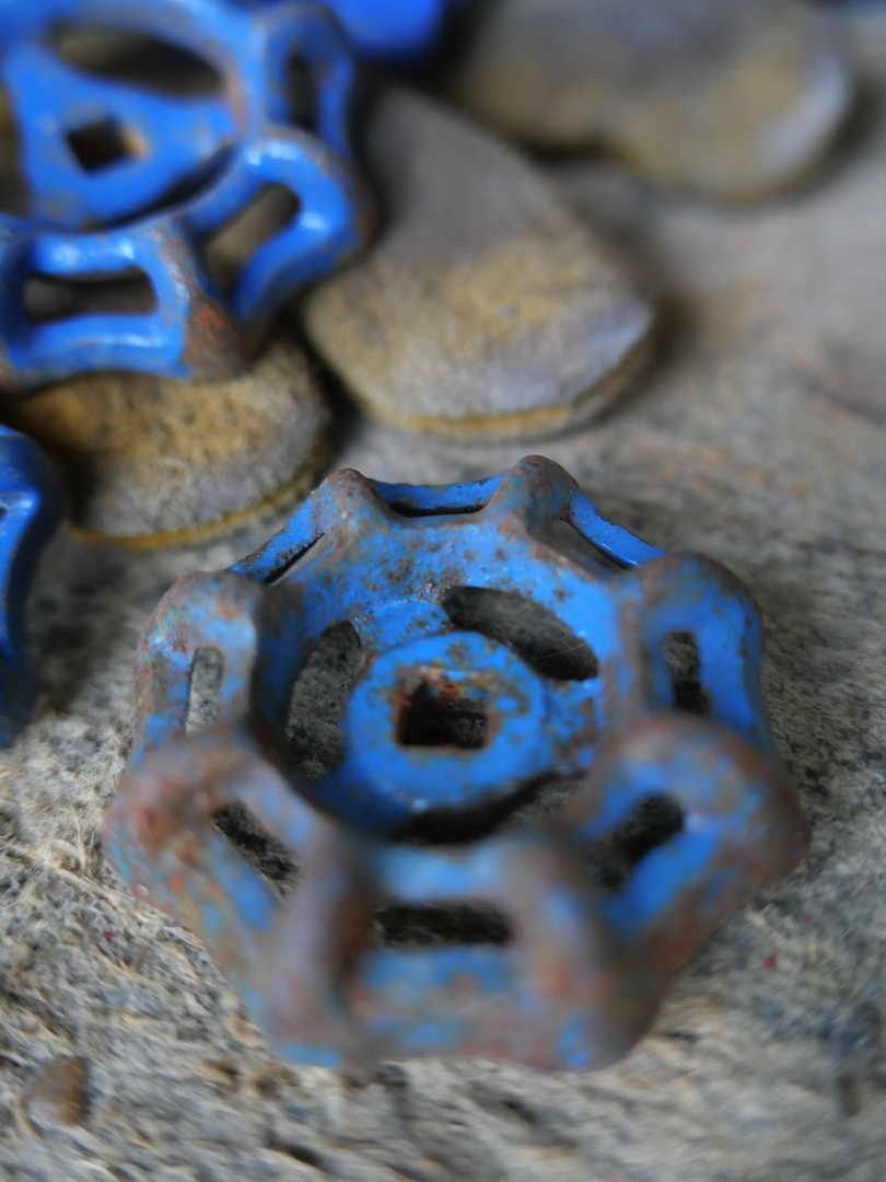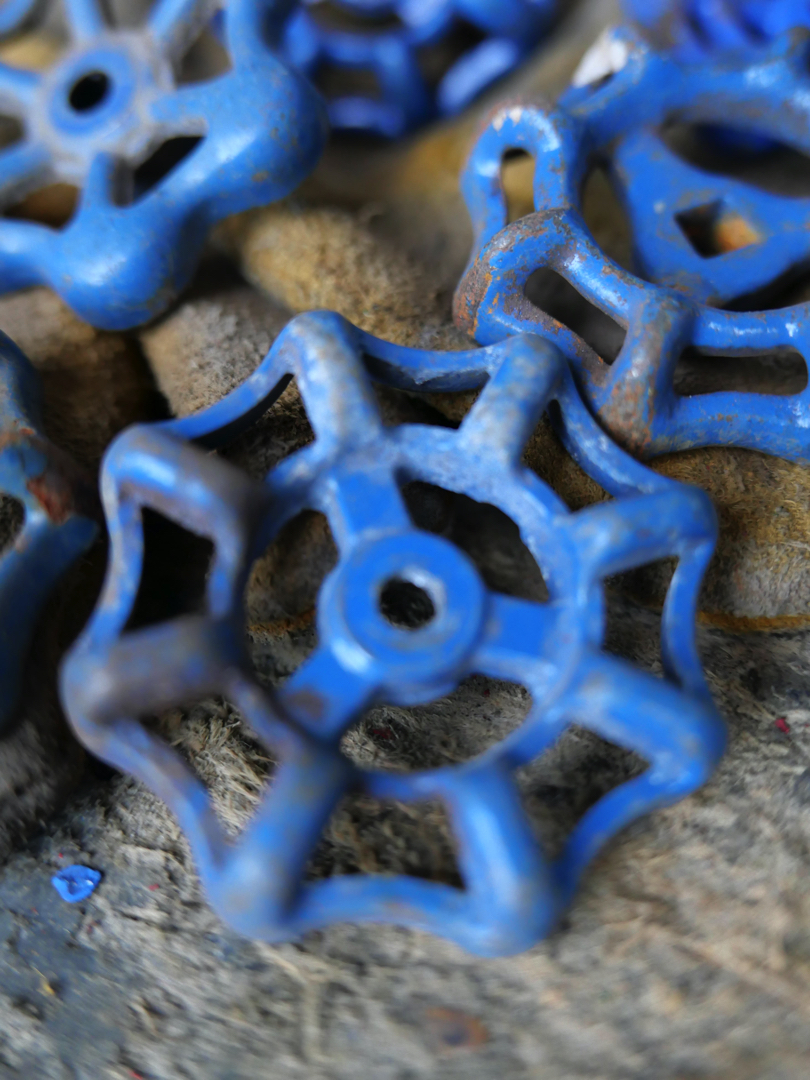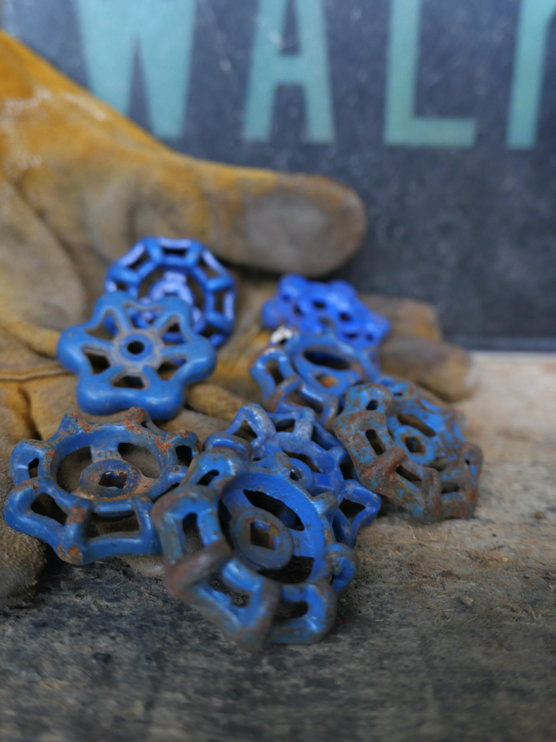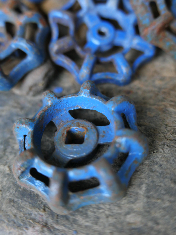 Lot de 8 anciennes vannes industrielles metal diam environ 5 cm
