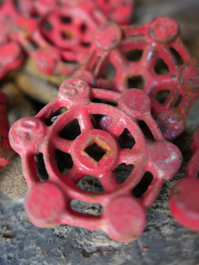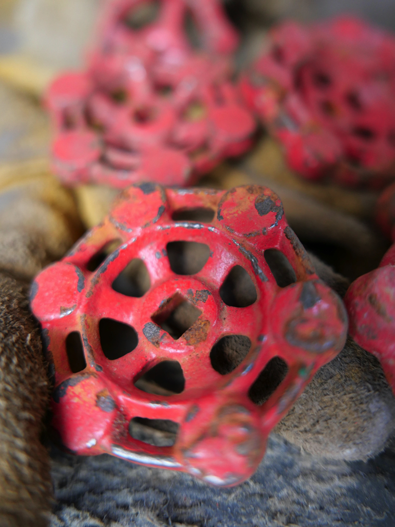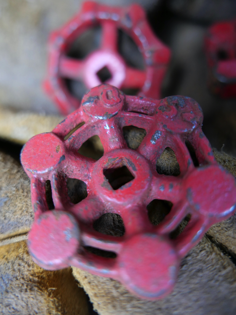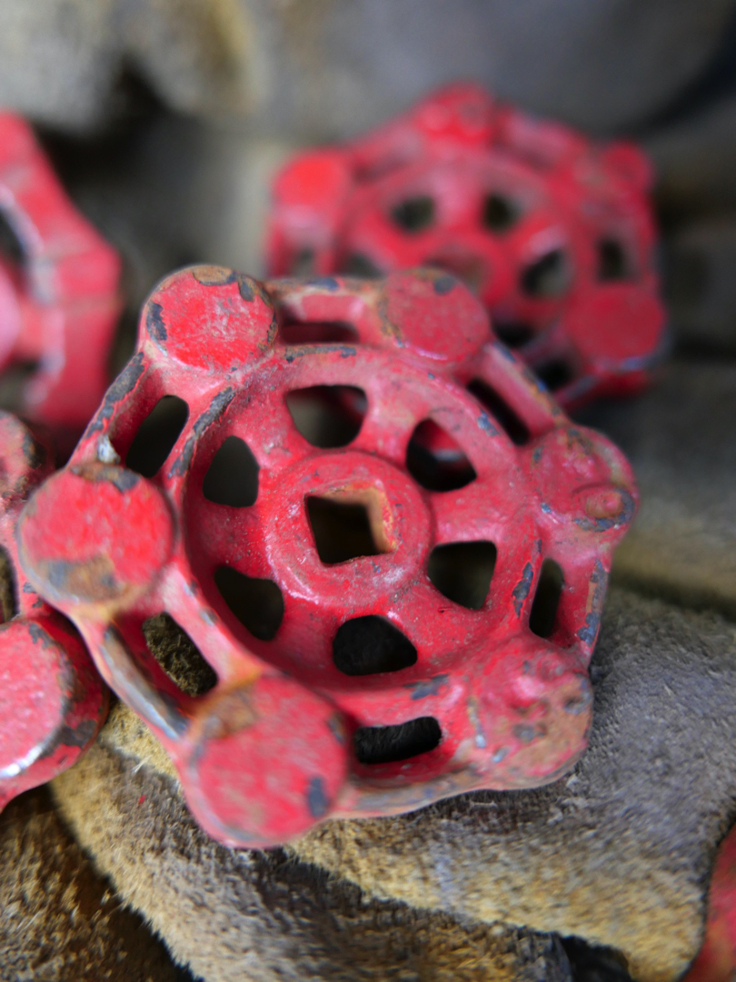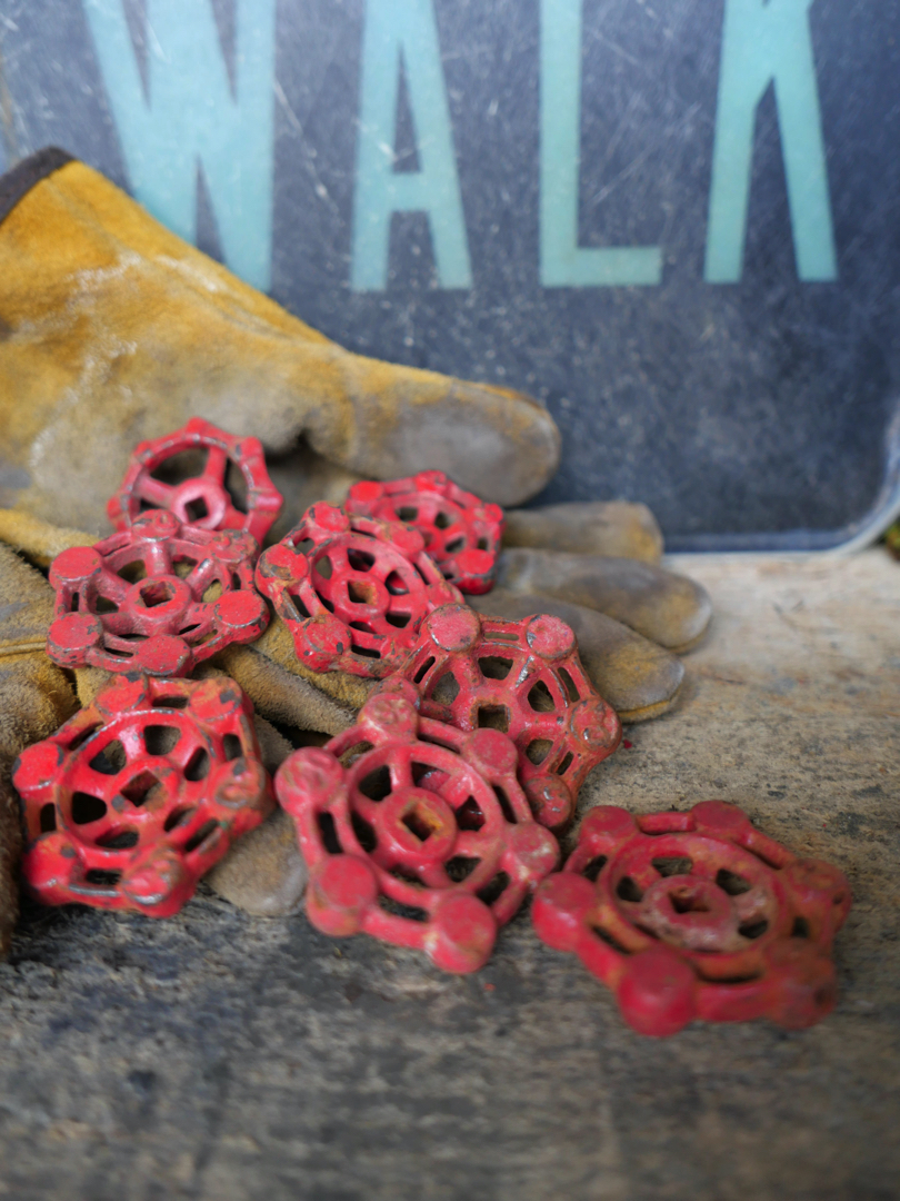 Lot de 8 anciennes vannes industrielles metal diam environ 5 cm