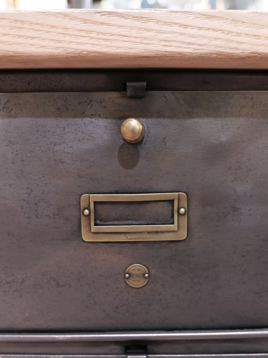 meuble console 12 casiers industriel clapet Roneo plateau chene massif