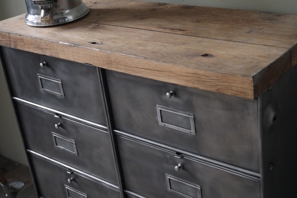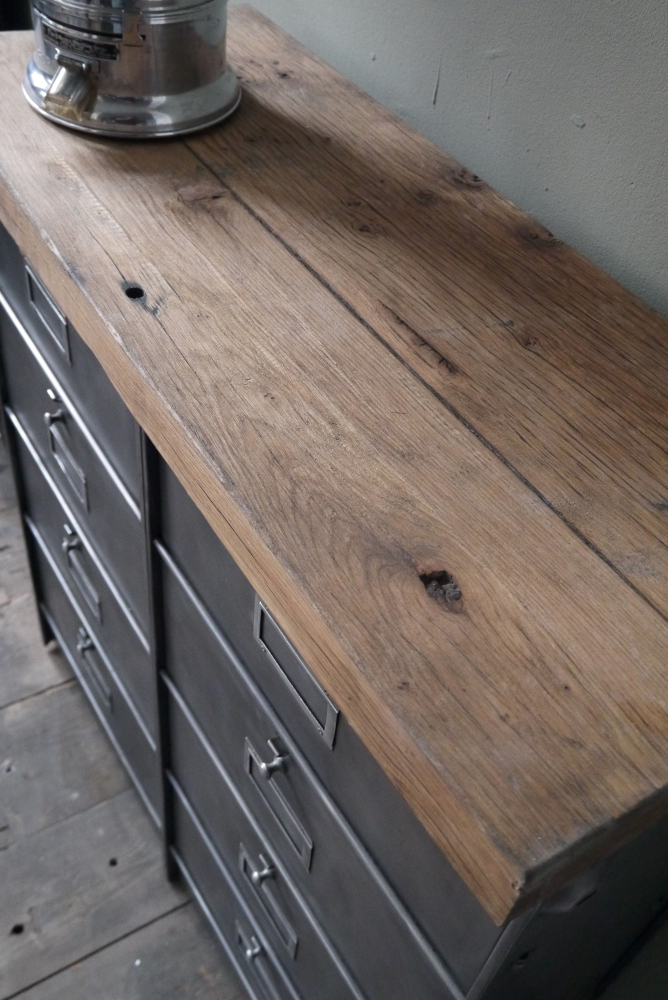 meuble console 8 casiers industriel clapet Roneo plateau chene massif